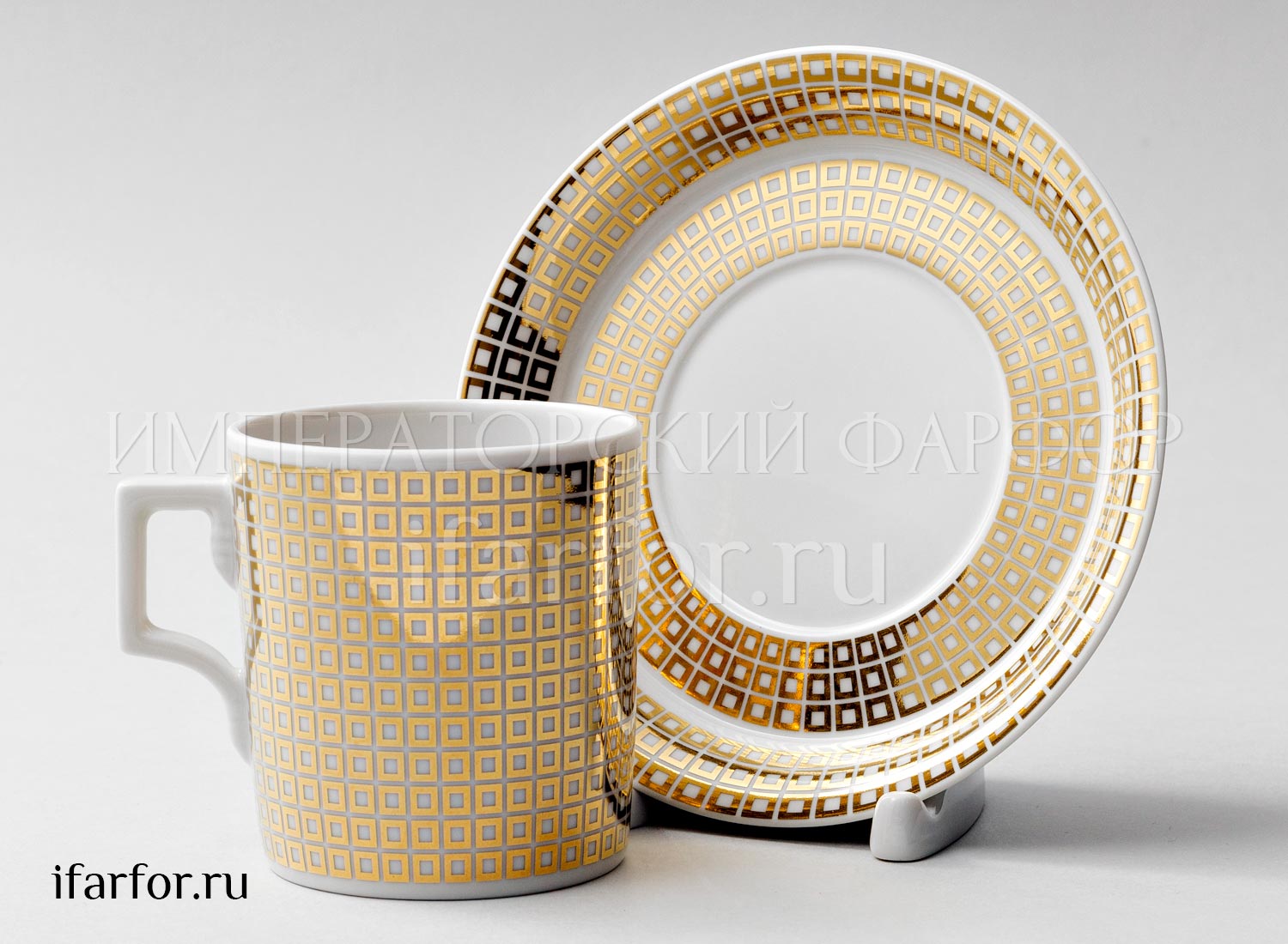 Cup and saucer tea «Through the looking glass. Squares (gold)»