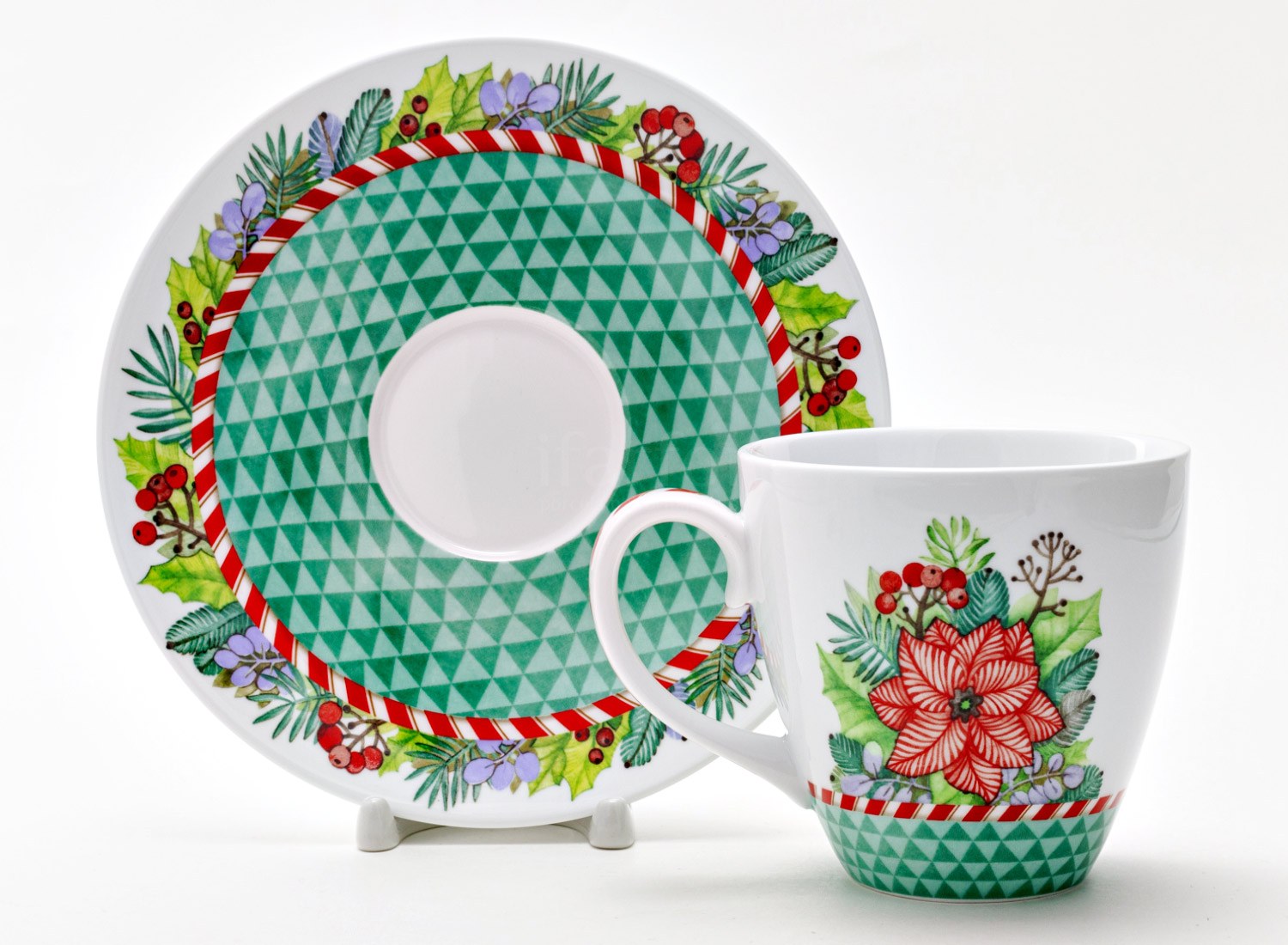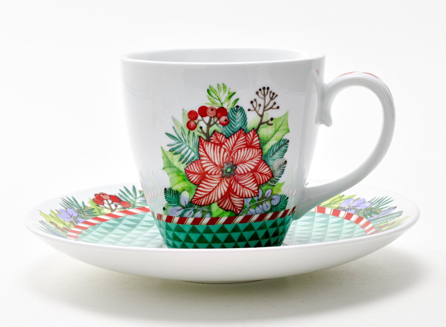 Mug and saucer «Winter Story (green)»