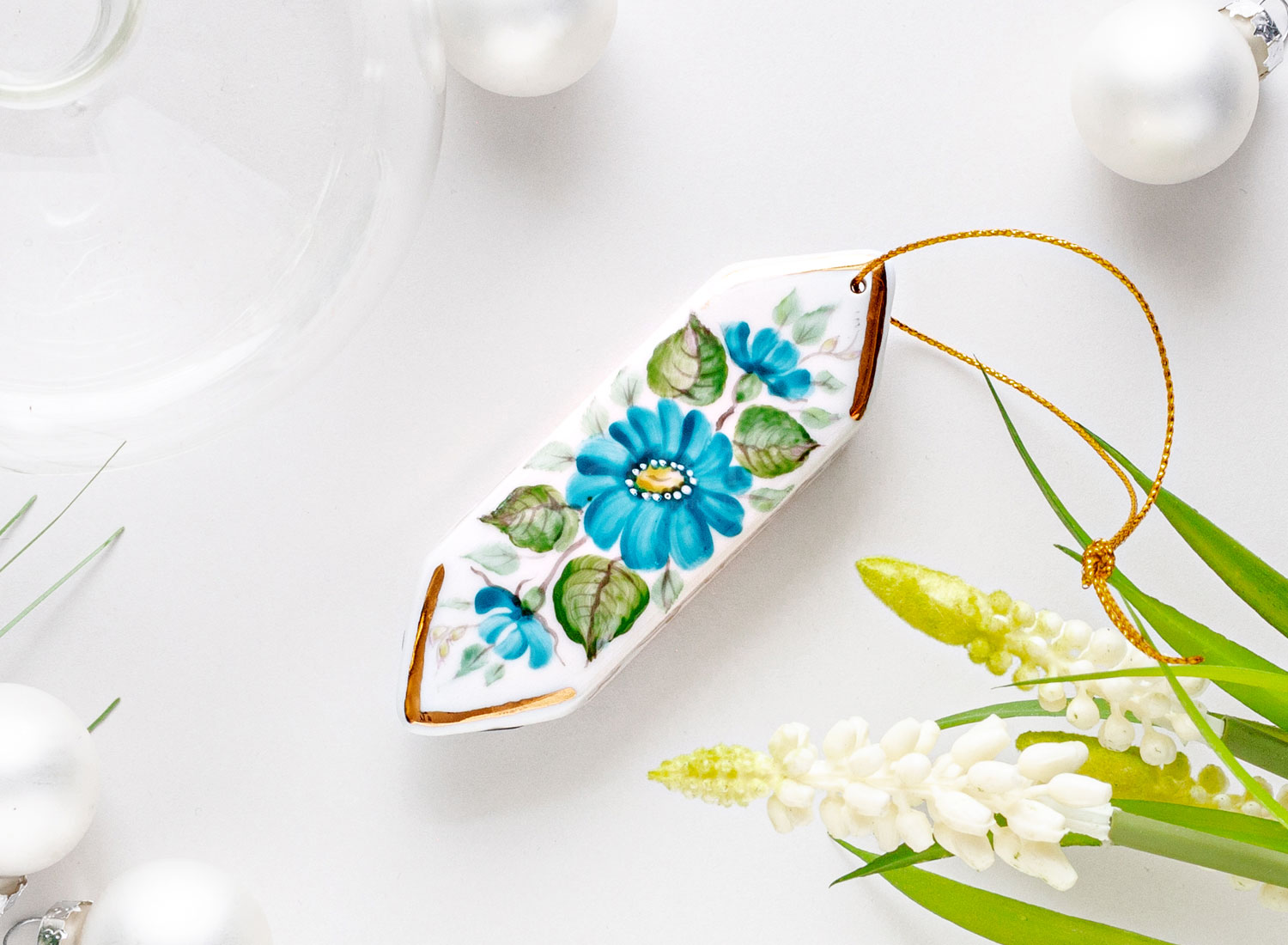 Christmas tree toy «Gzhel colors gold»