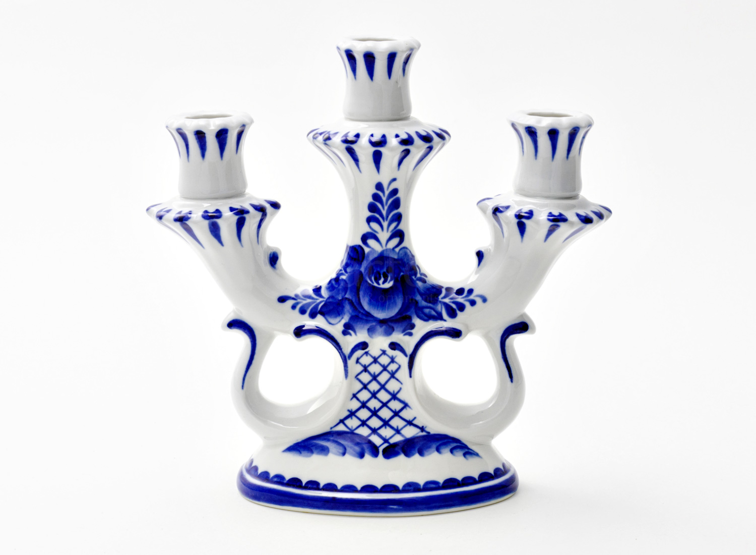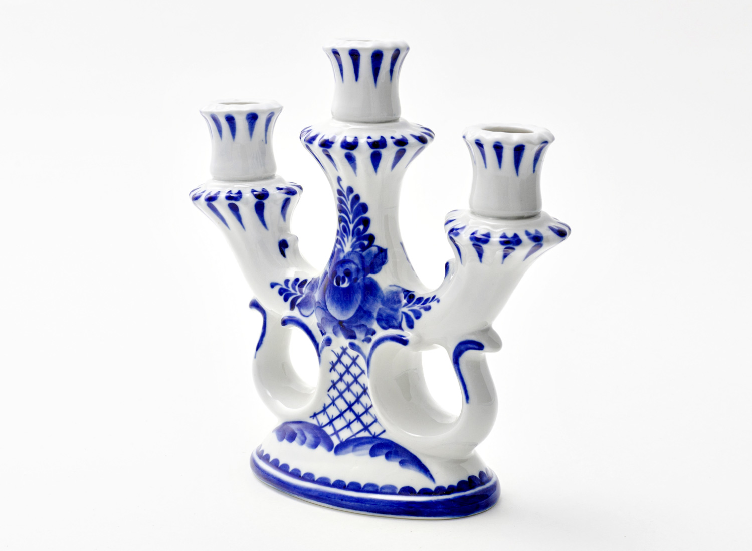 Candlestick 3-branched «Gzhel»