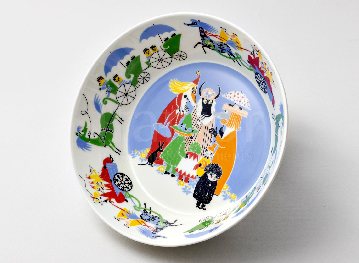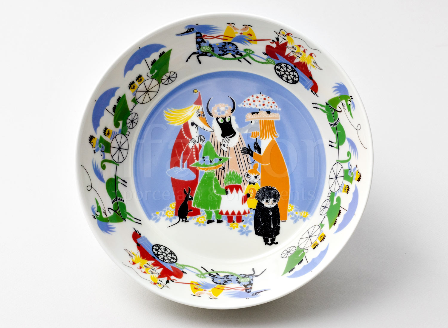 Arabia’s Moomins are turned from stories to ceramic illustrations by designer Tove Slotte. She has been drawing Moomins onto Arabia items since the beginning of the 1990s. The designer draws inspiration from Tove Jansson’s original illustrations, which she adapts to ceramic shapes. All sorts of exciting things happen around Moominvalley all the time. In addition to the Moomins, the valley is inhabited by mymbles, hemulens, fillyjonks and all kinds of small toffles and whompers. The outside world consist of dangers, adventures, even catastrophes as well as enjoyable friendly outings and juice parties. The doors of Moominhouse are always open to Moomins returning home or to wandering vagabonds and other guests. Welcome to the colourful world of the Moomins!