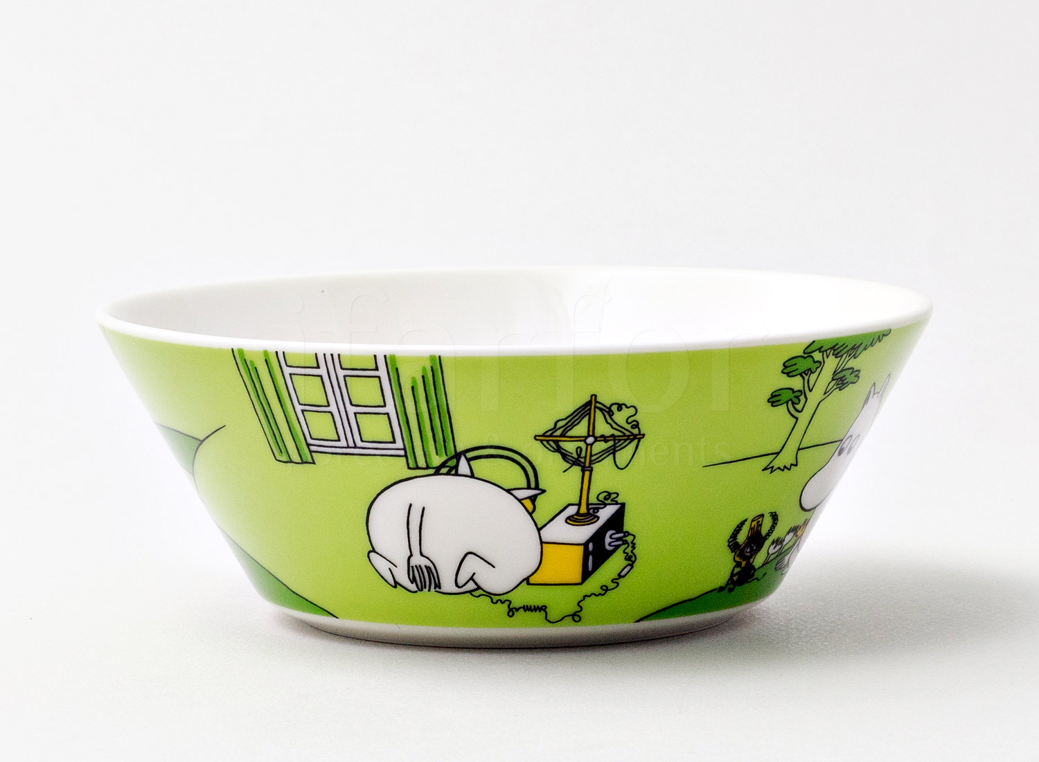 Arabia’s Moomins are turned from stories to ceramic illustrations by designer Tove Slotte. She has been drawing Moomins onto Arabia items since the beginning of the 1990s. The designer draws inspiration from Tove Jansson’s original illustrations, which she adapts to ceramic shapes. All sorts of exciting things happen around Moominvalley all the time. In addition to the Moomins, the valley is inhabited by mymbles, hemulens, fillyjonks and all kinds of small toffles and whompers. The outside world consist of dangers, adventures, even catastrophes as well as enjoyable friendly outings and juice parties. The doors of Moominhouse are always open to Moomins returning home or to wandering vagabonds and other guests. Welcome to the colourful world of the Moomins!