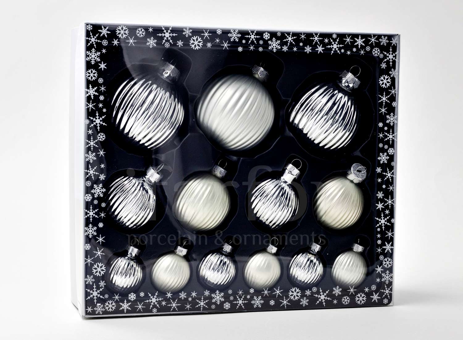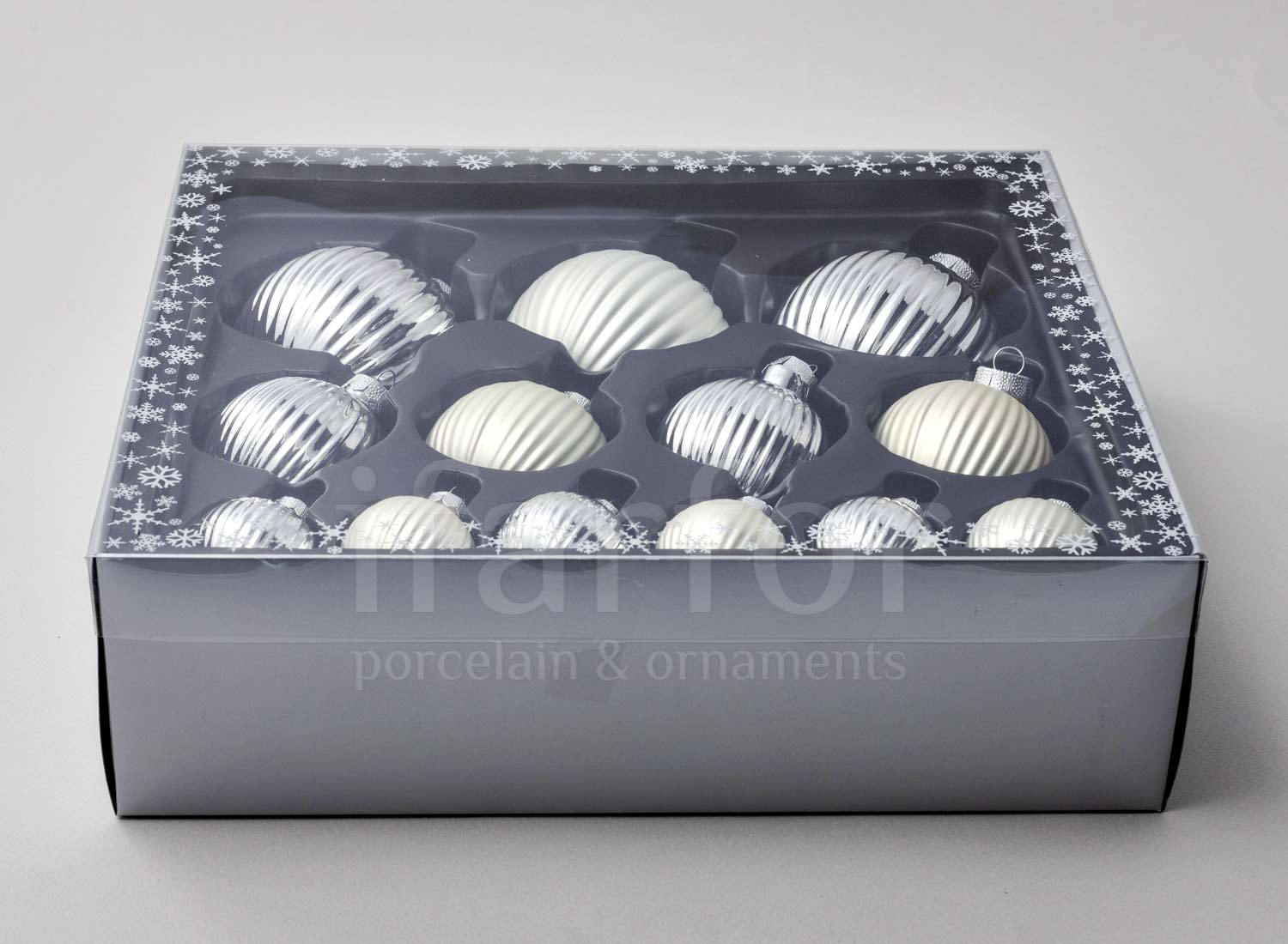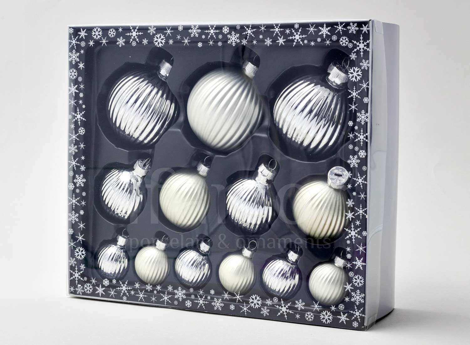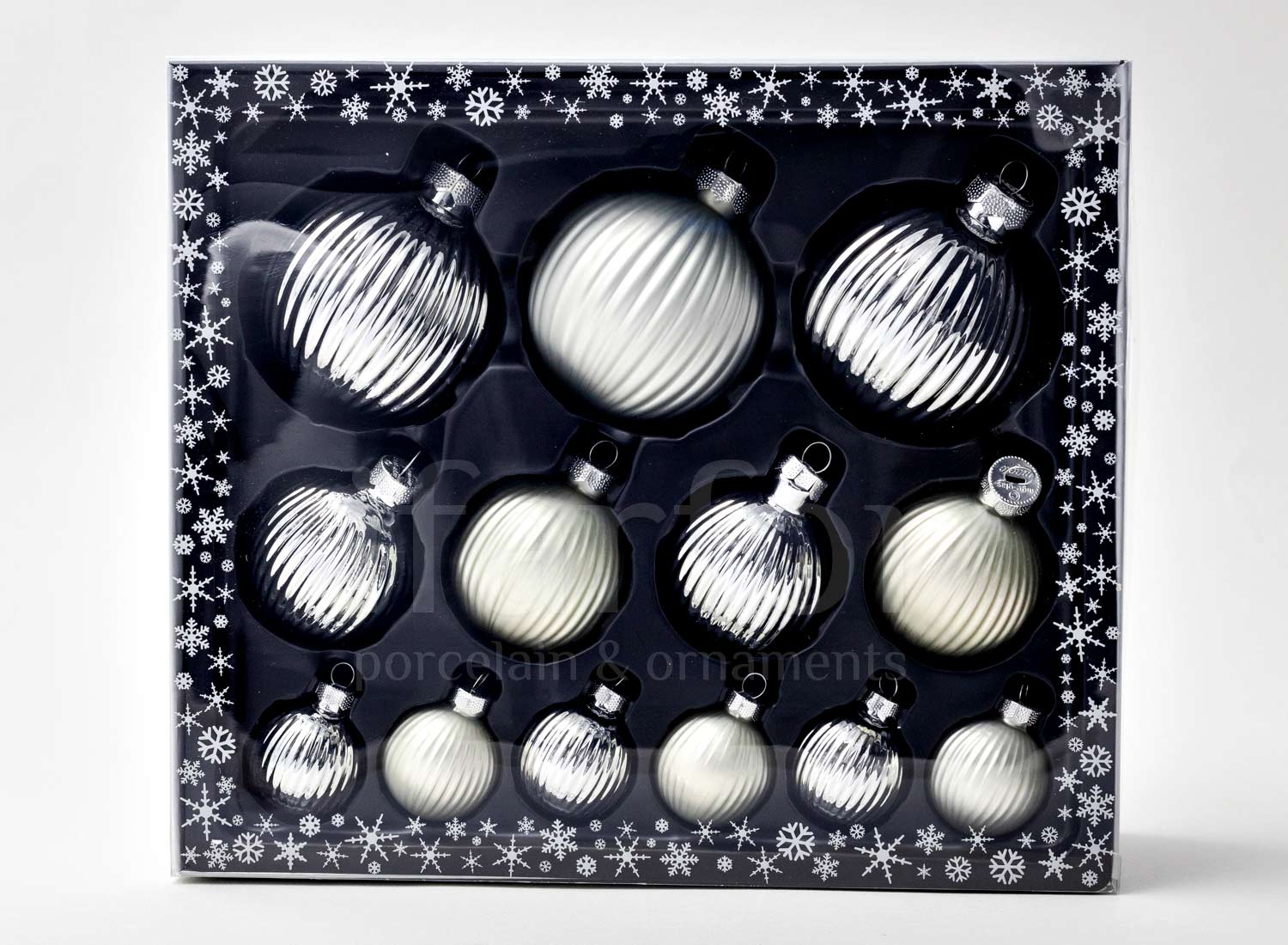 Set of Christmas tree toys in a gift box «Frosty silver»