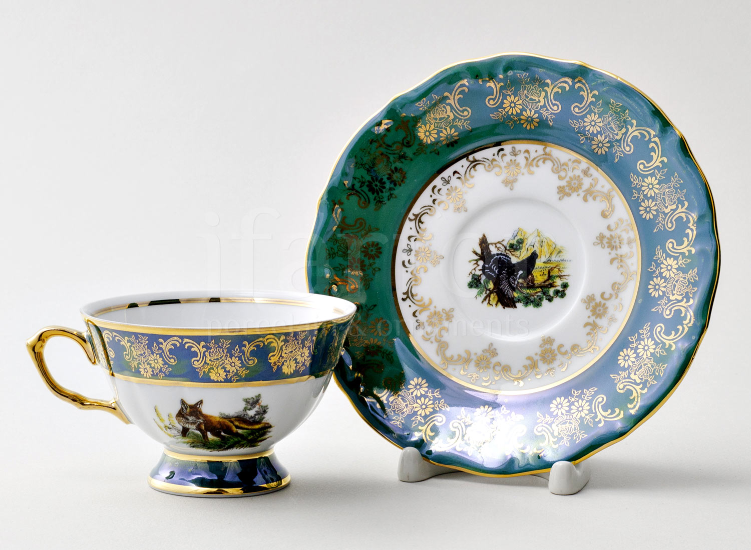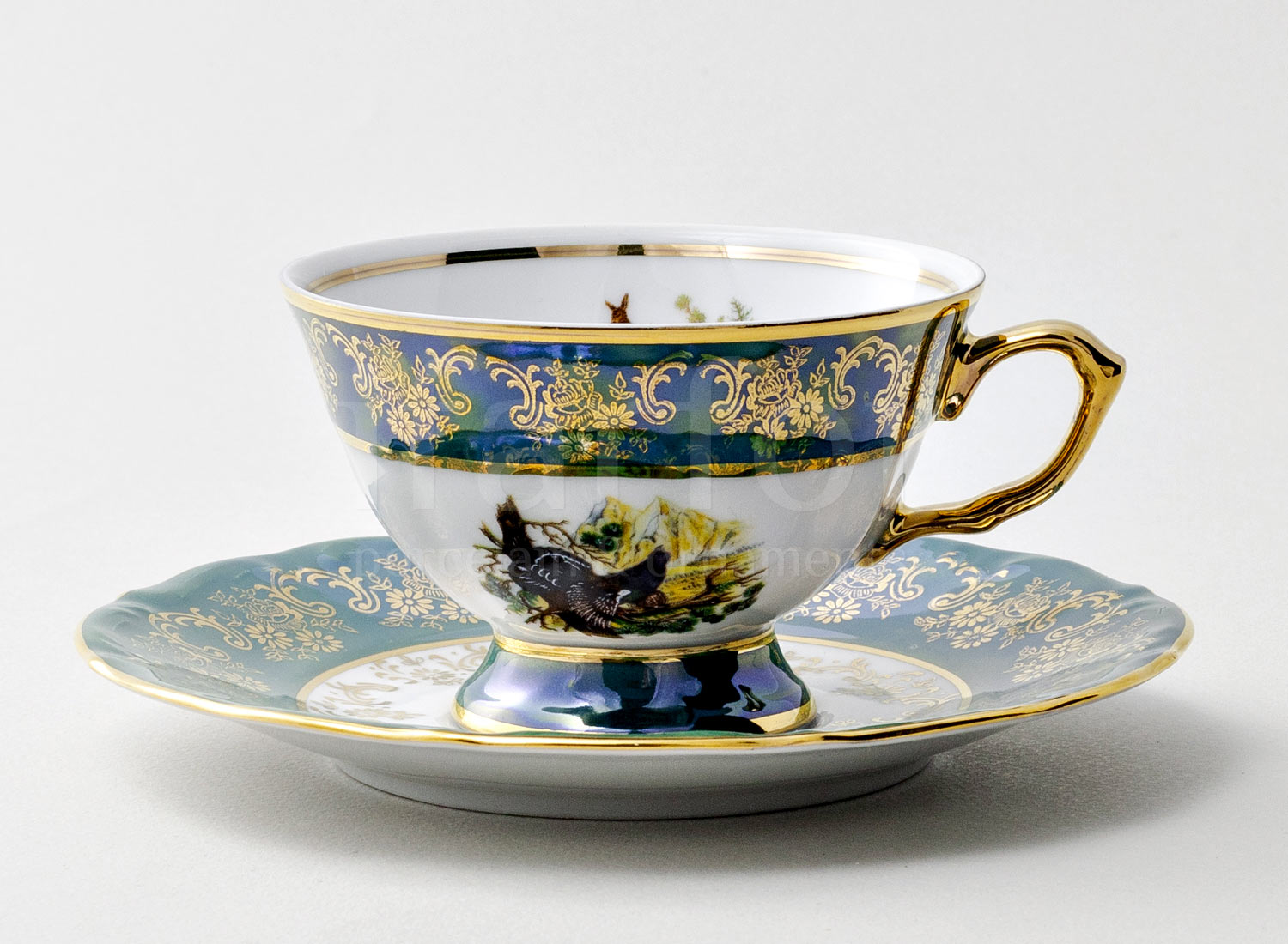 Чашка с блюдцем чайная второй сорт «Охота Зеленая 1»