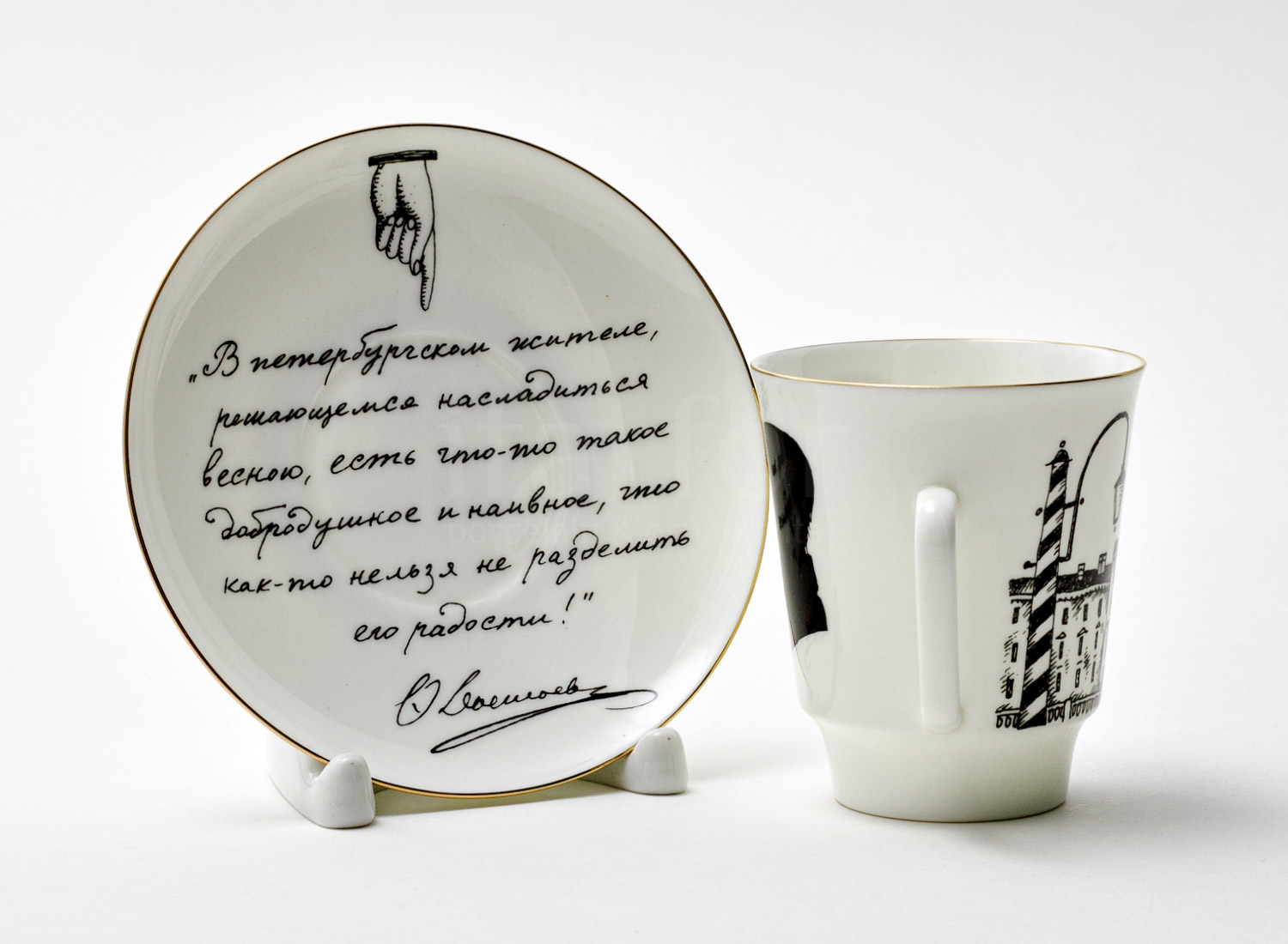 Надпись на блюдце: «В петербургском жителе, решающемся насладиться весною, есть что-то такое добродушное и наивное, что как-то нельзя не разделить его радости!»