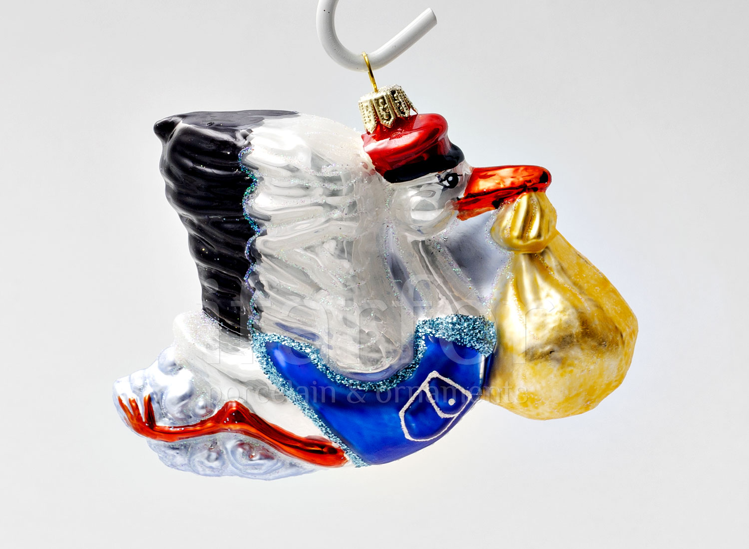 Елочная игрушка в подарочной коробке «Аист с младенцем»