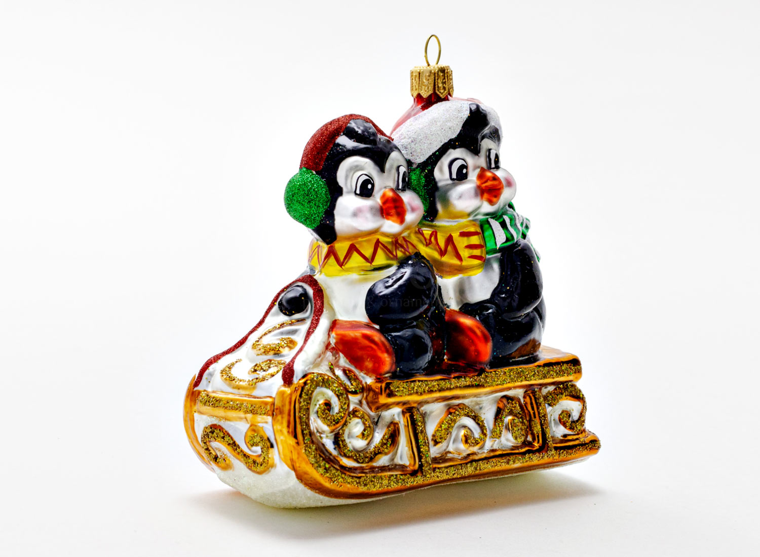 Елочная игрушка «Пингвины на санках»
