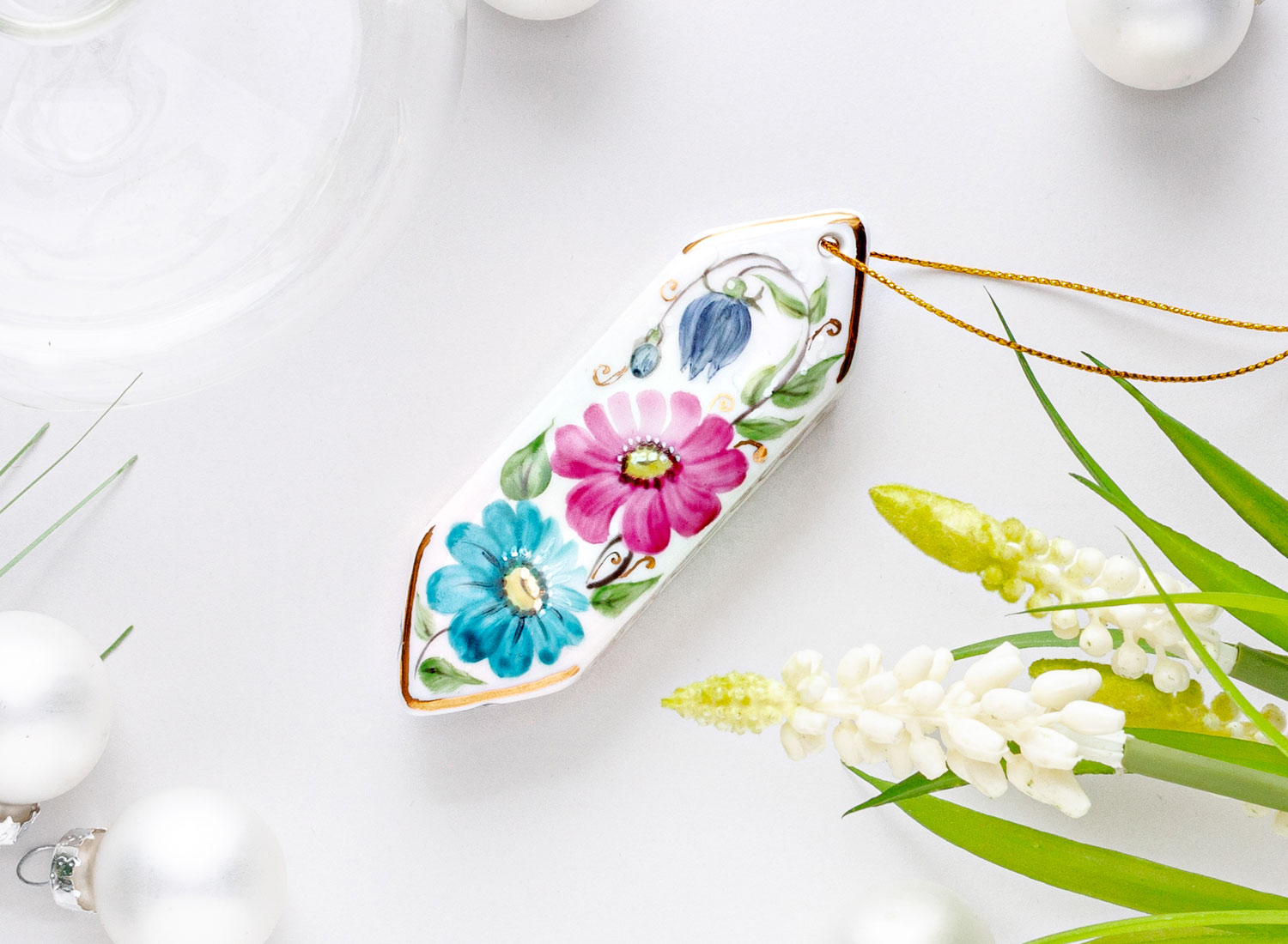 Елочная игрушка «Гжель краски золото»