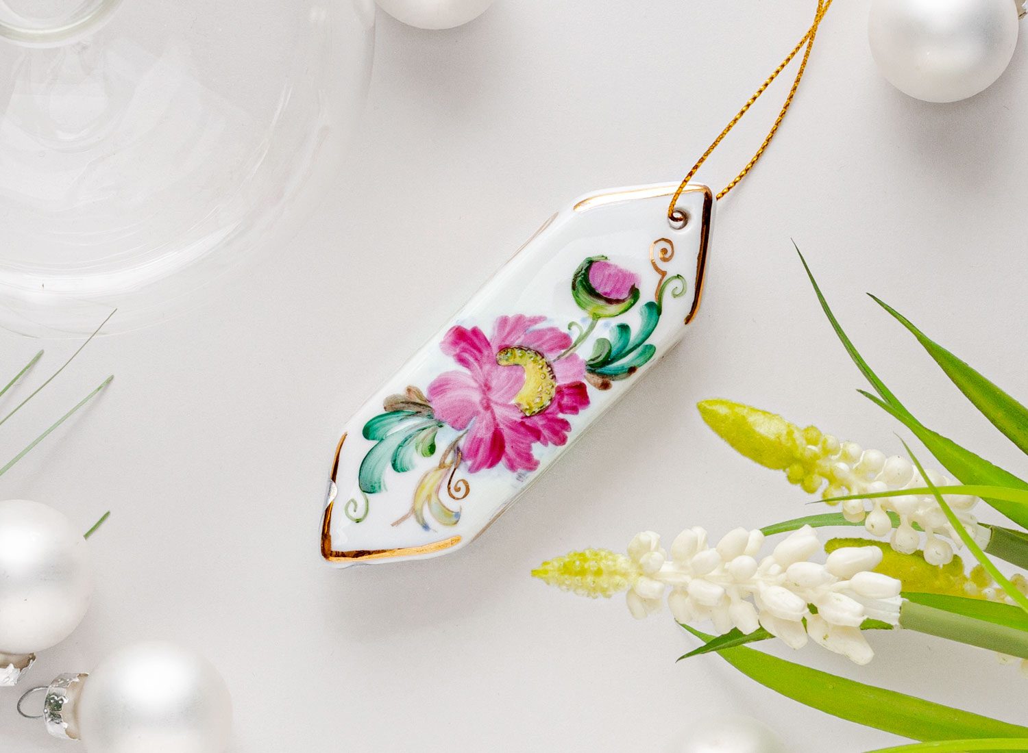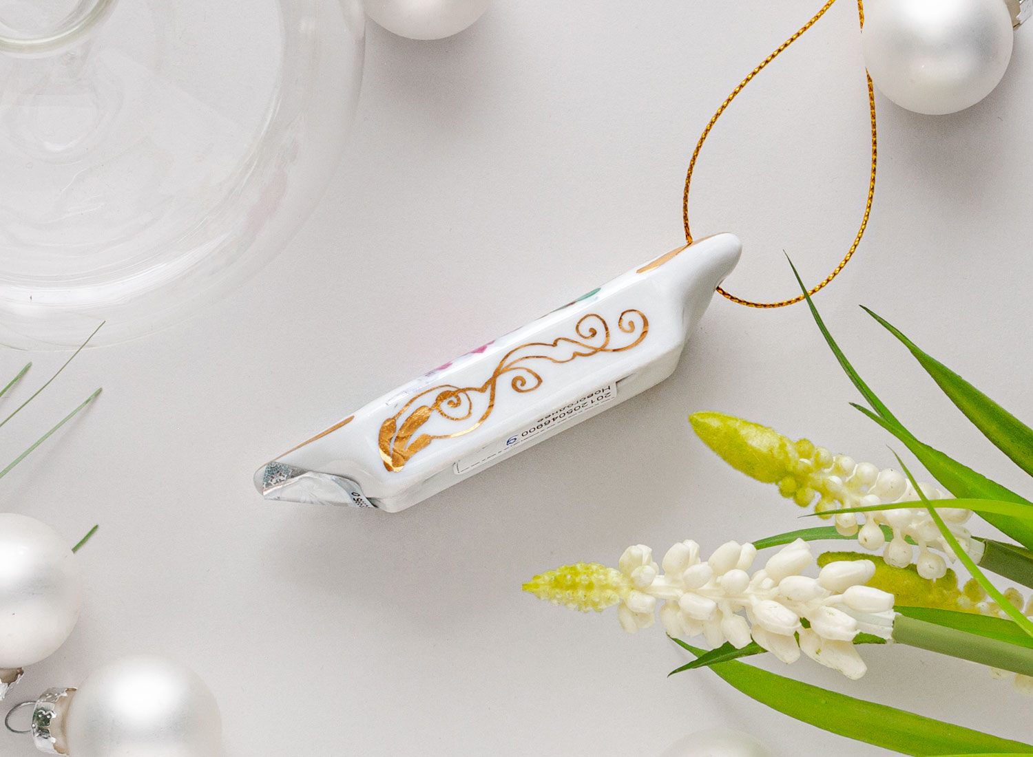 Елочная игрушка «Гжель краски золото»