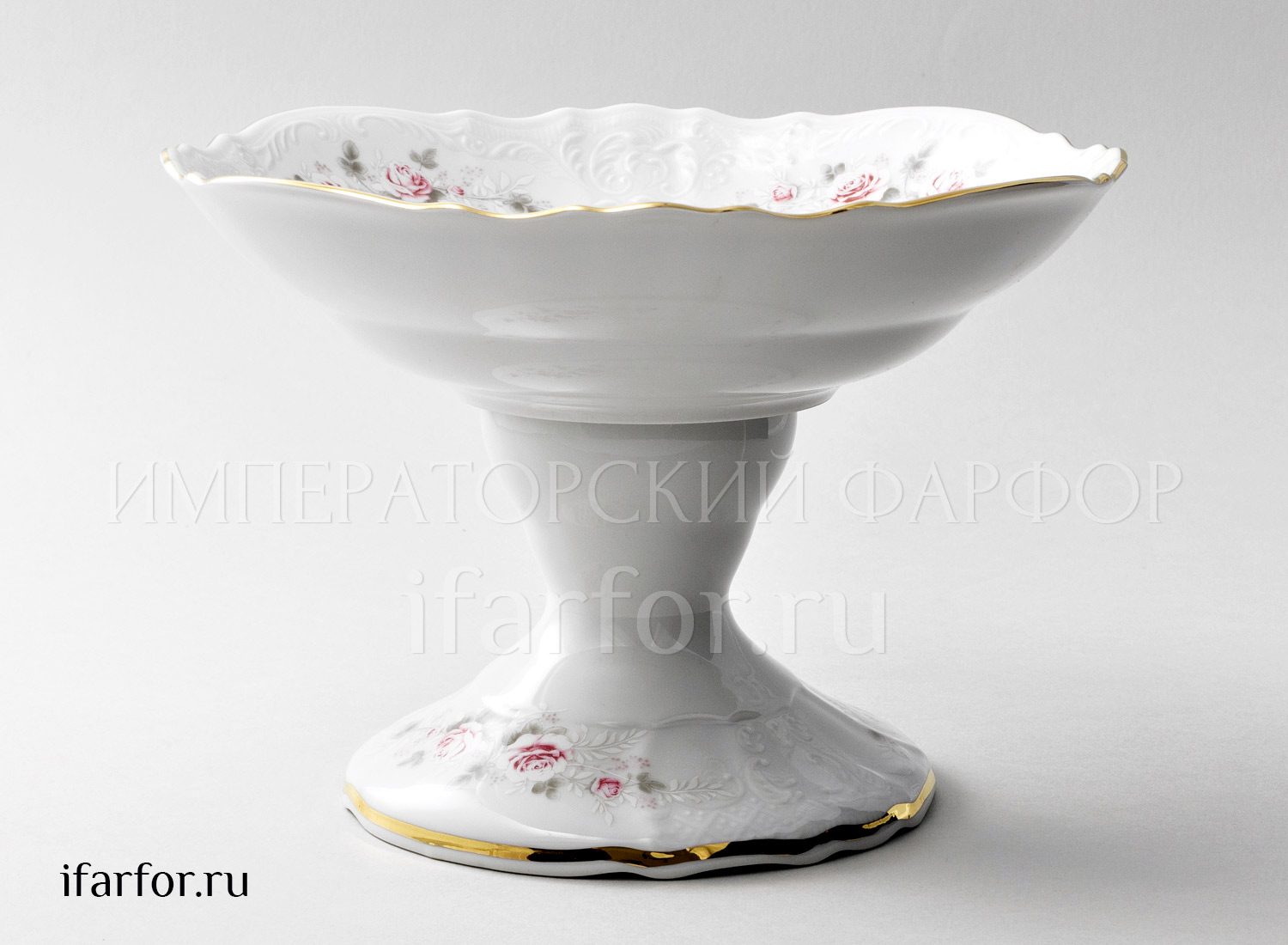 Ваза для фруктов на ножке «Бернадотт Серая роза золото»