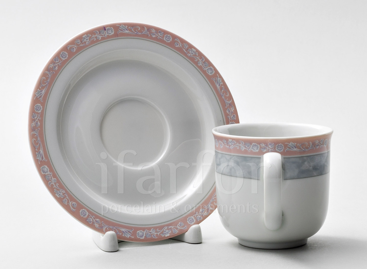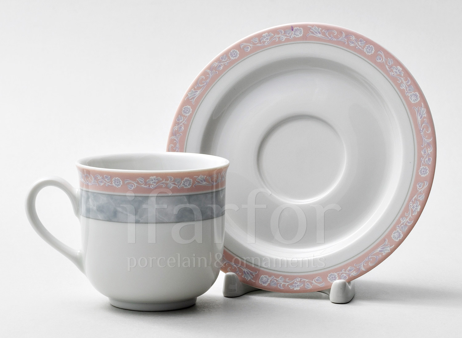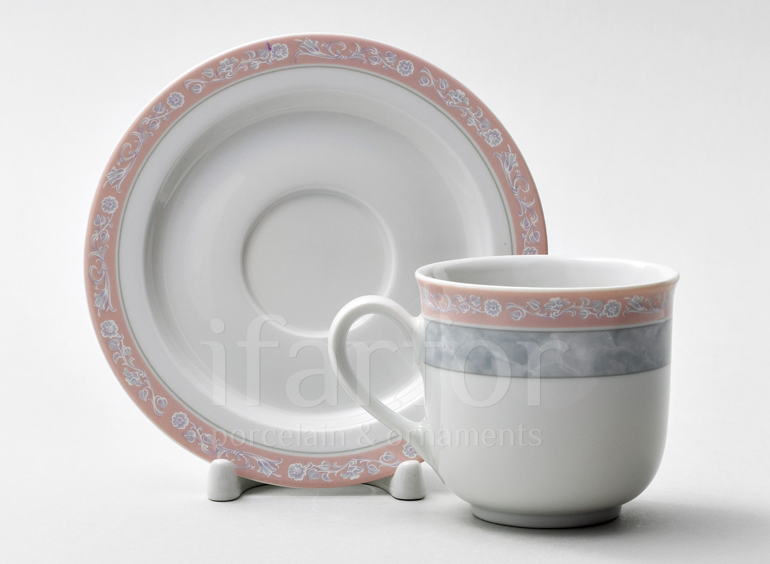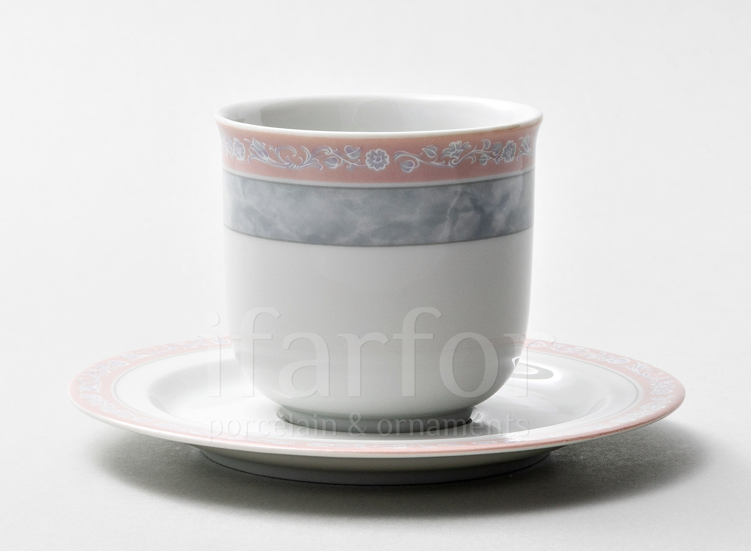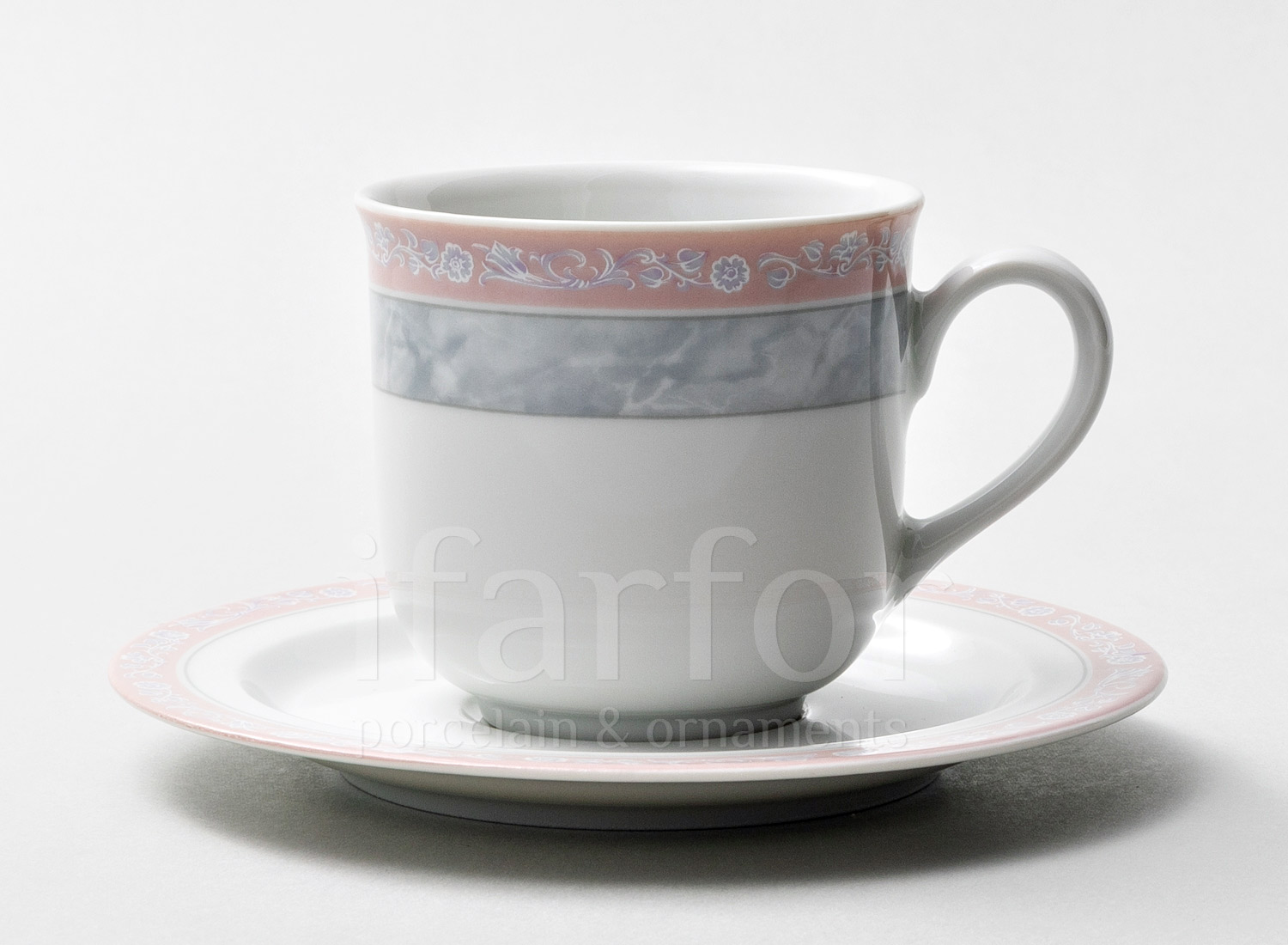 Чашка с блюдцем чайная «Серый мрамор с розовым кантом»