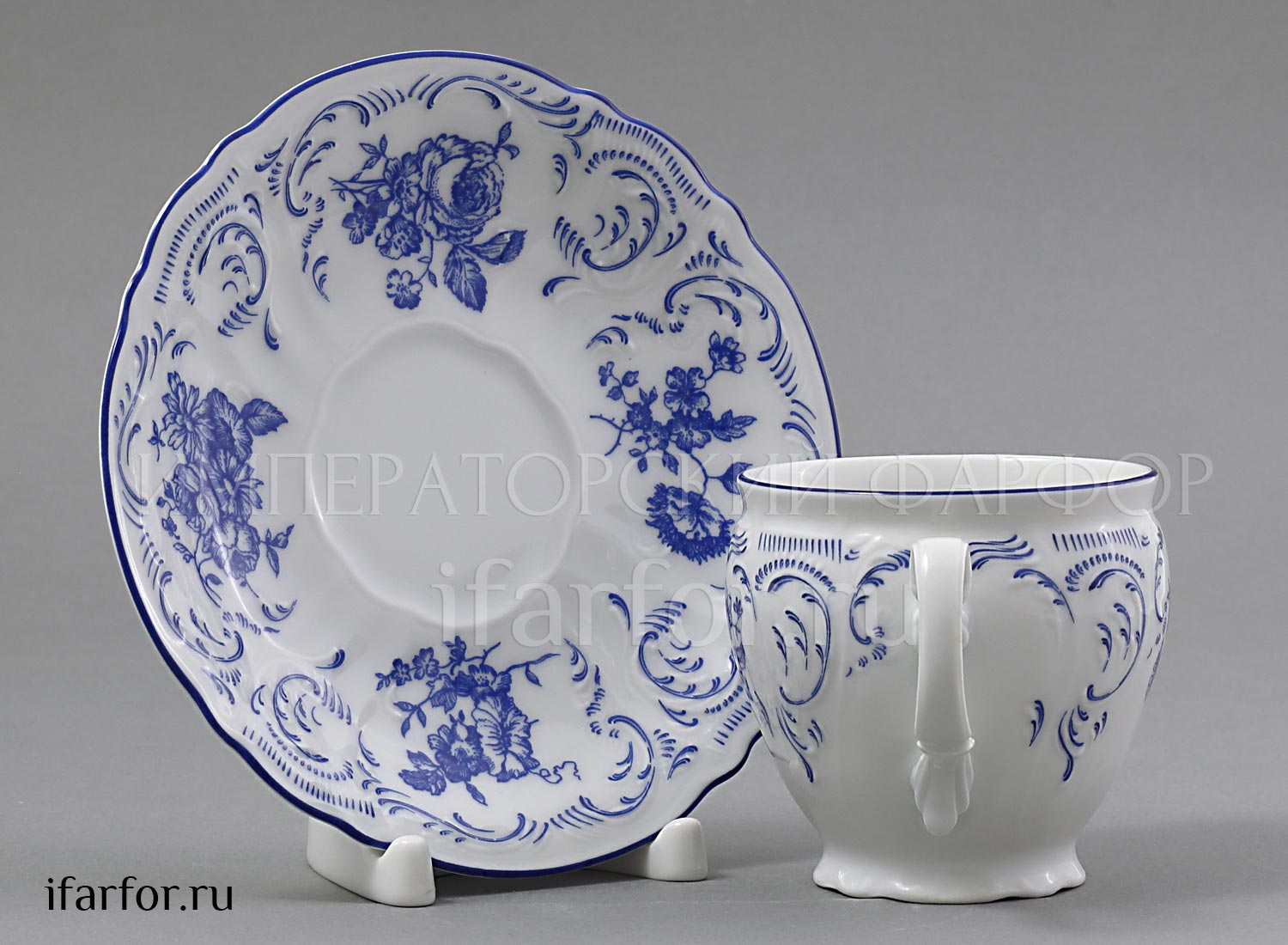Чашка с блюдцем чайная «Бернадотт Синие розы»