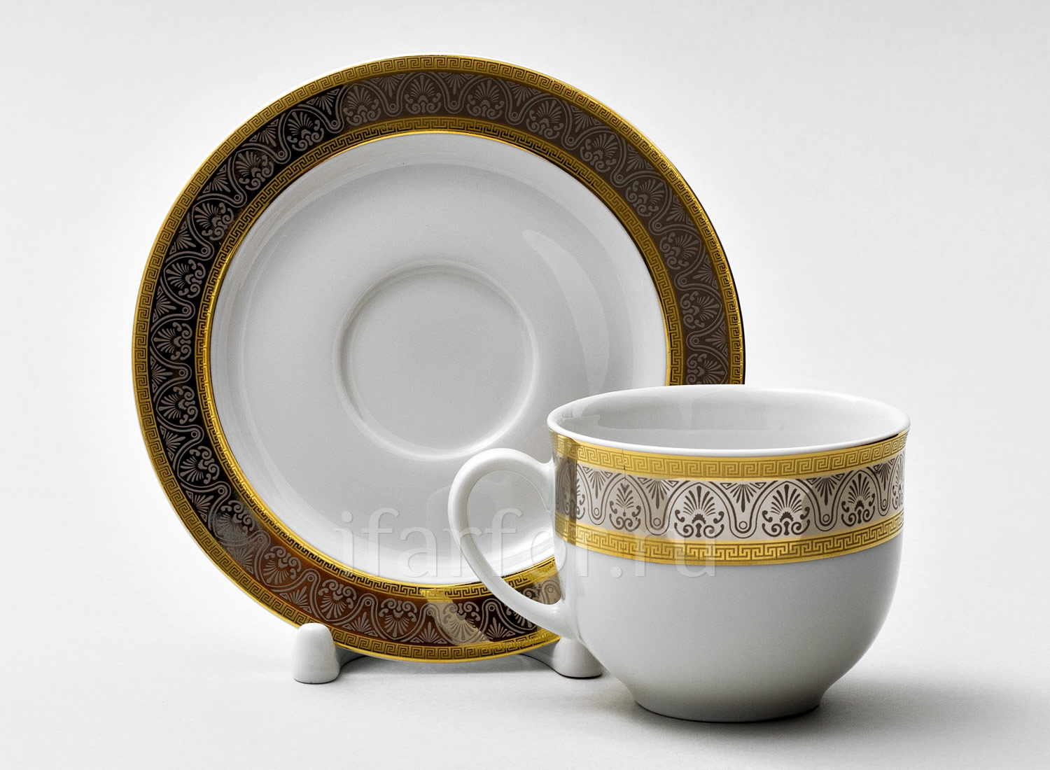 Чашка с блюдцем кофейная «Широкий кант платина золото»