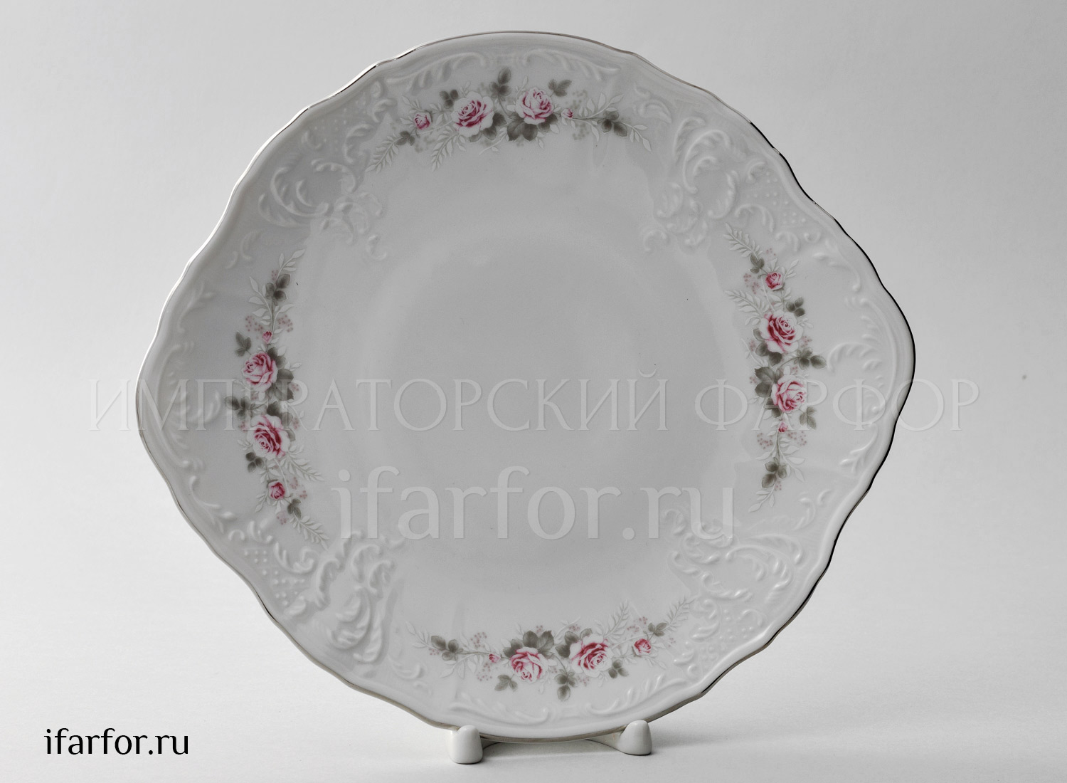 Блюдо для торта «Бернадотт Серая роза платина»