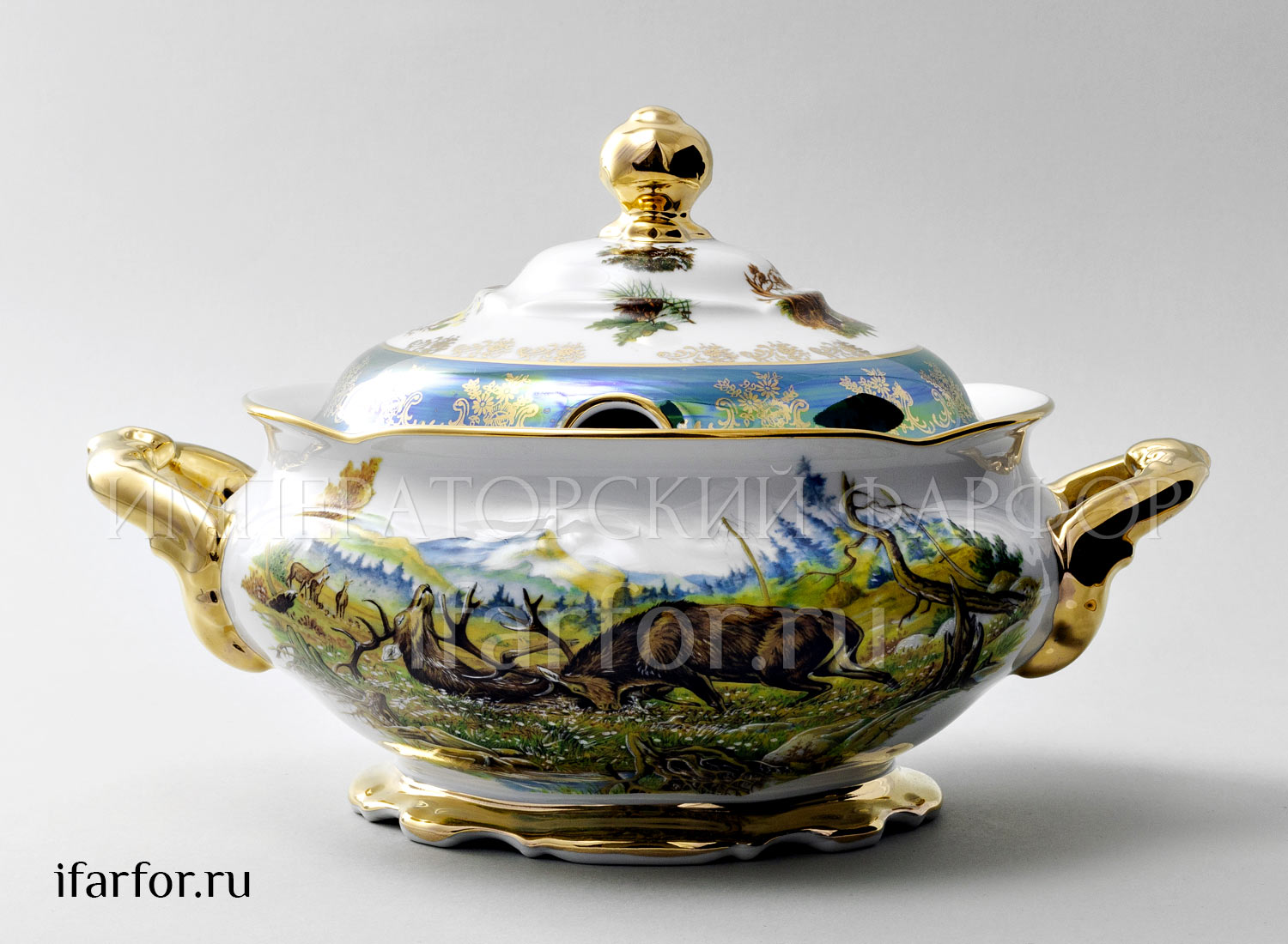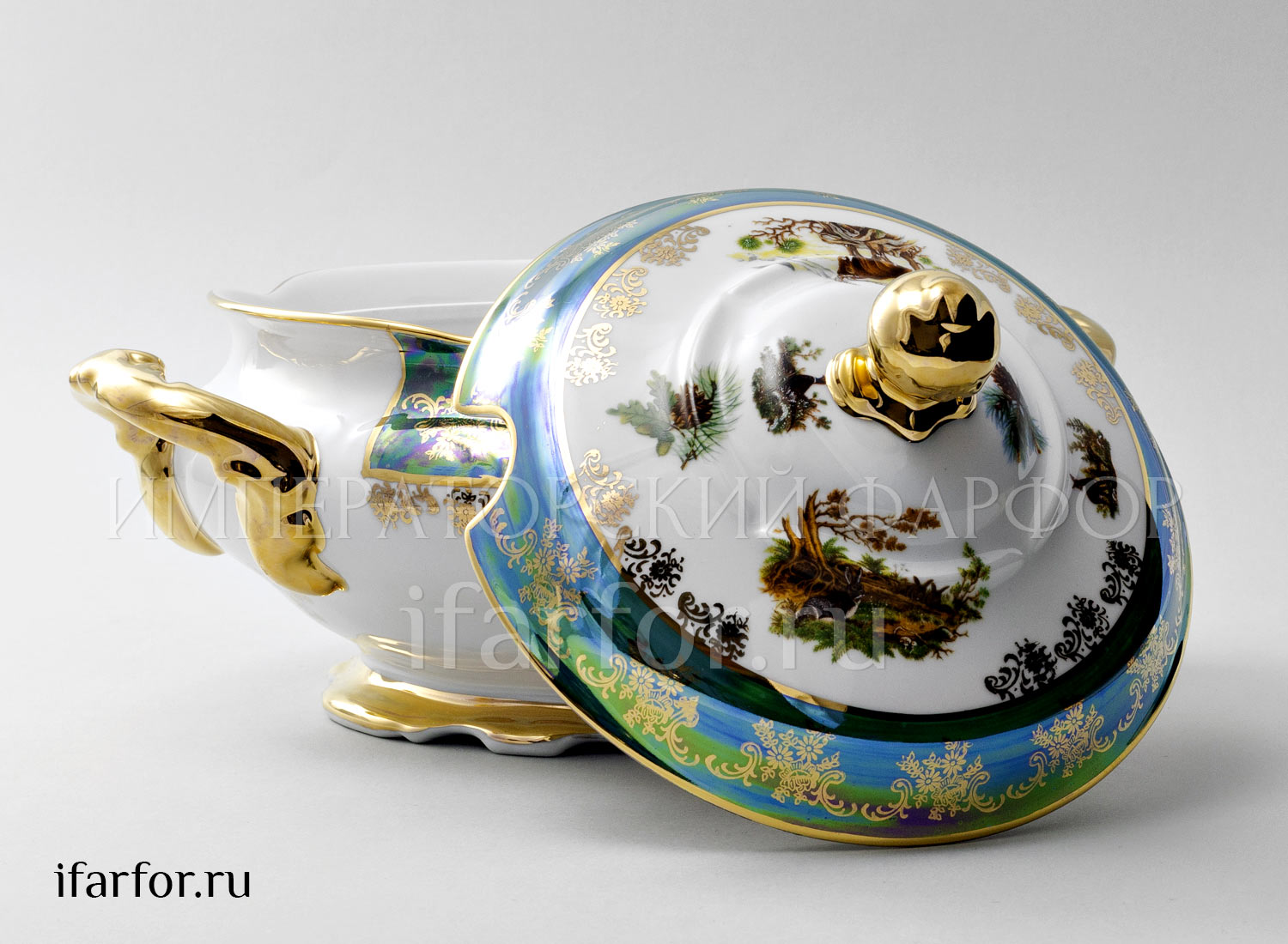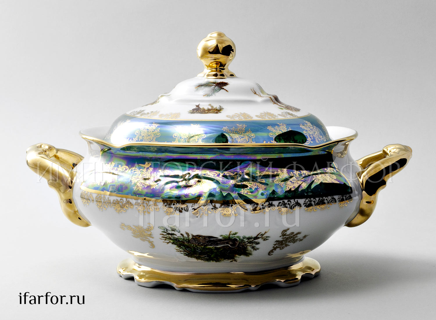 Супница и крышка «Охота Зеленая»