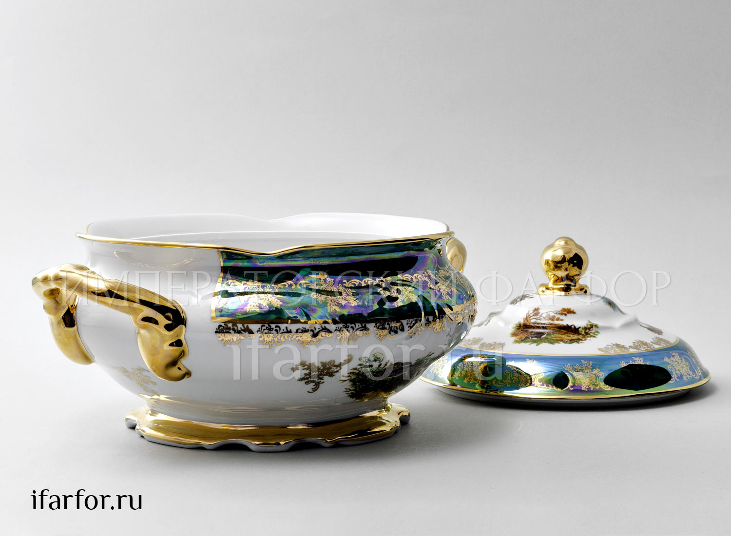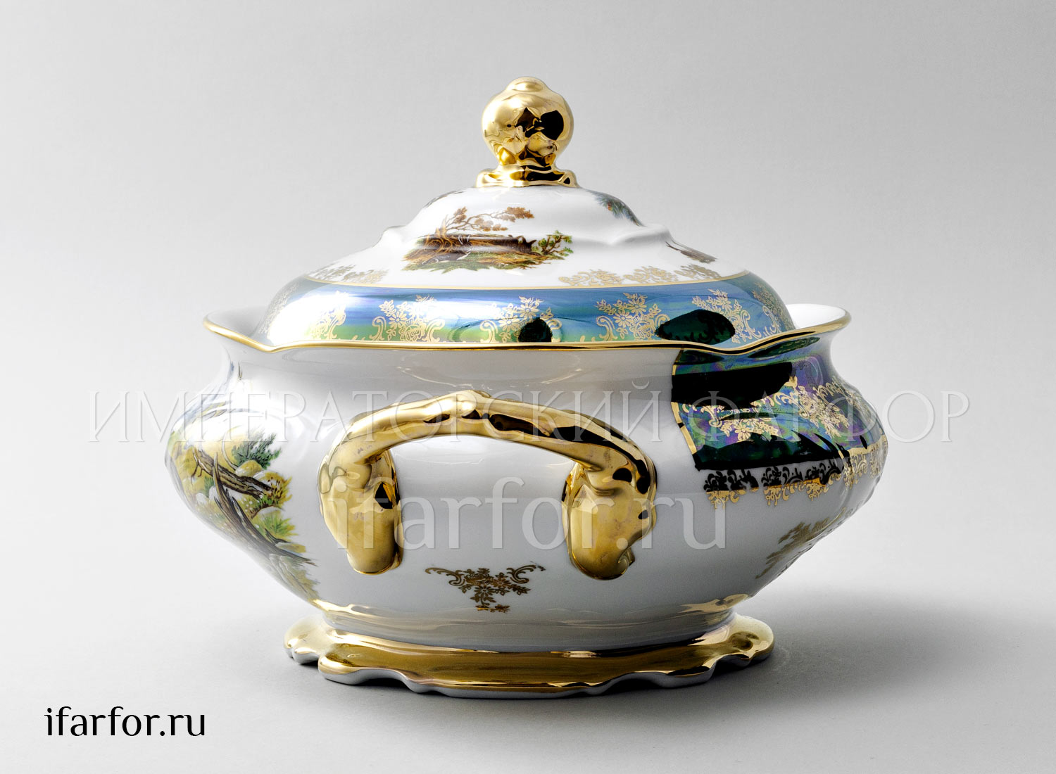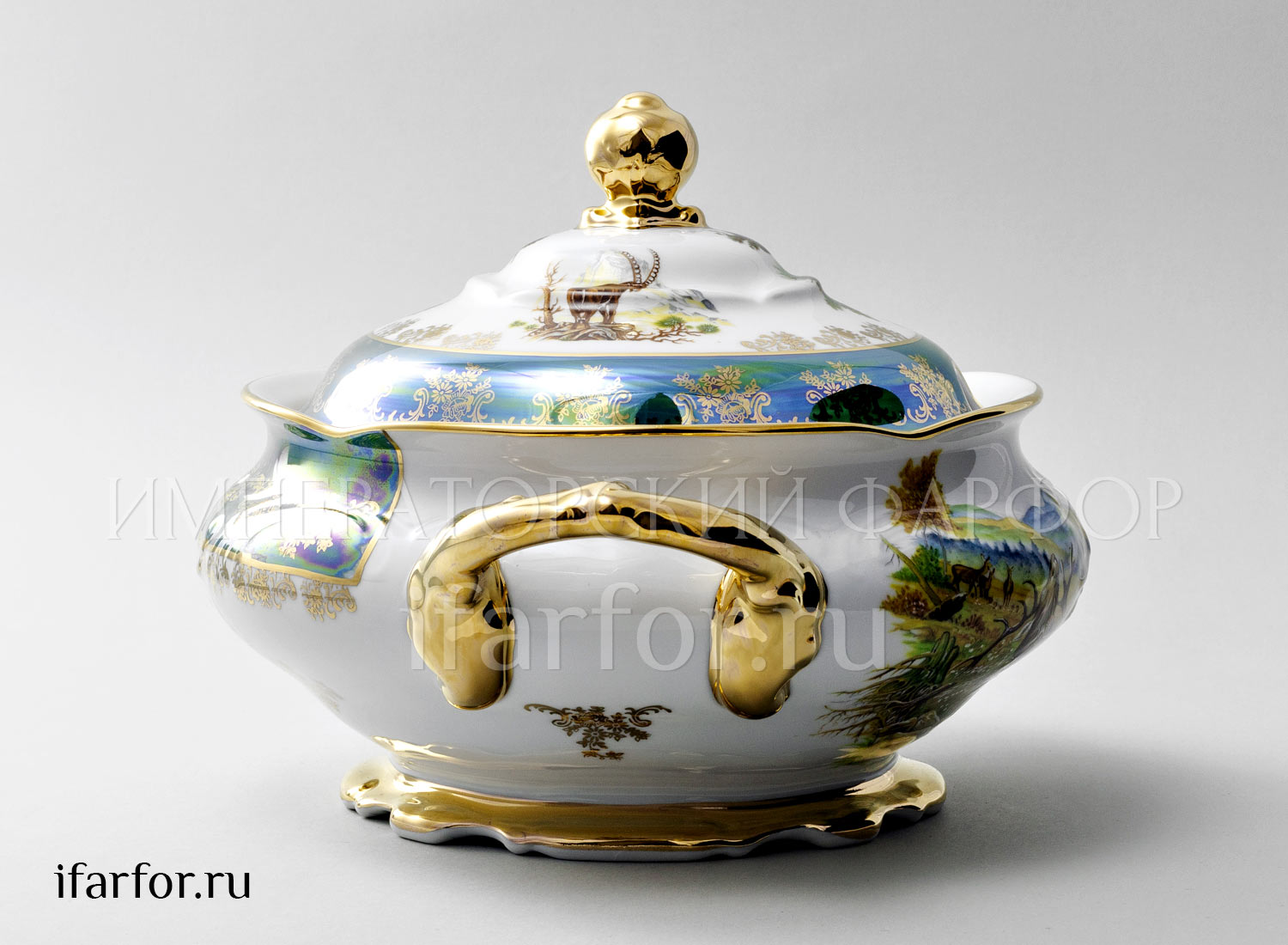 Супница и крышка «Охота Зеленая»