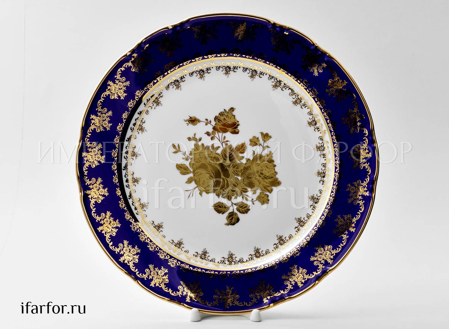 Блюдо круглое «Золотая роза Кобальт»