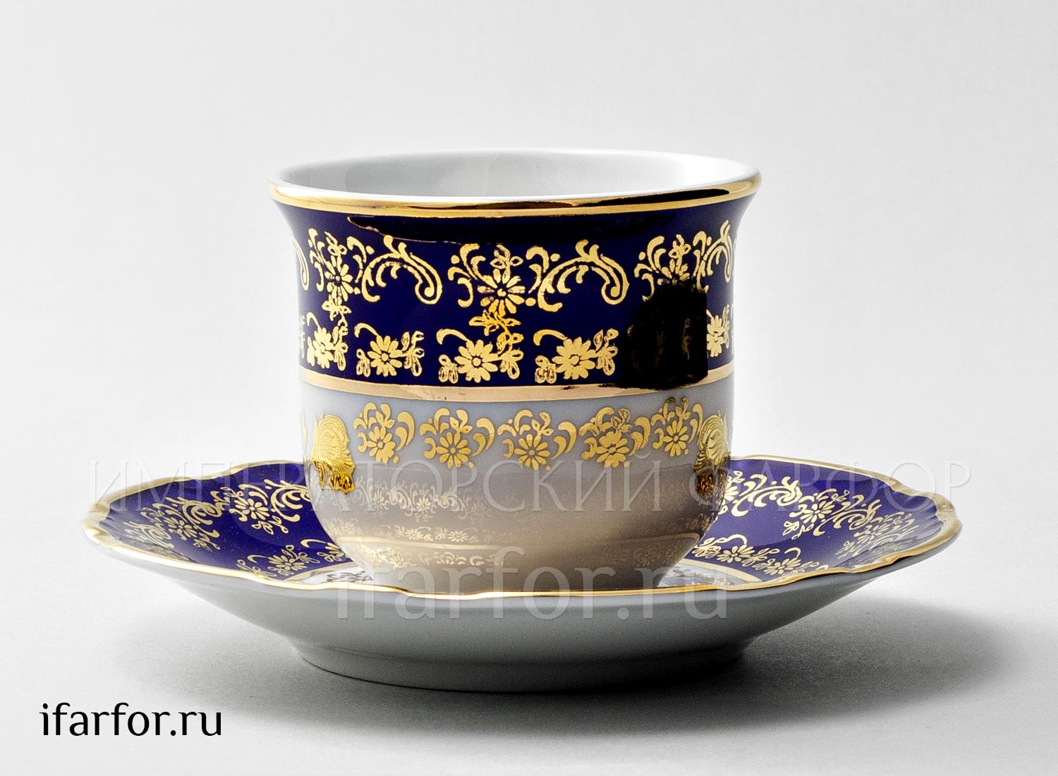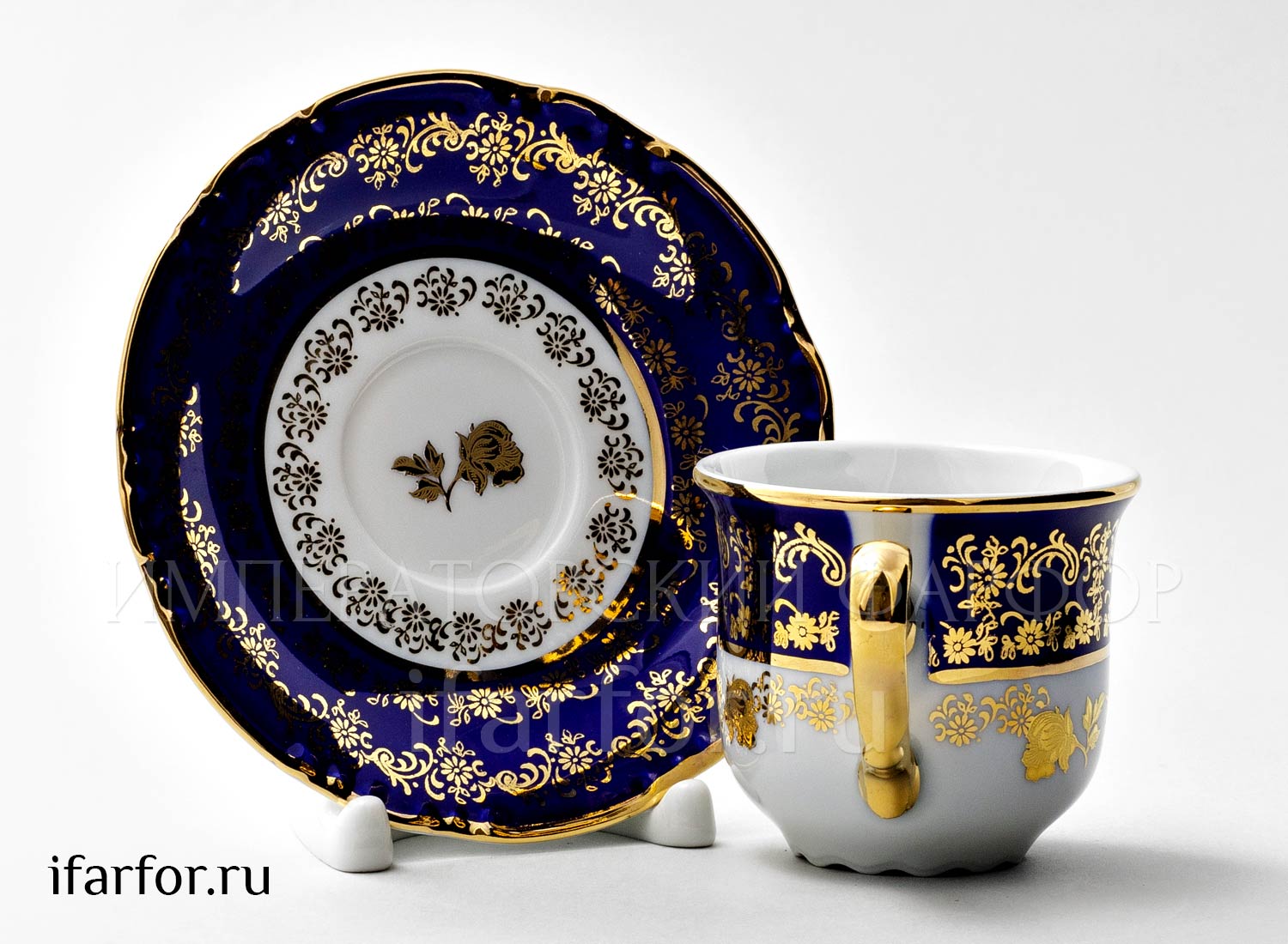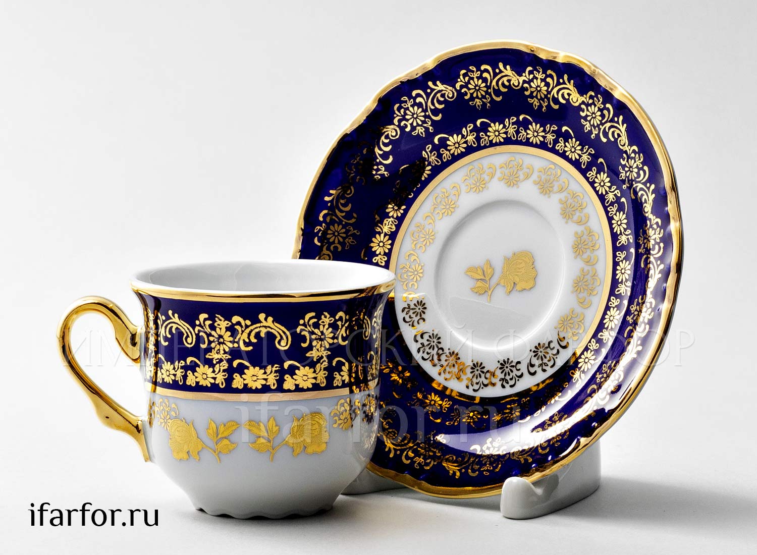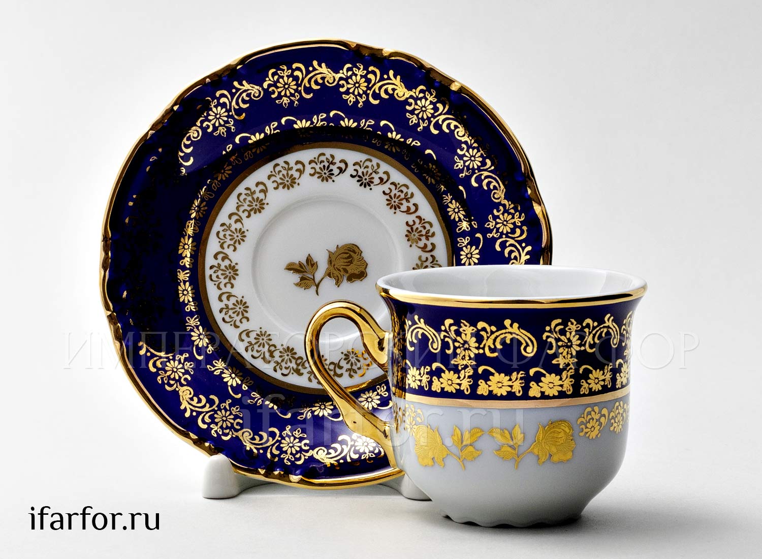 Чашка с блюдцем кофейная «Золотая роза Кобальт»