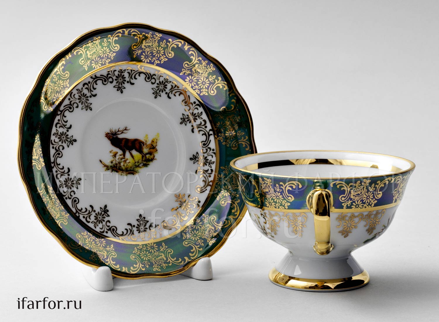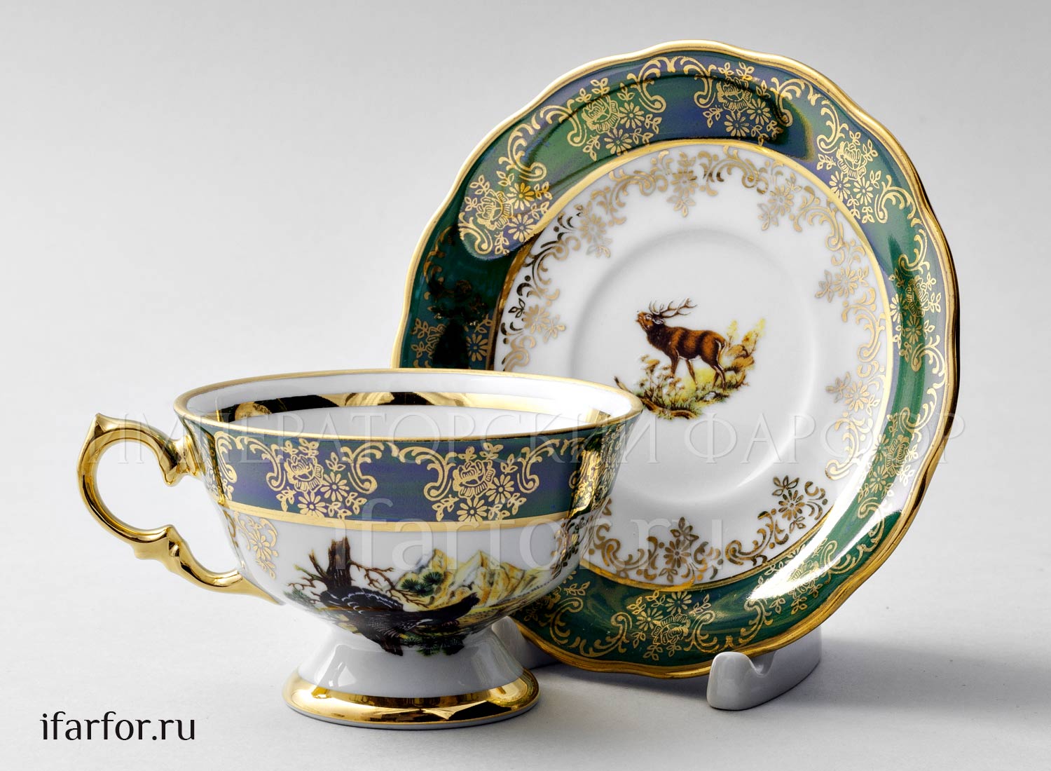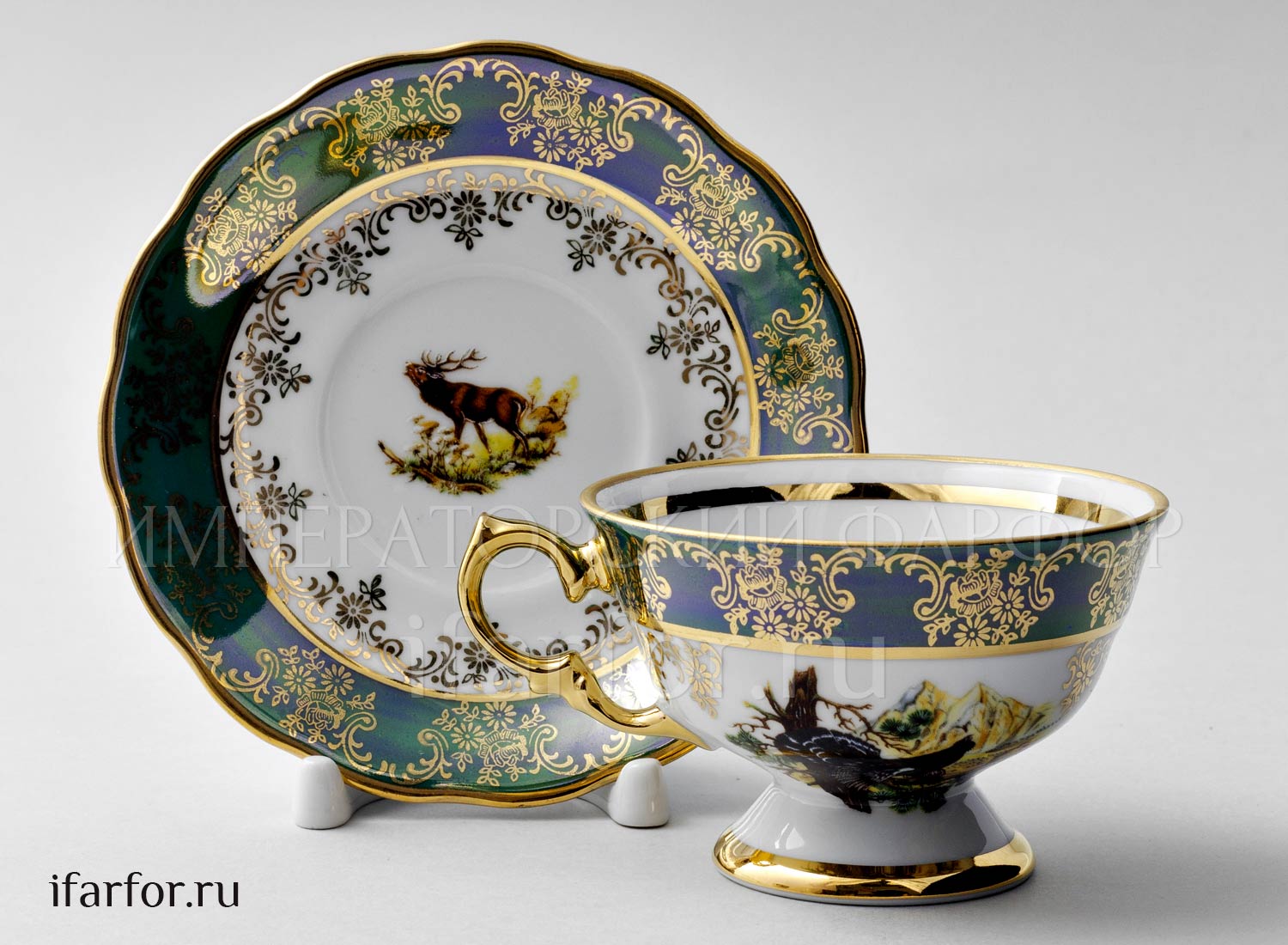 Набор чашек с блюдцами «Охота Зеленая»