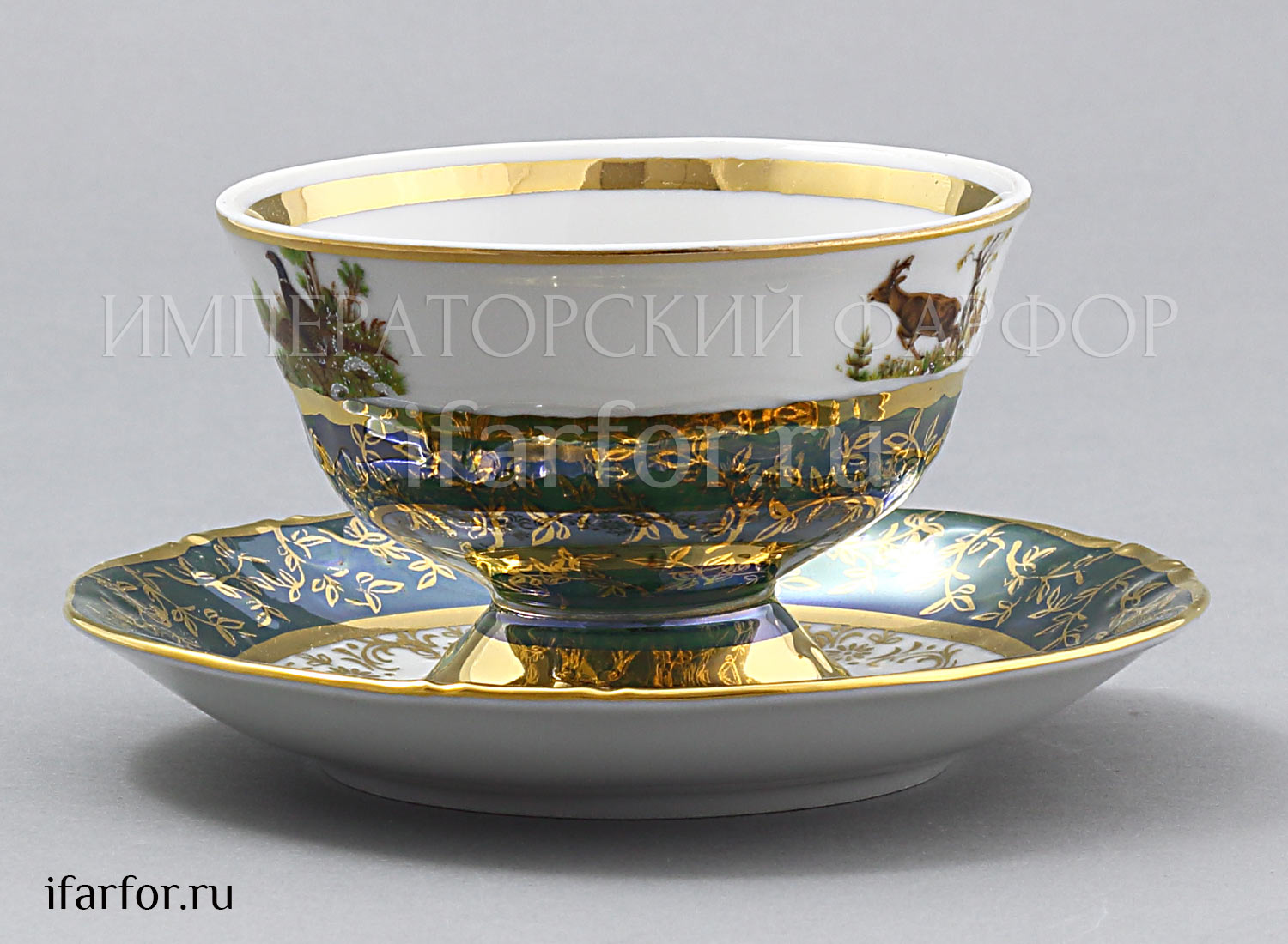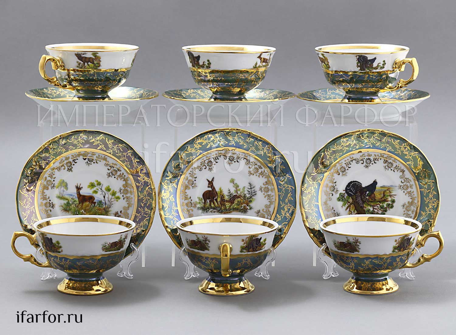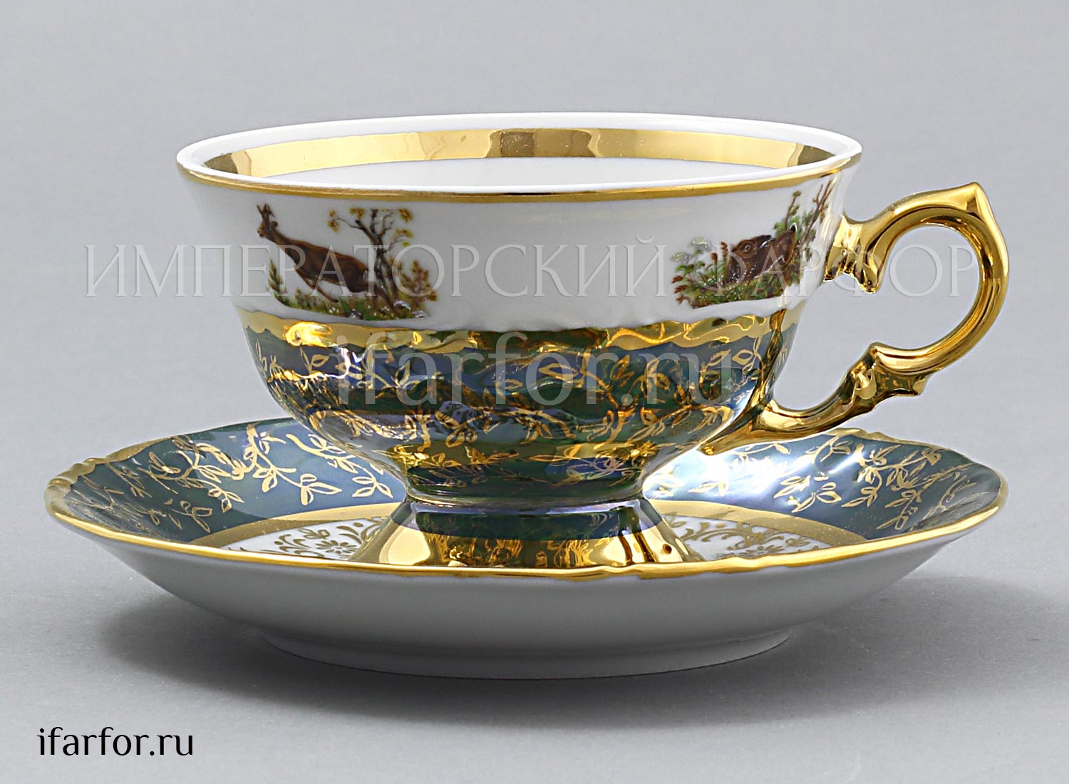 Набор чашек с блюдцами «Охота Зеленая»