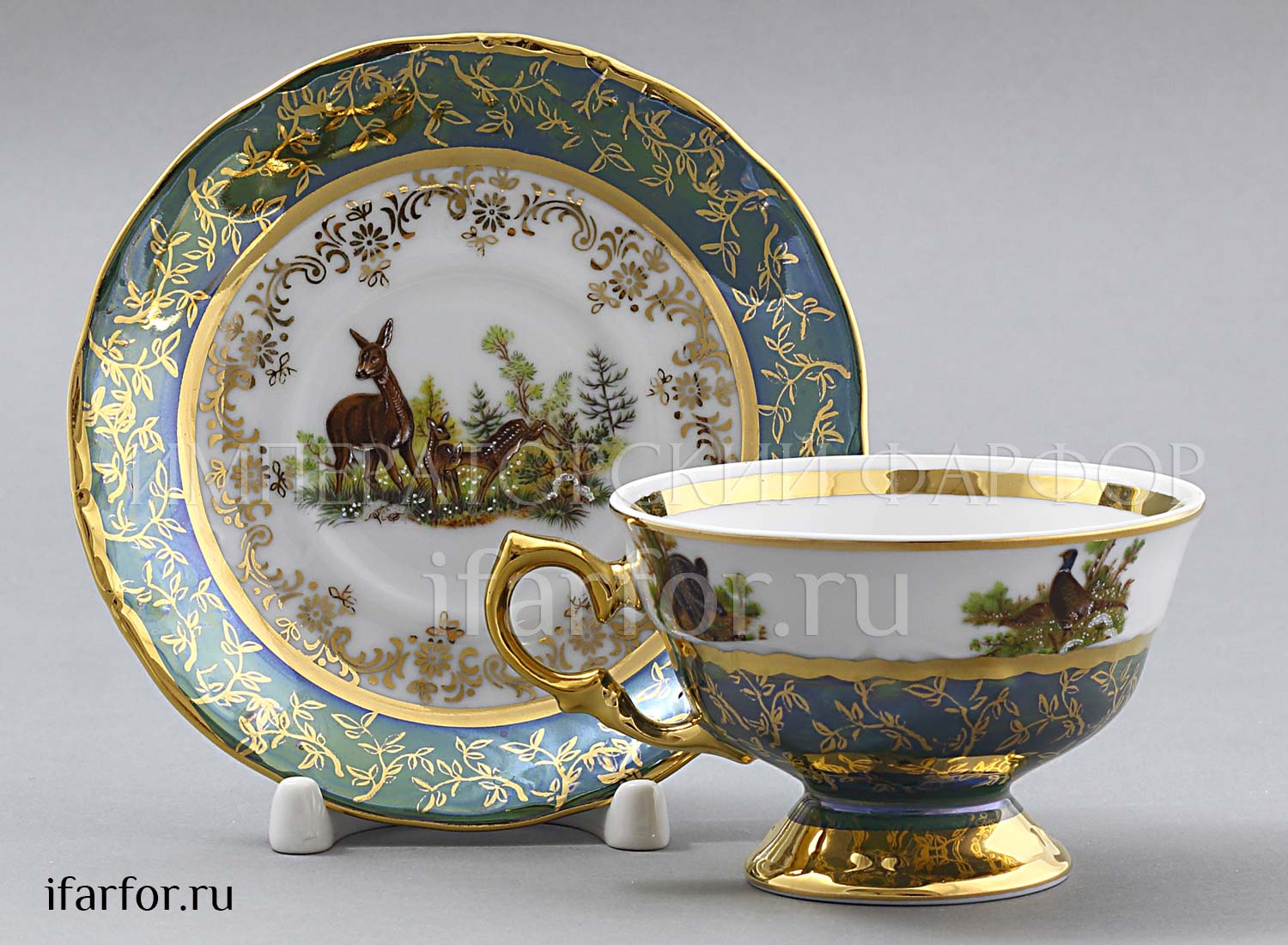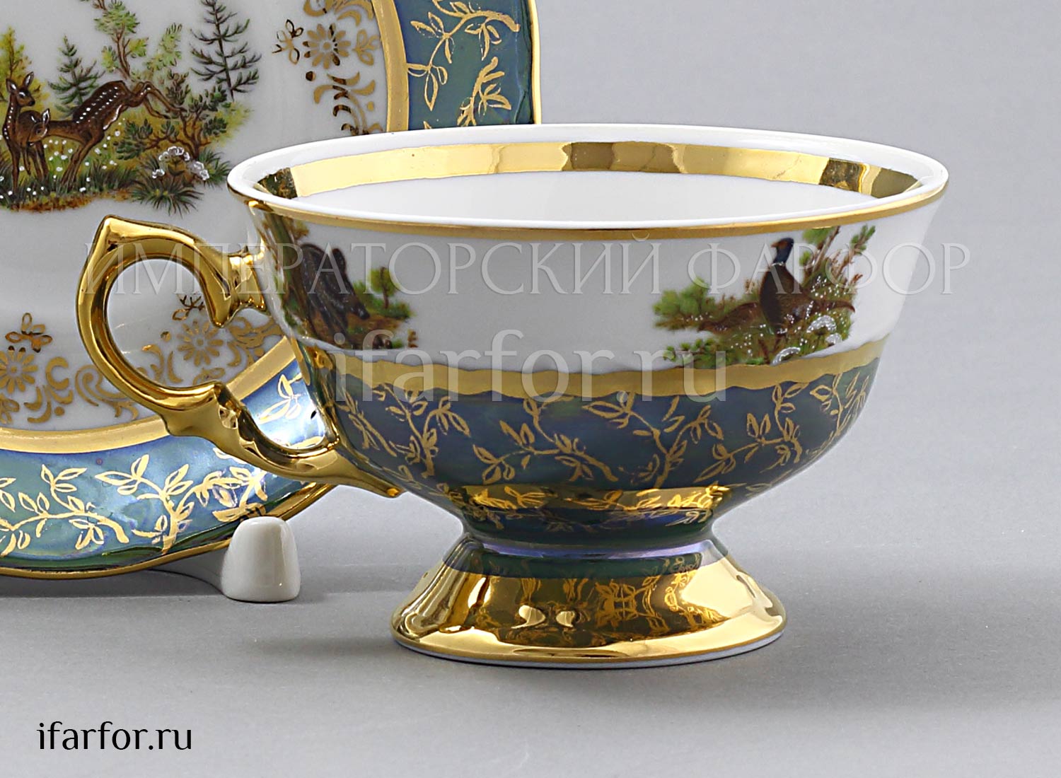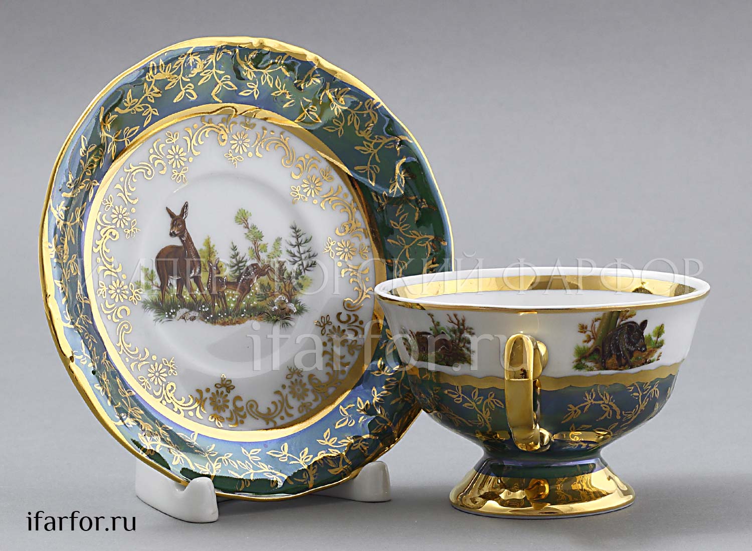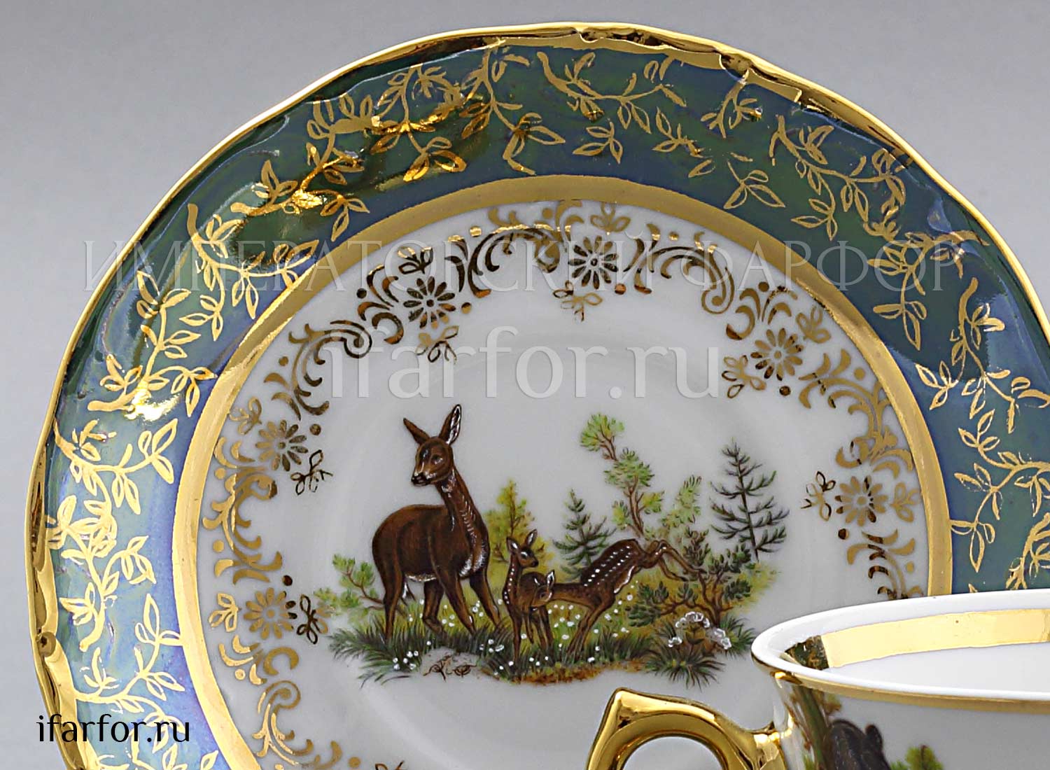 Набор чашек с блюдцами «Охота Зеленая»