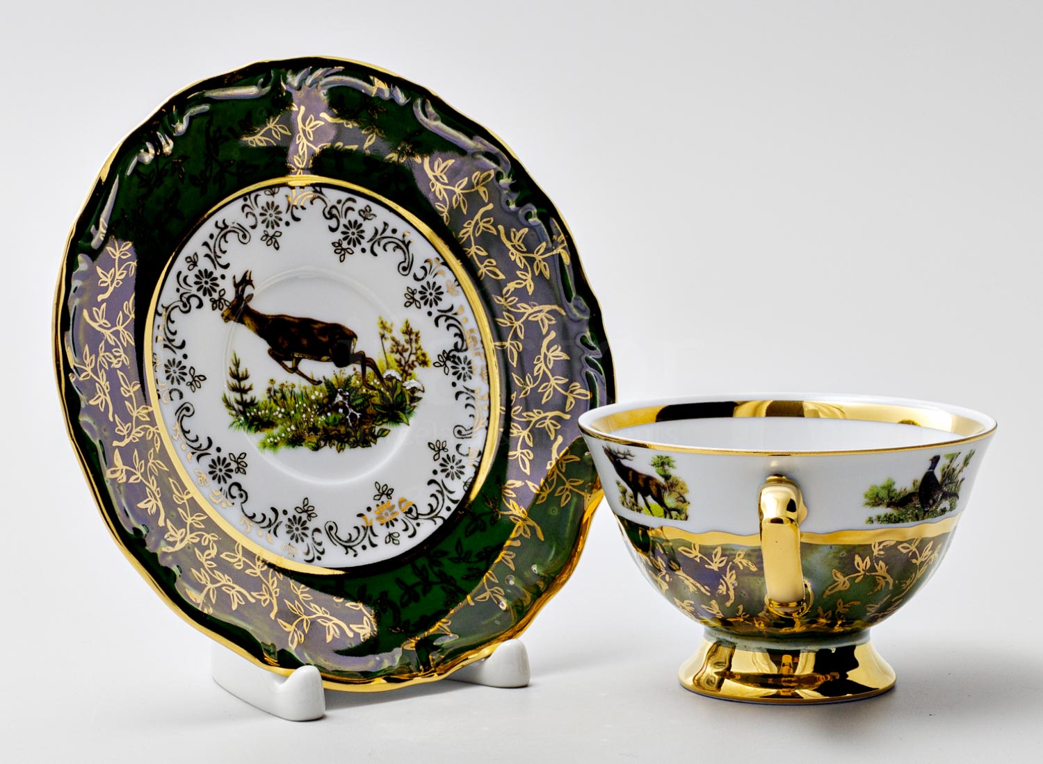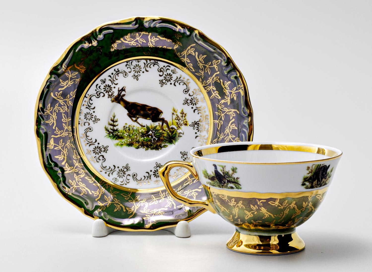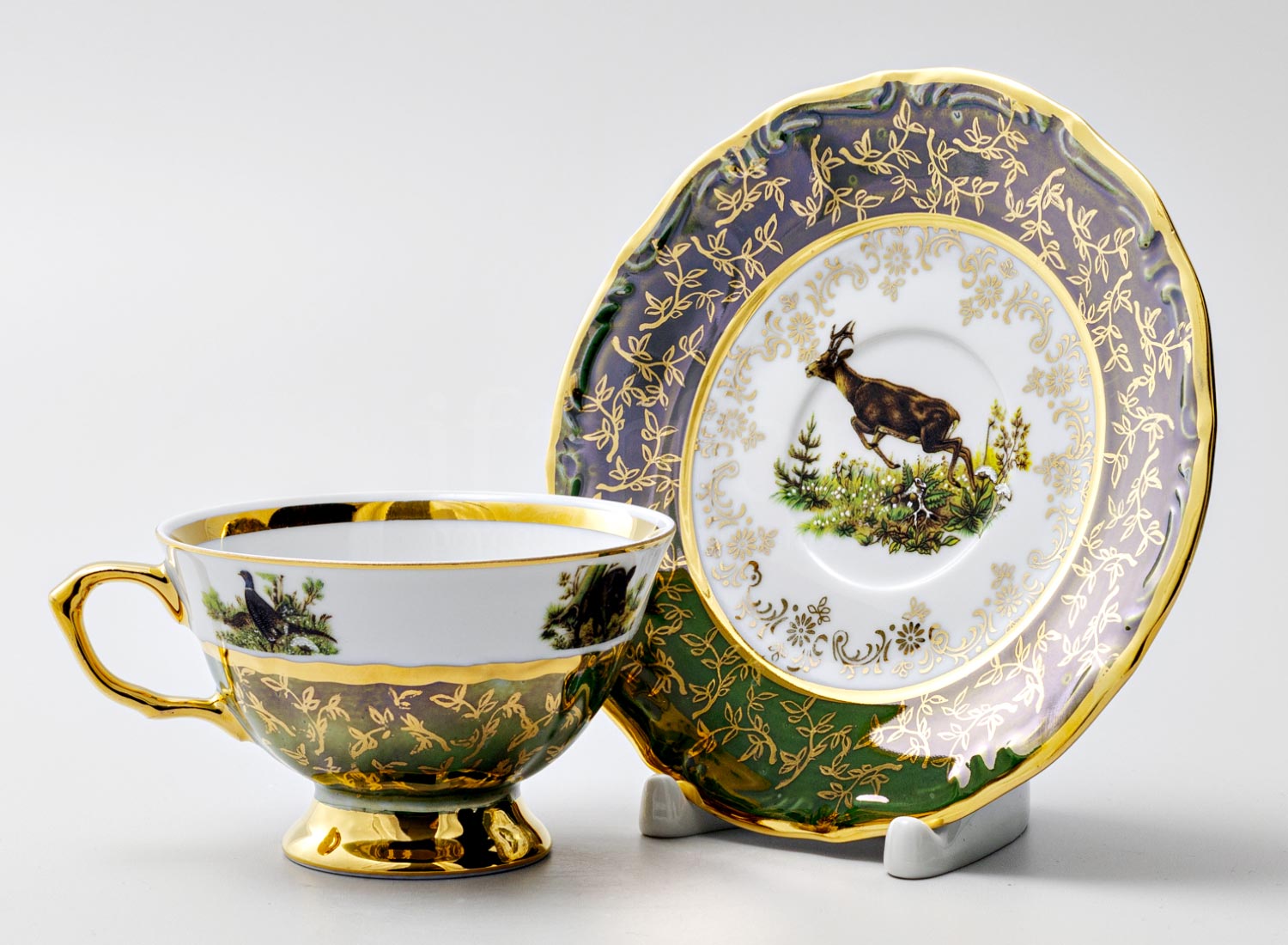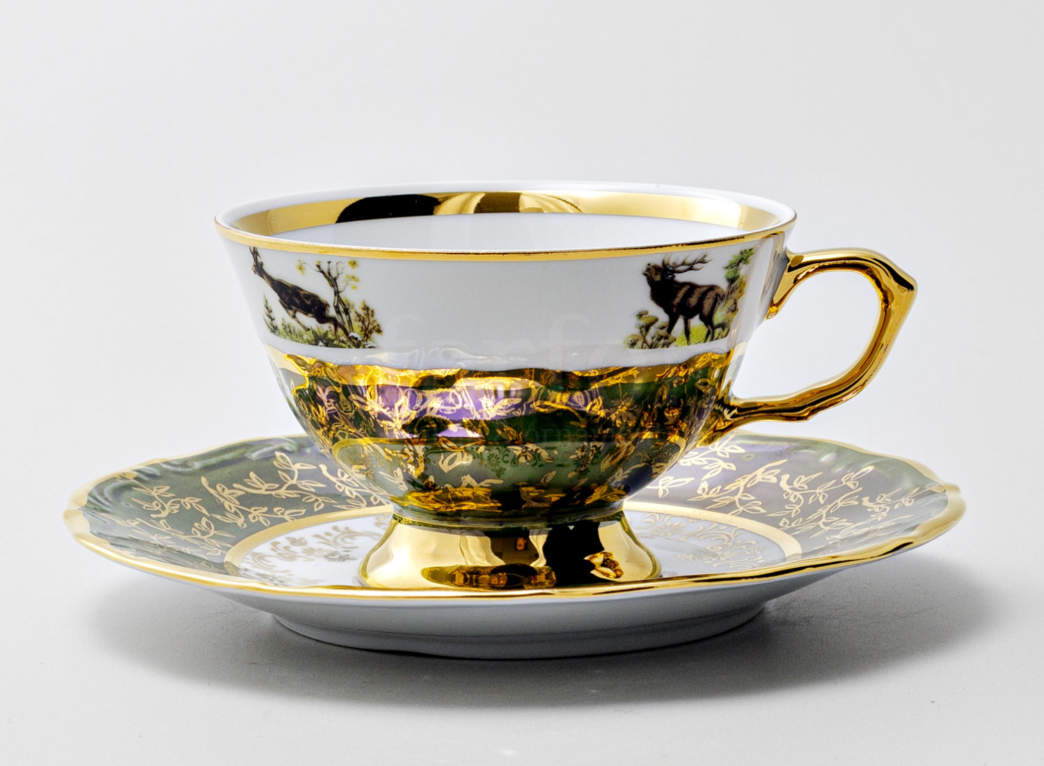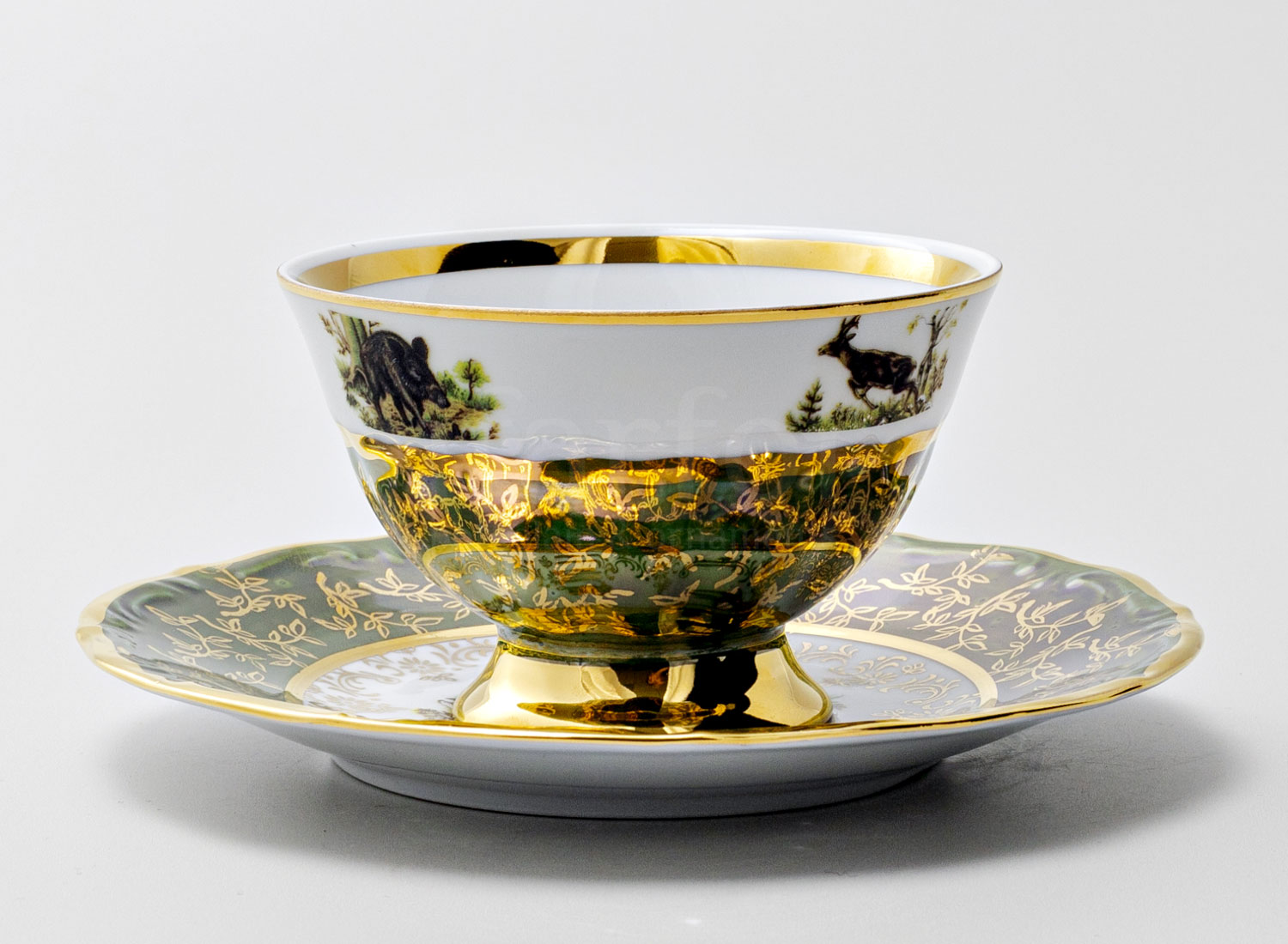 Чашка с блюдцем чайная «Охота Зеленая 2»