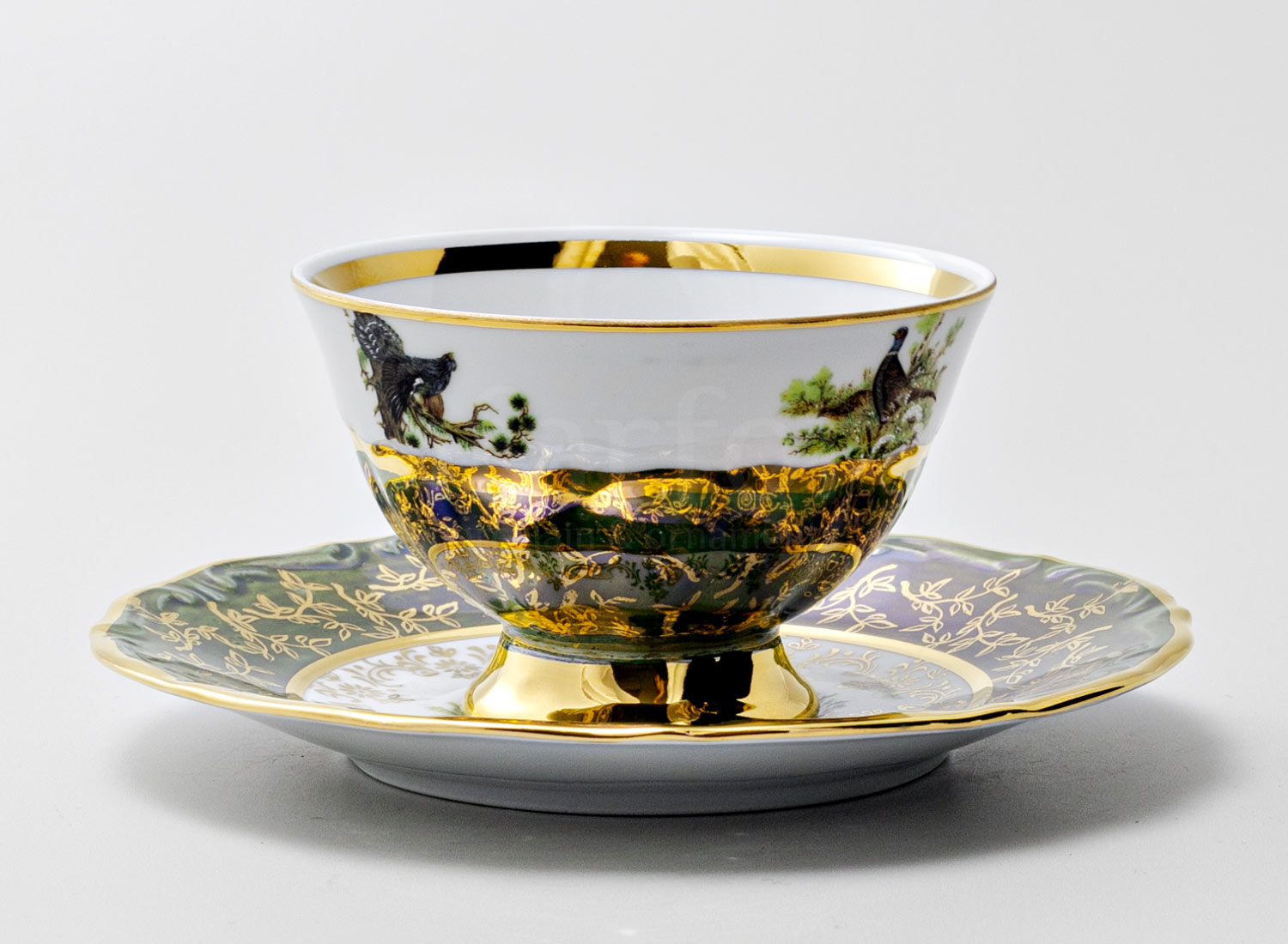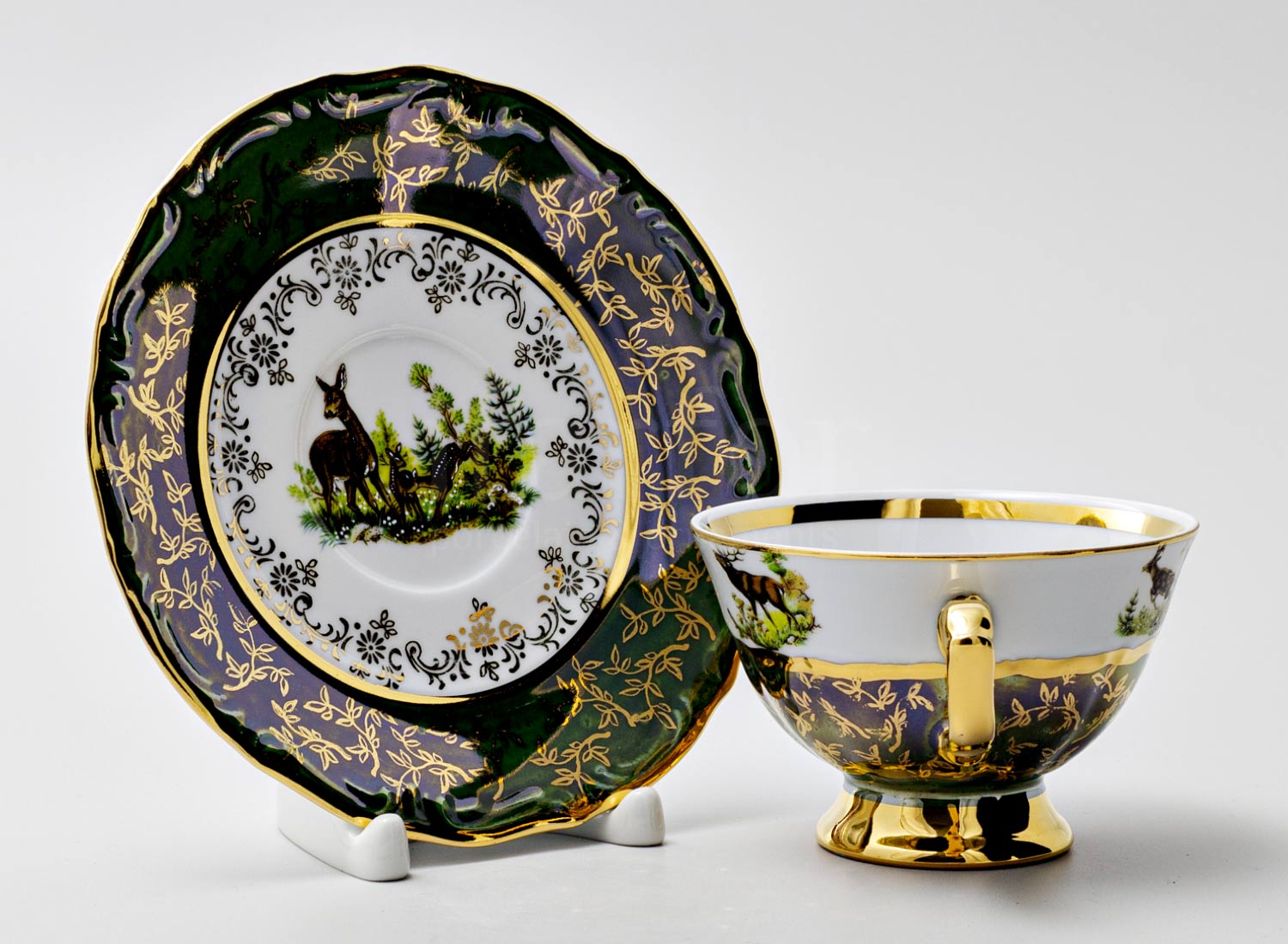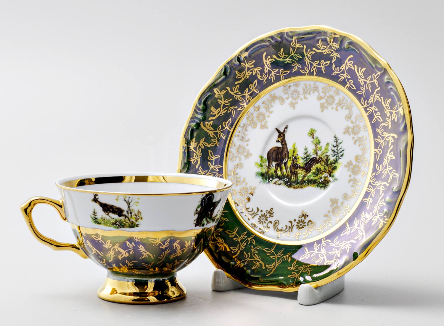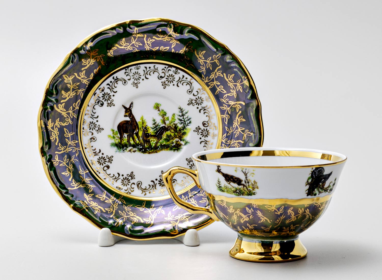 Чашка с блюдцем чайная «Охота Зеленая 5»
