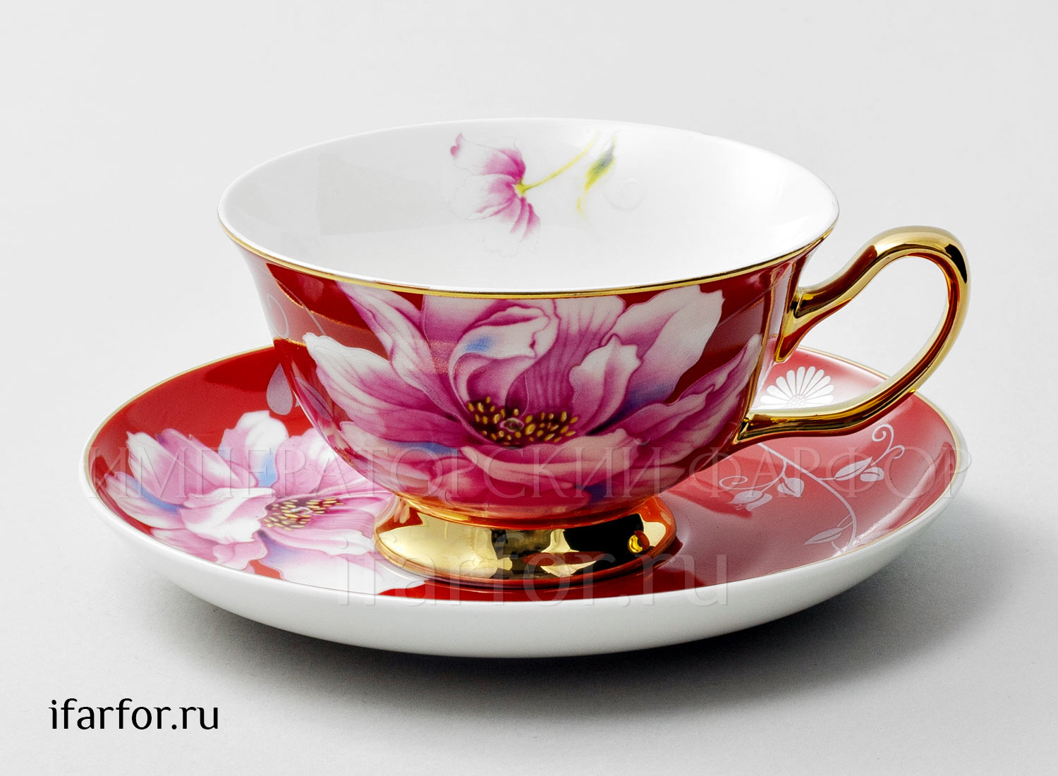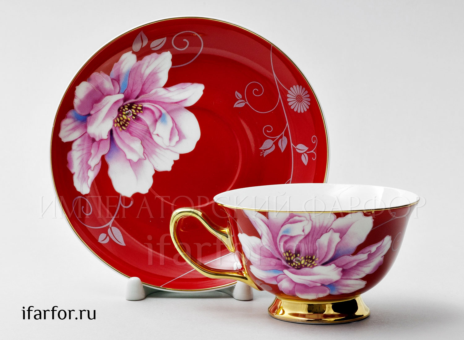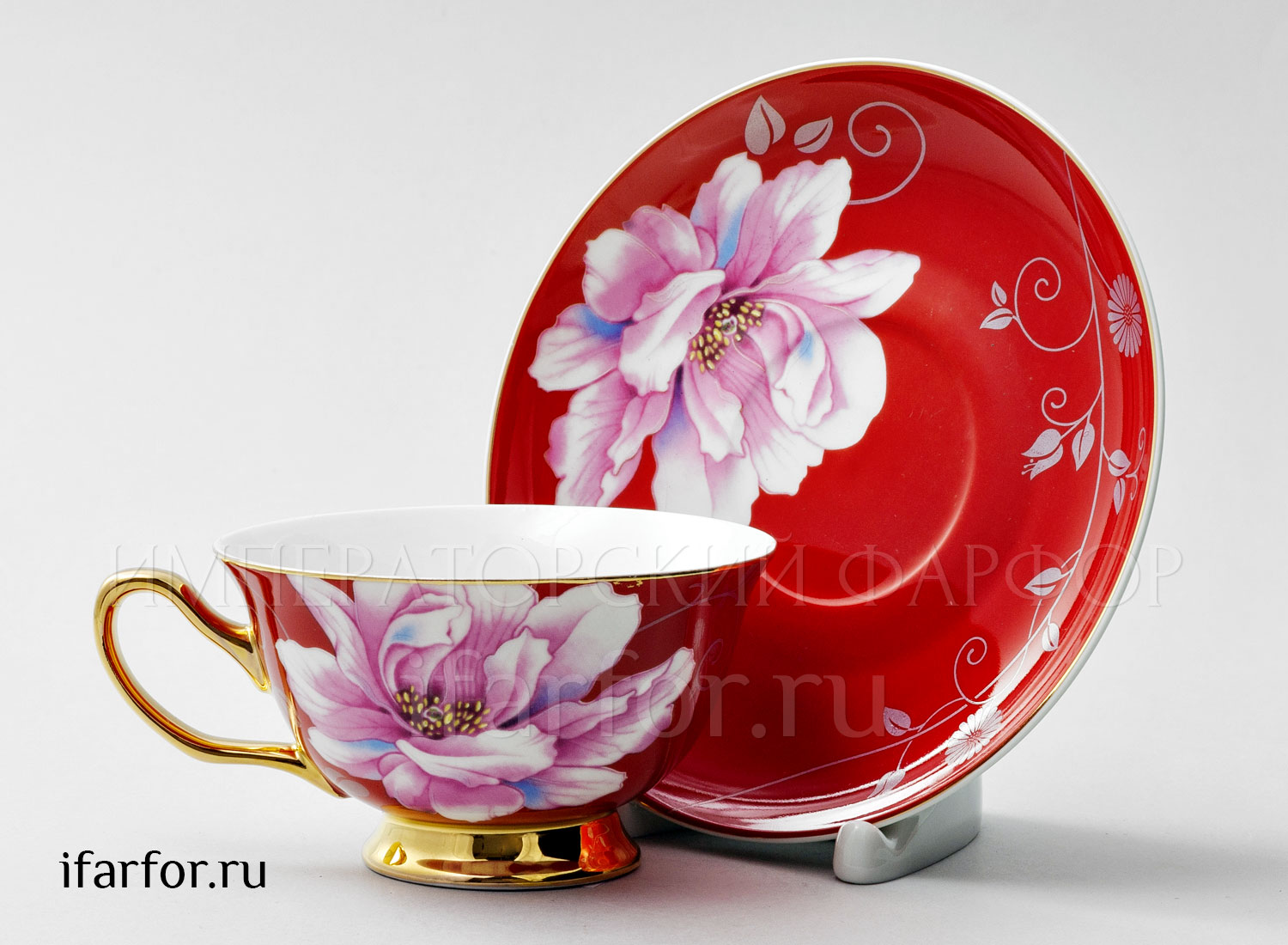 Чашка с блюдцем чайная «Камелия Красный»