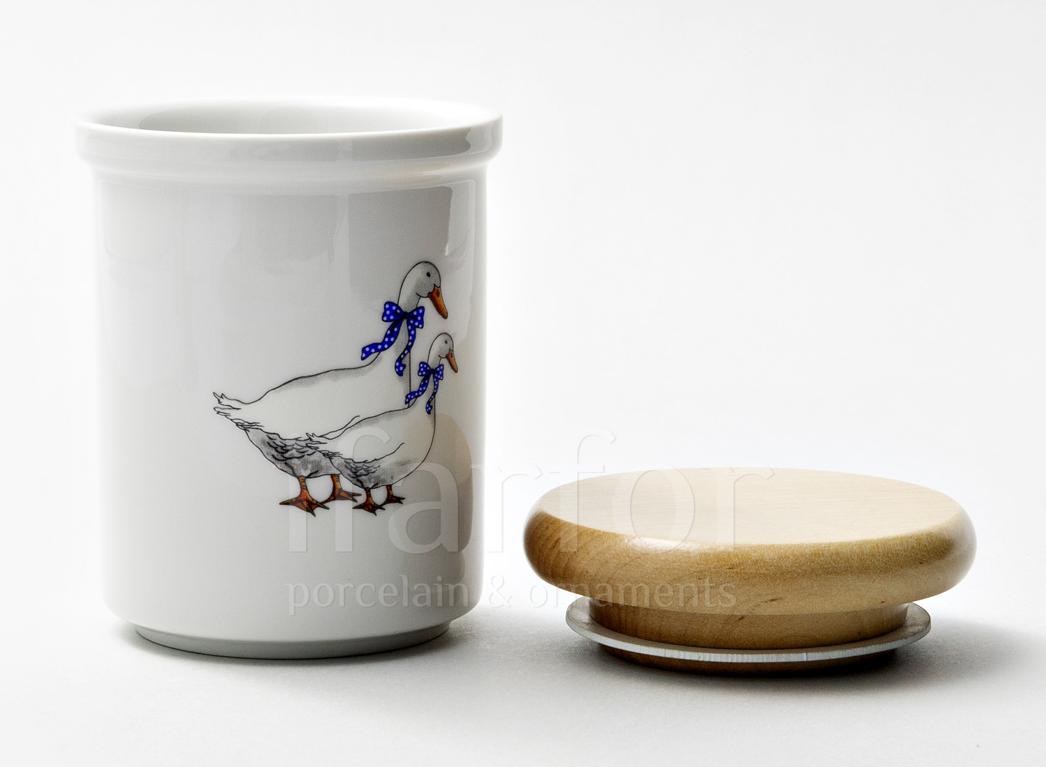 Банка с деревянной крышкой для сыпучих продуктов «Гуси»