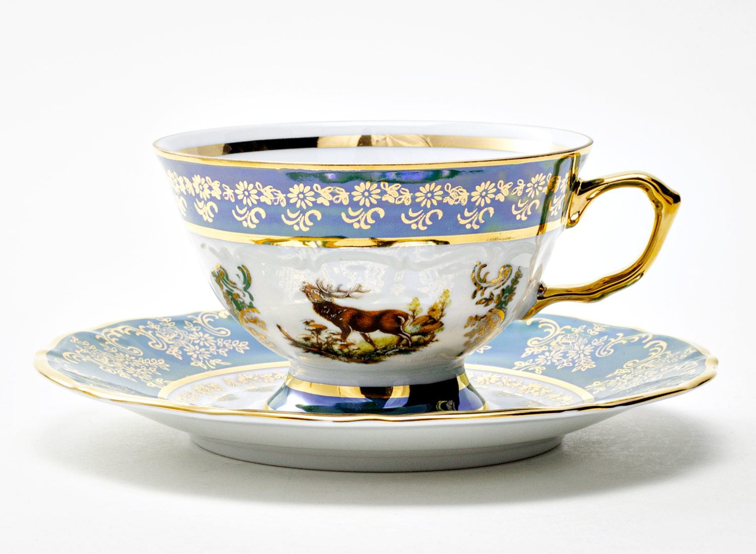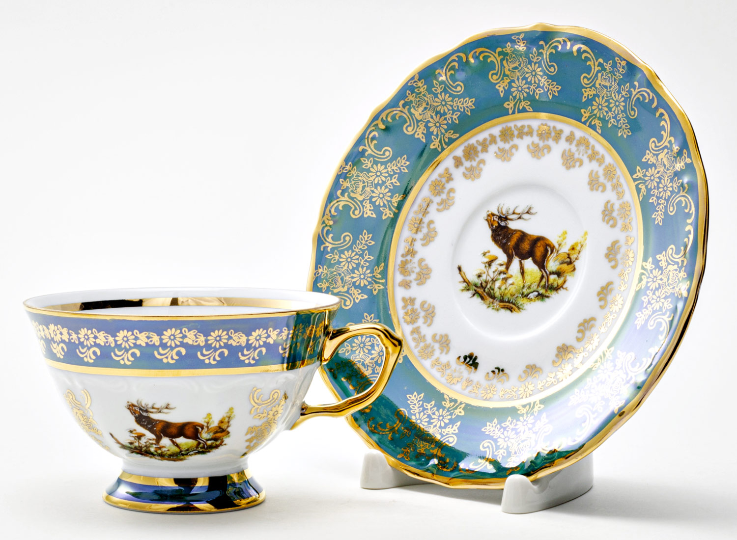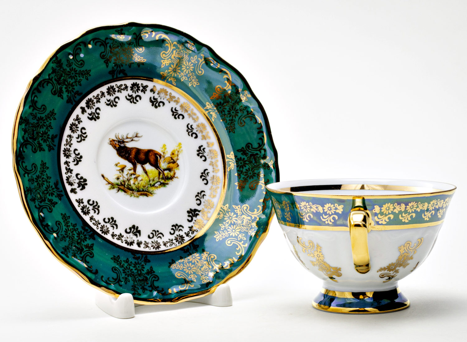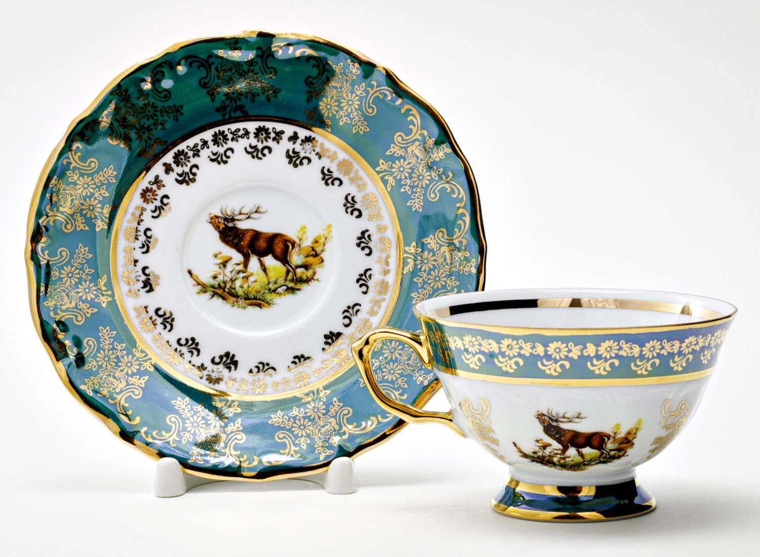 Чашка с блюдцем чайная «Охота зеленая. Олень 3»