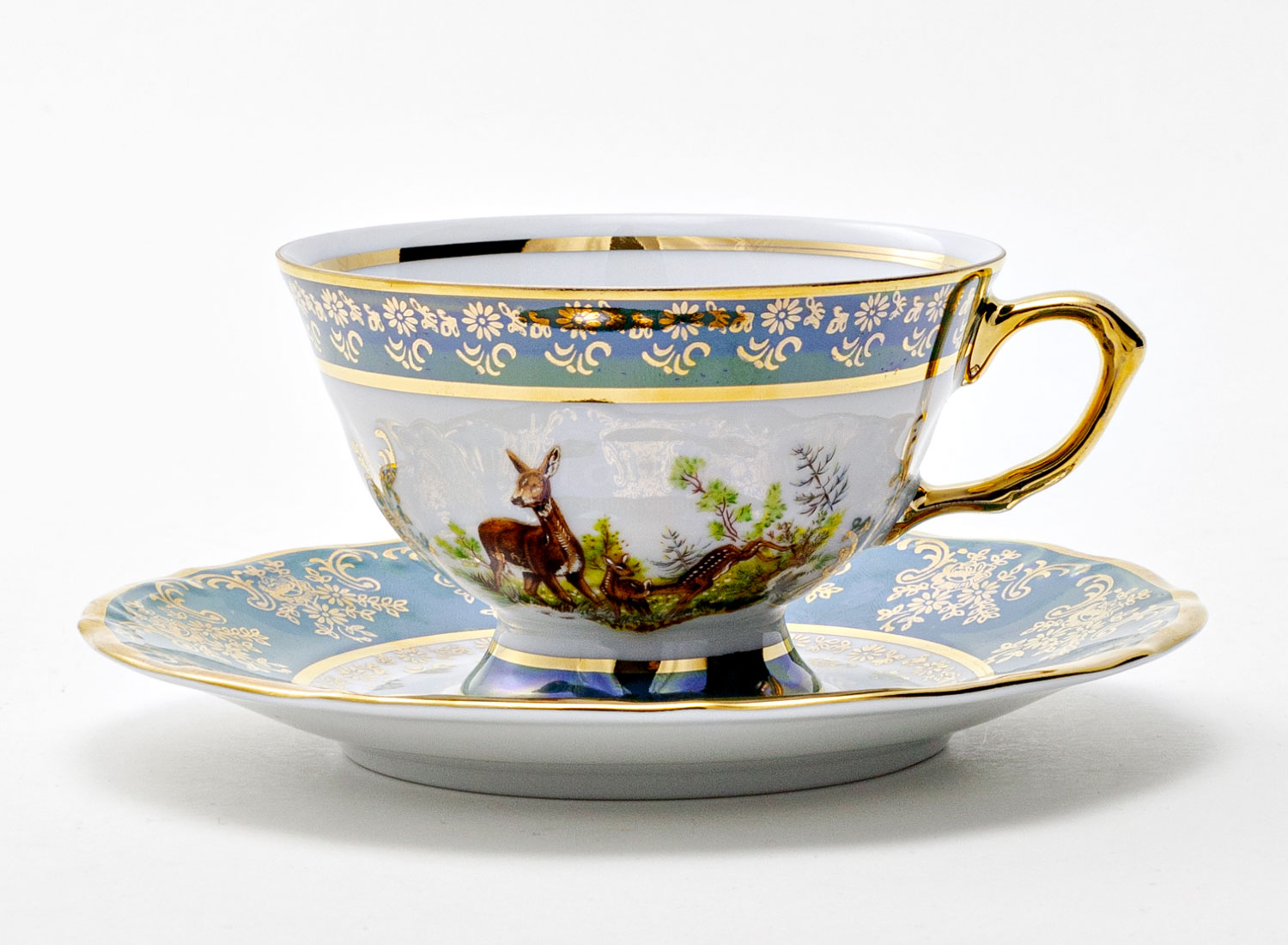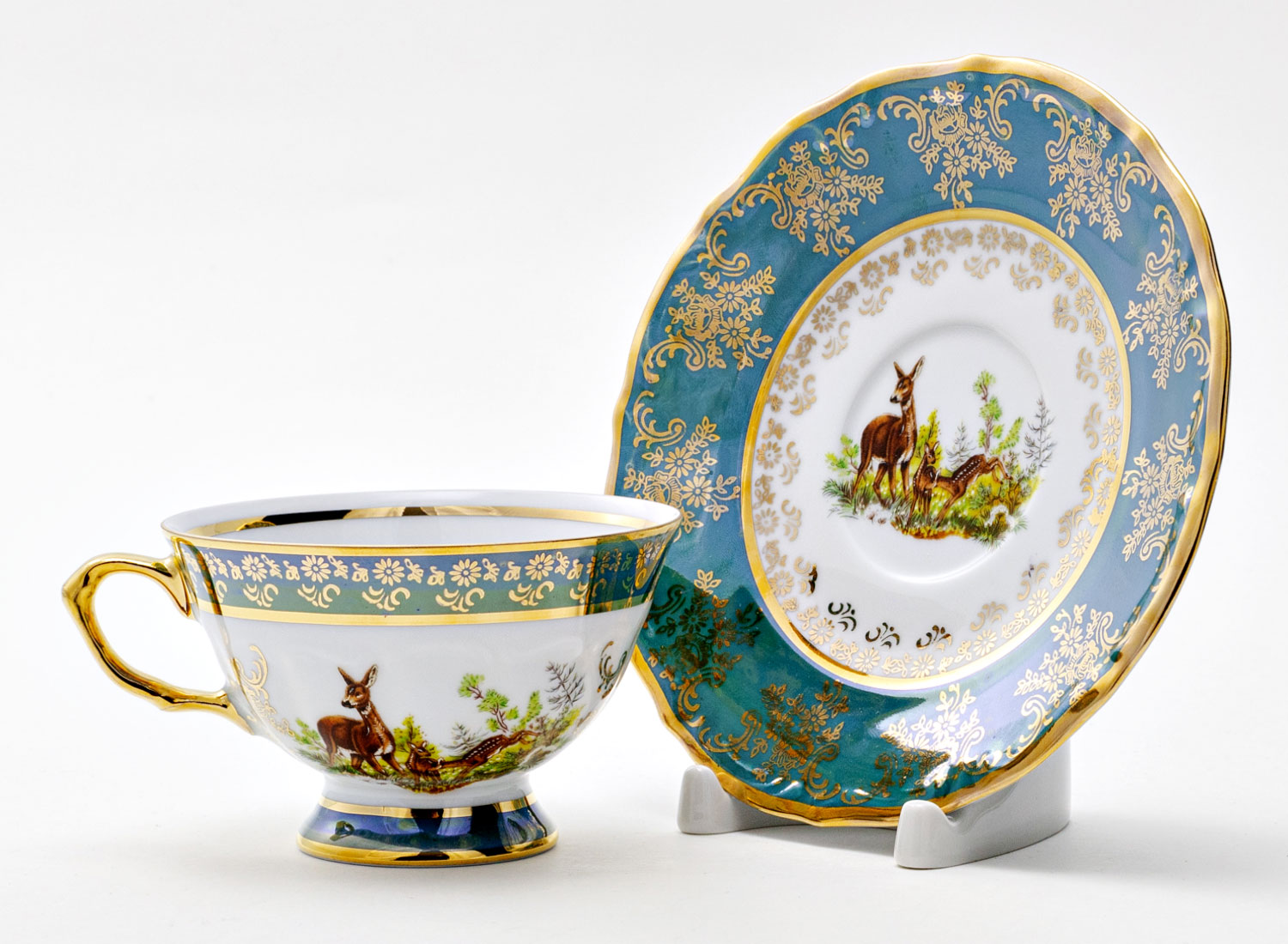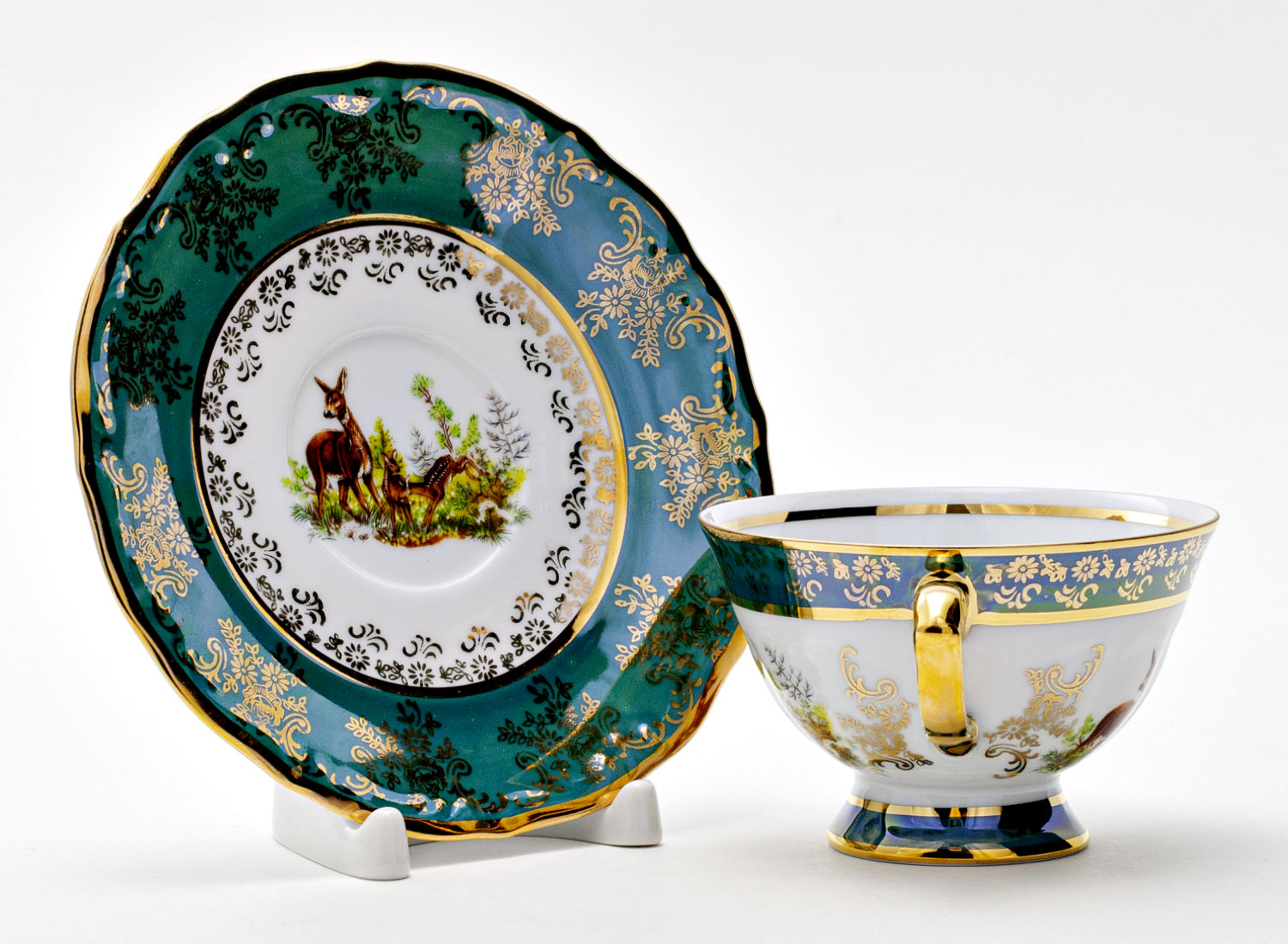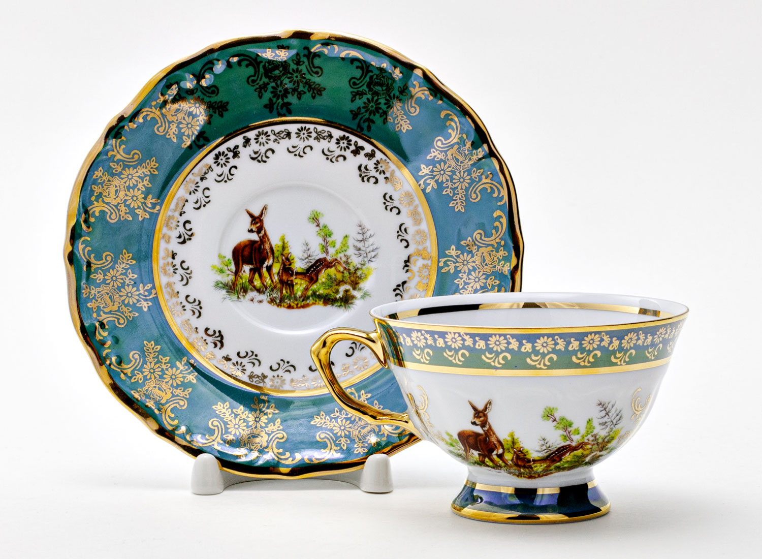 Чашка с блюдцем чайная «Охота зеленая. Косуля»