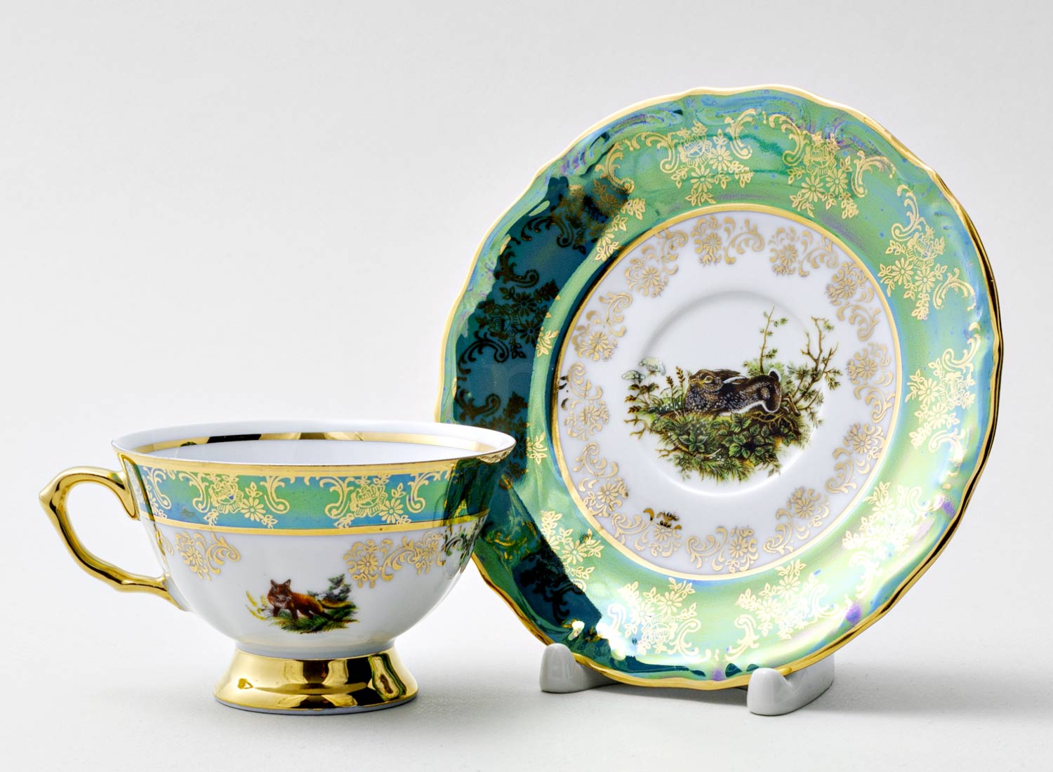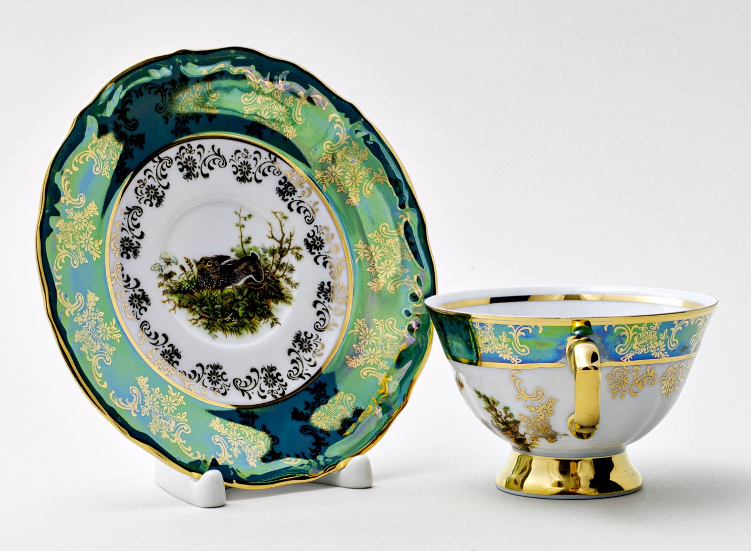 Чашка с блюдцем чайная «Охота Зеленая 4»