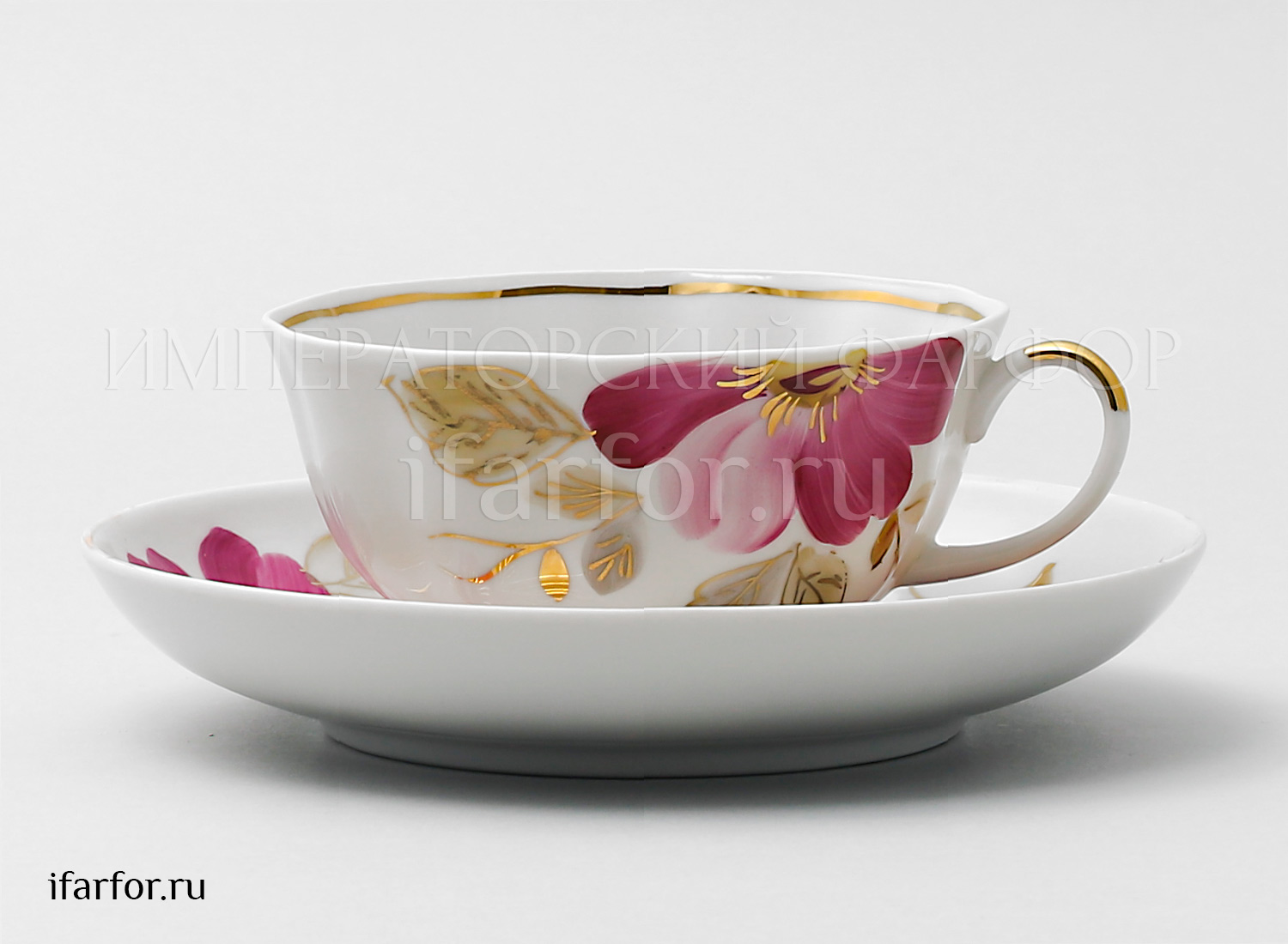 Чашка с блюдцем чайная «Пурпуровый цветок»