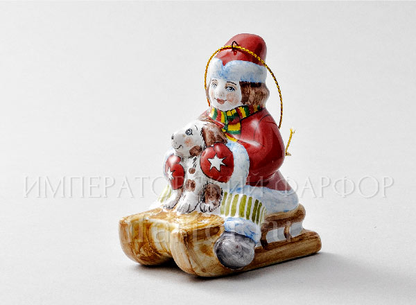 Елочная игрушка «Мальчик на санках с собачкой»