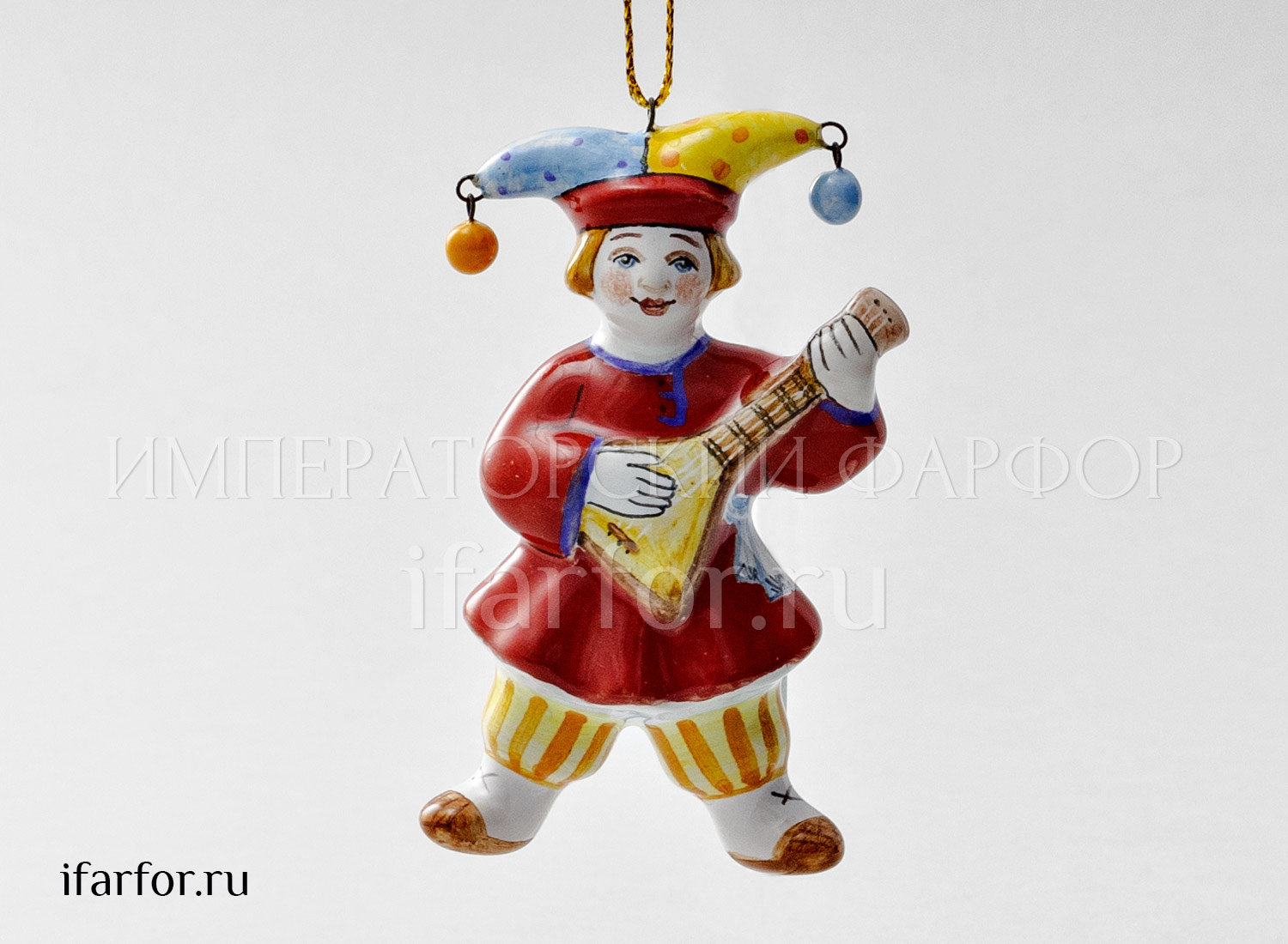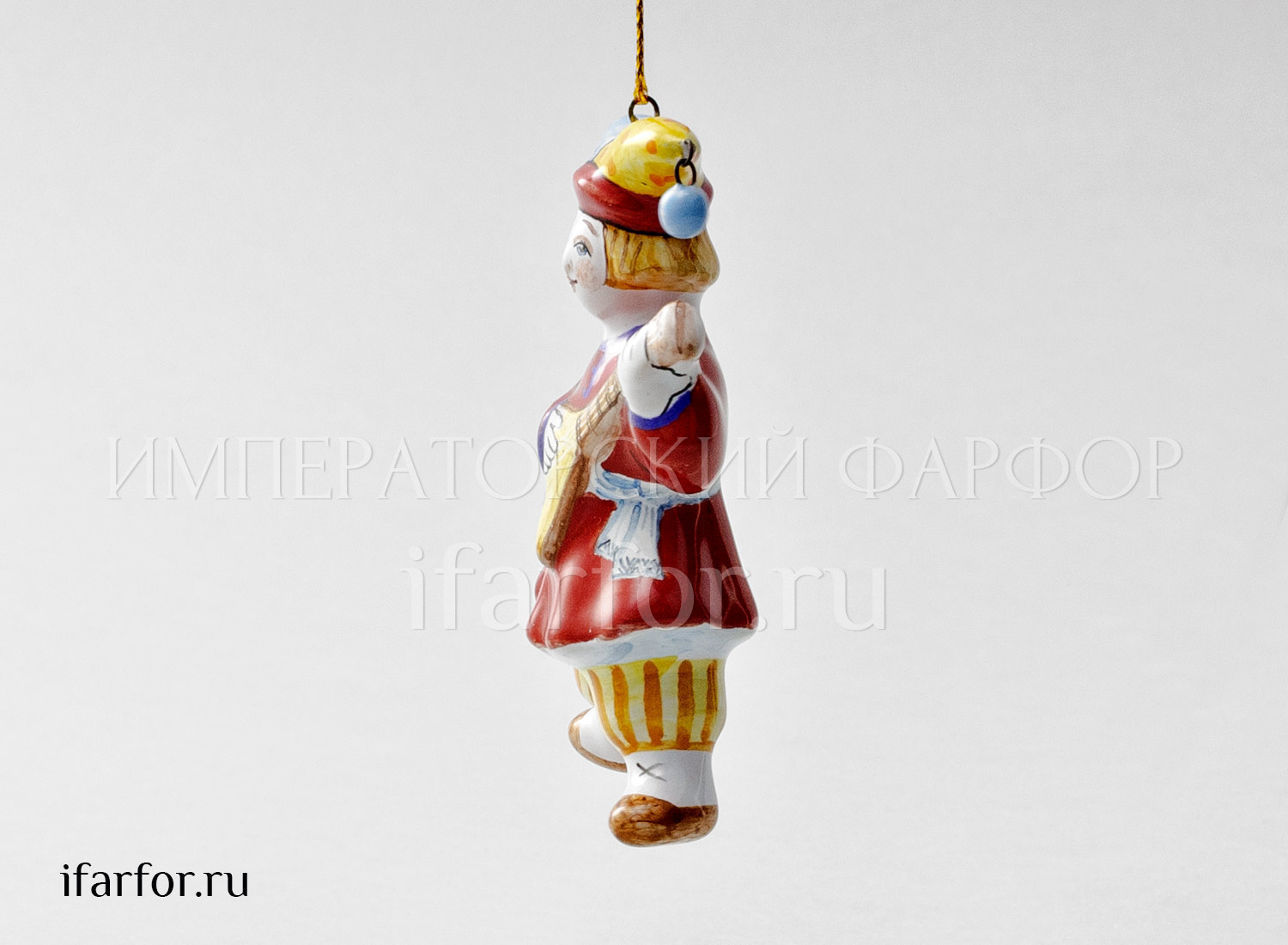 Елочная игрушка «Скоморох с балалайкой в красном кафтане»