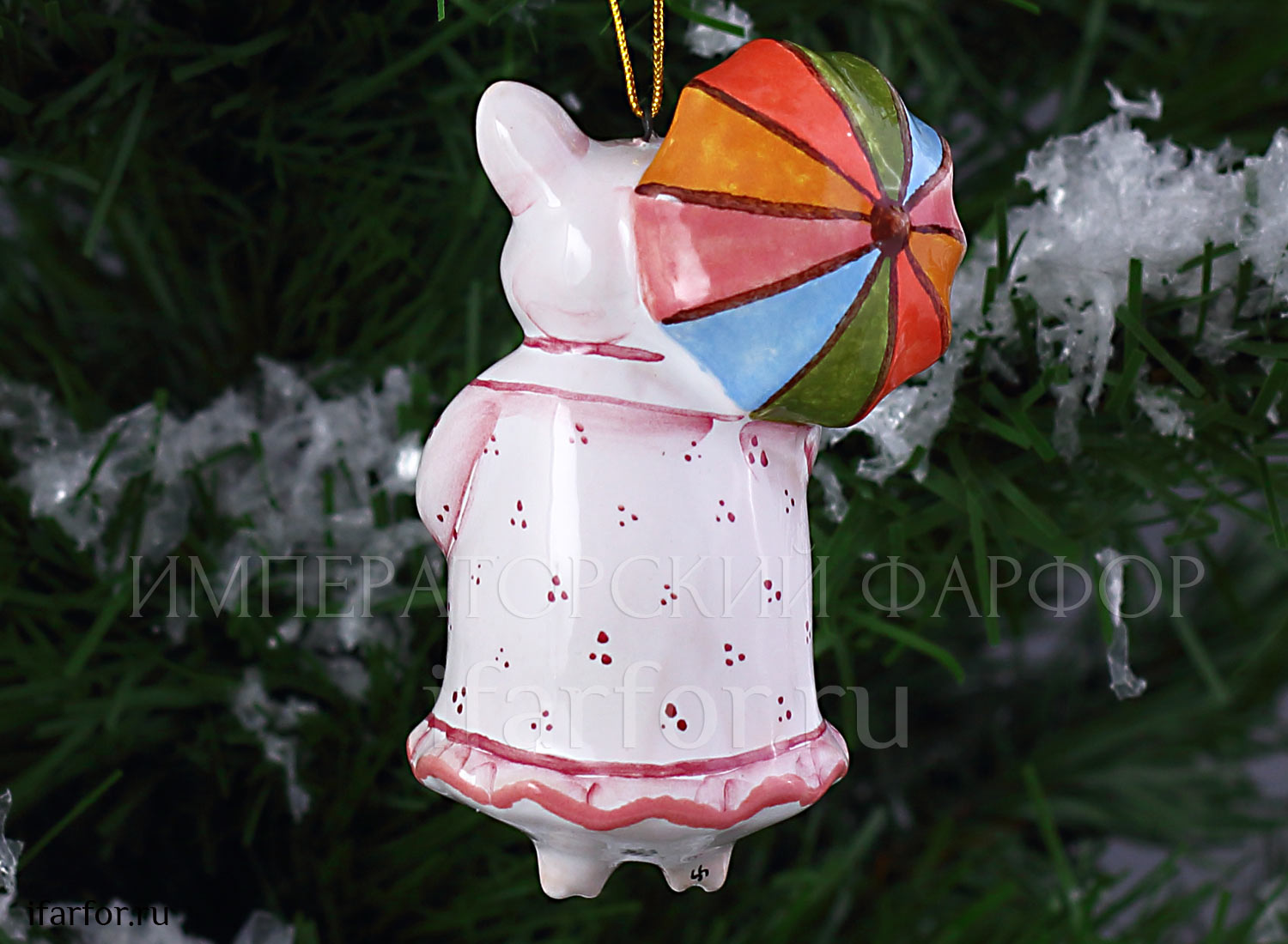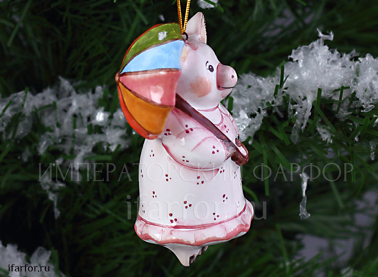 Елочная игрушка «Хрюша с зонтиком»