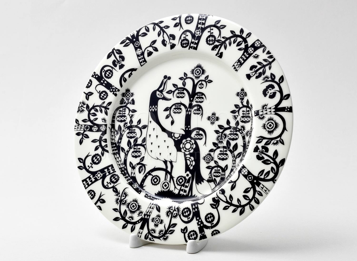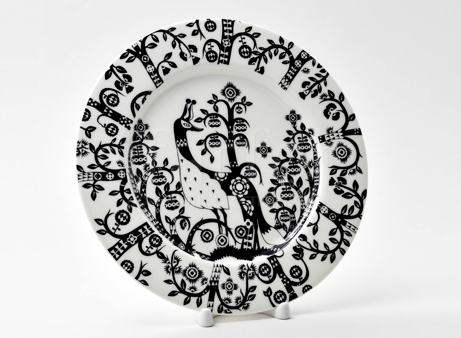 Taika по-фински — магия, волшебство. И меня зачаровала эта серия, где по белоснежному фарфору вьются сказочные растения и проявляются причудливые звери и птицы. В чёрно-белом варианте рисунки особенно хороши, и я собрала себе комплект из кружки, тарелки, блюдца и двух чаш поменьше и побольше. Очень приятно держать в руках, на ощупь супергладко, слегка тяжеловато, фарфор достаточно толстый, качественный. Производитель разрешает ставить эту посуду в микроволновку, в холодильник, в посудомоечную машину.