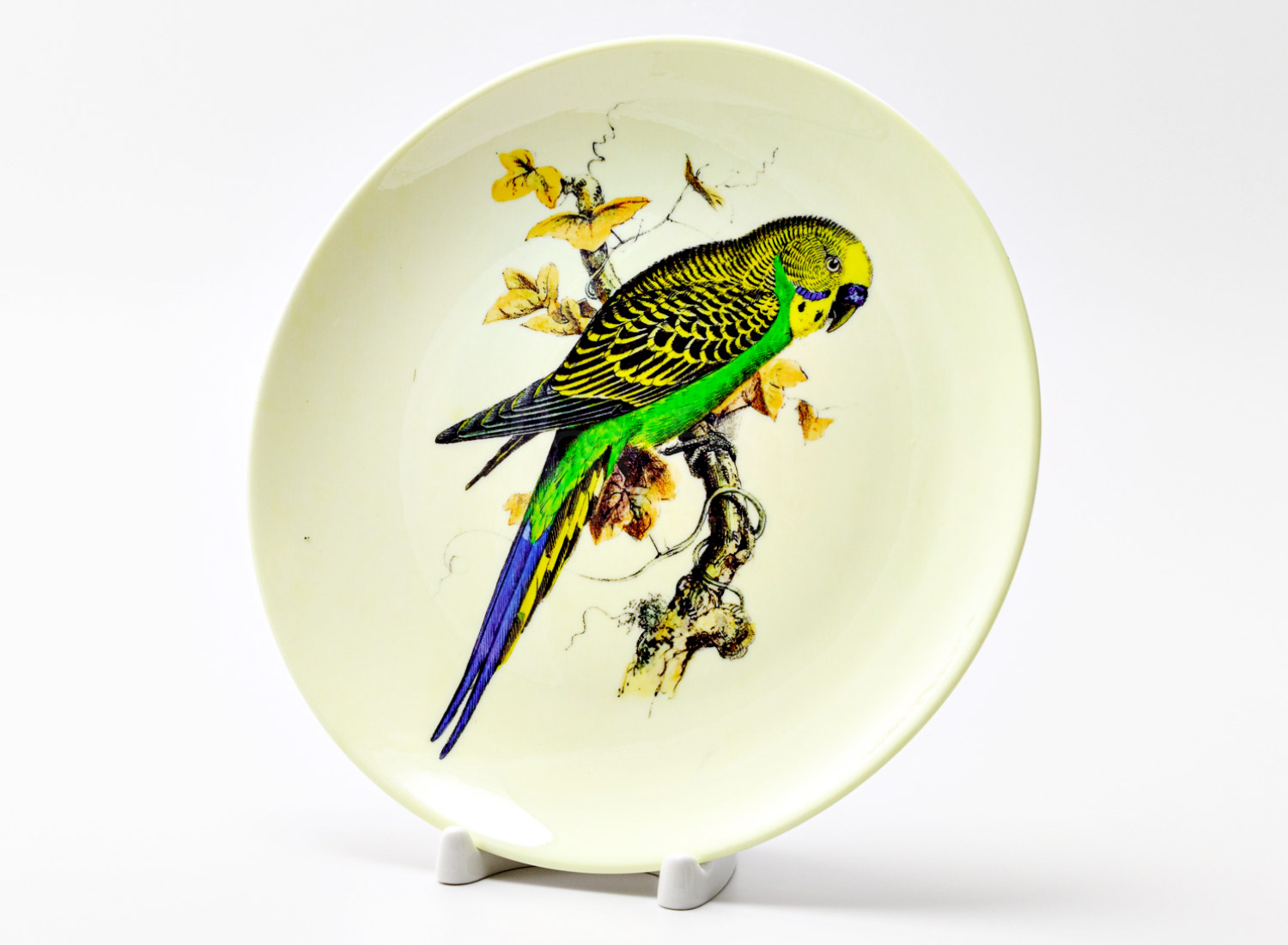 Декоративная тарелка «Волнистый попугайчик с синим хвостом»