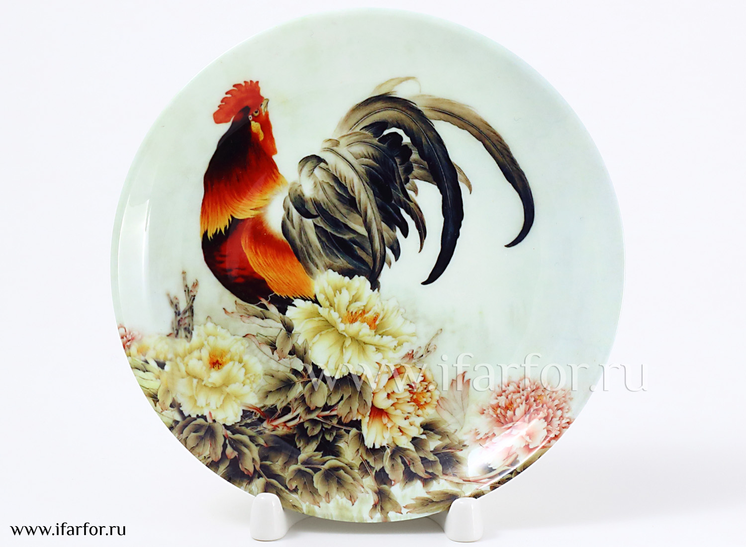 Декоративная тарелка «Петушок и пионы»