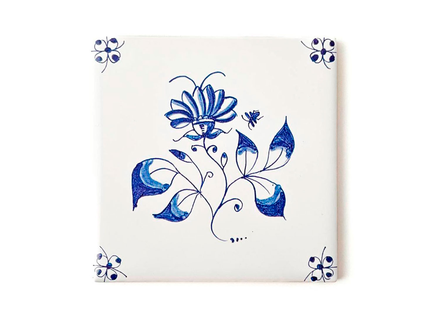 Изразец «Голландский. Цветок с пчелкой 3»