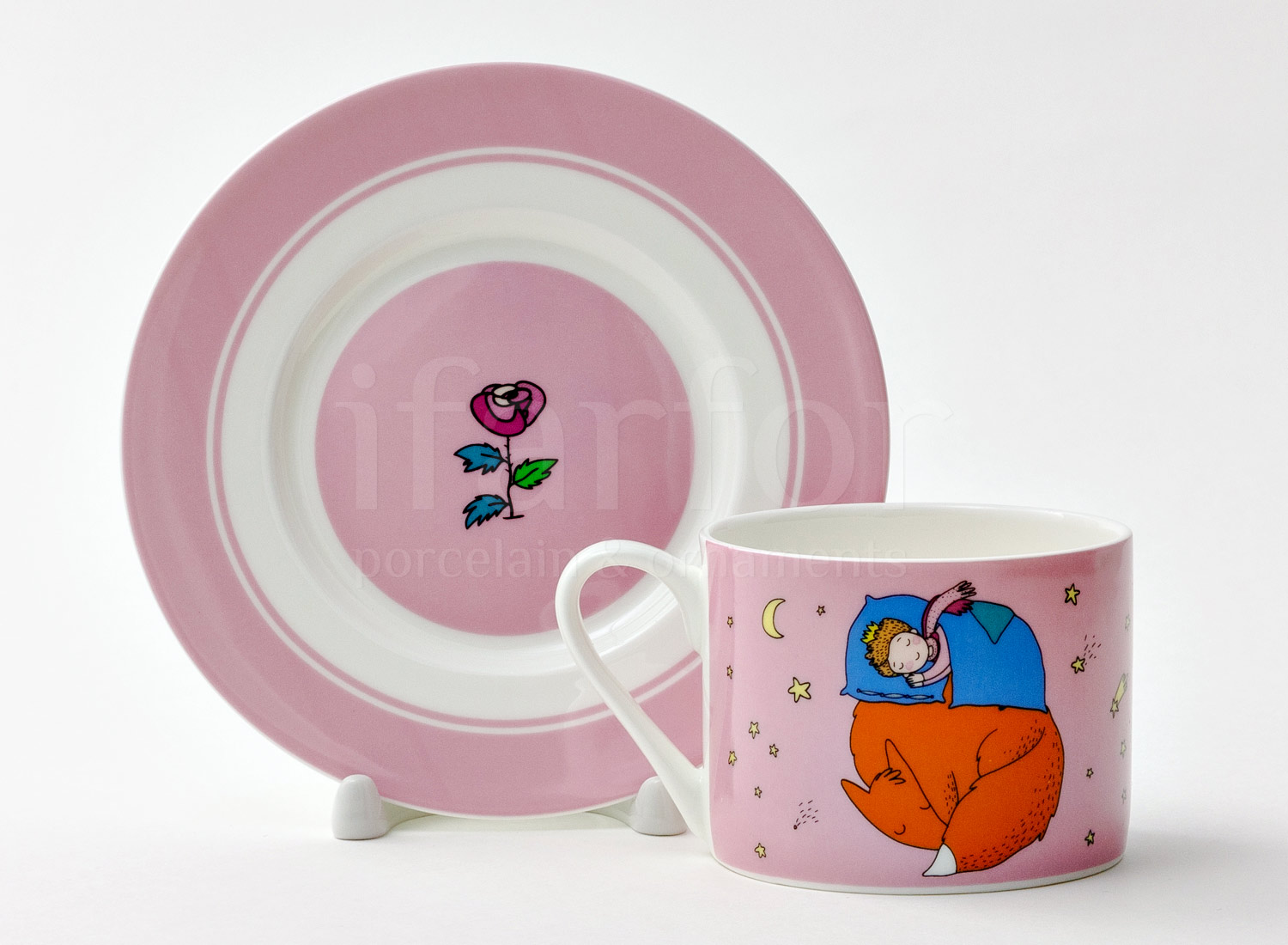 Чашка с блюдцем чайная «Маленький принц. Клубничный»