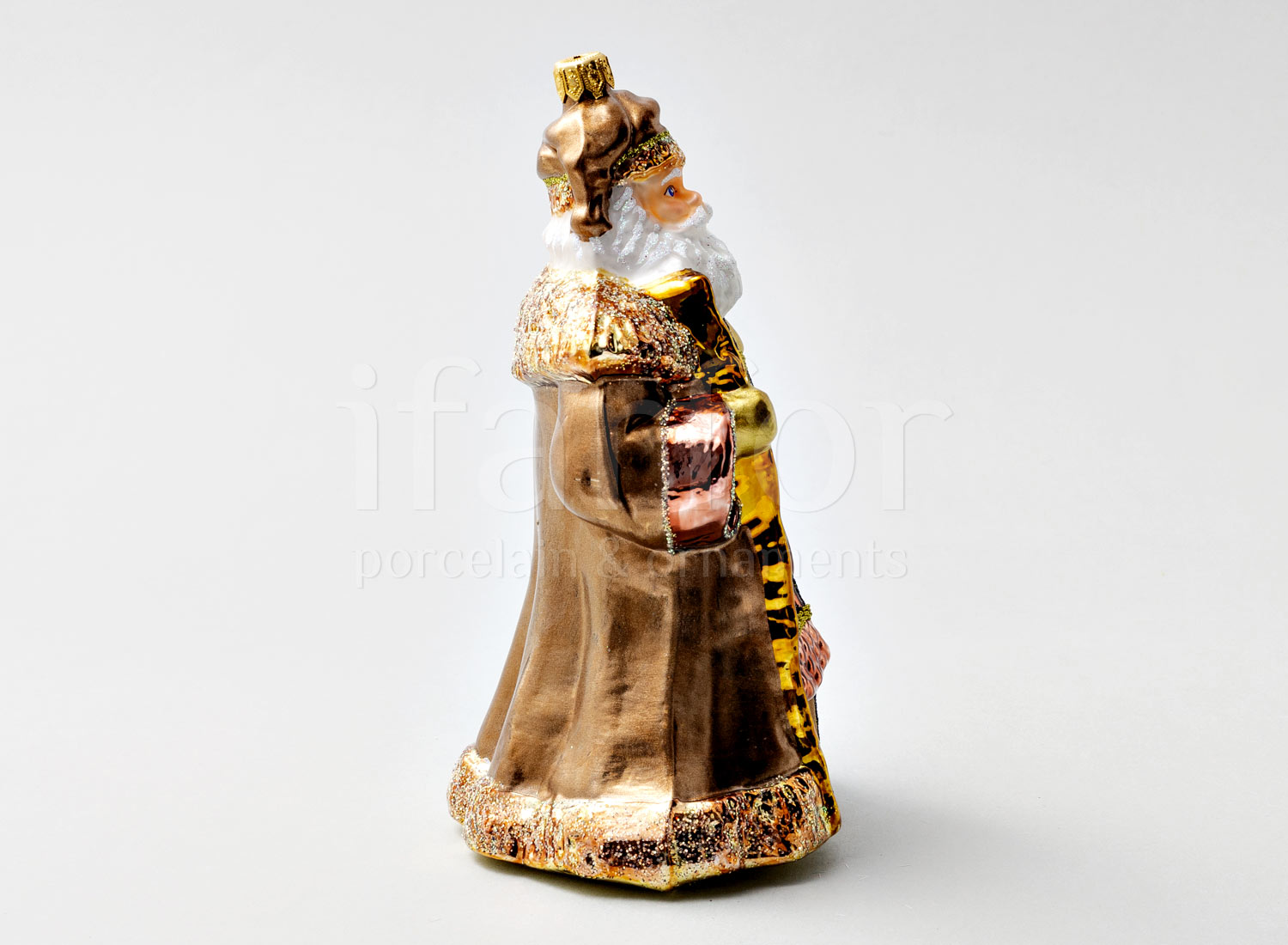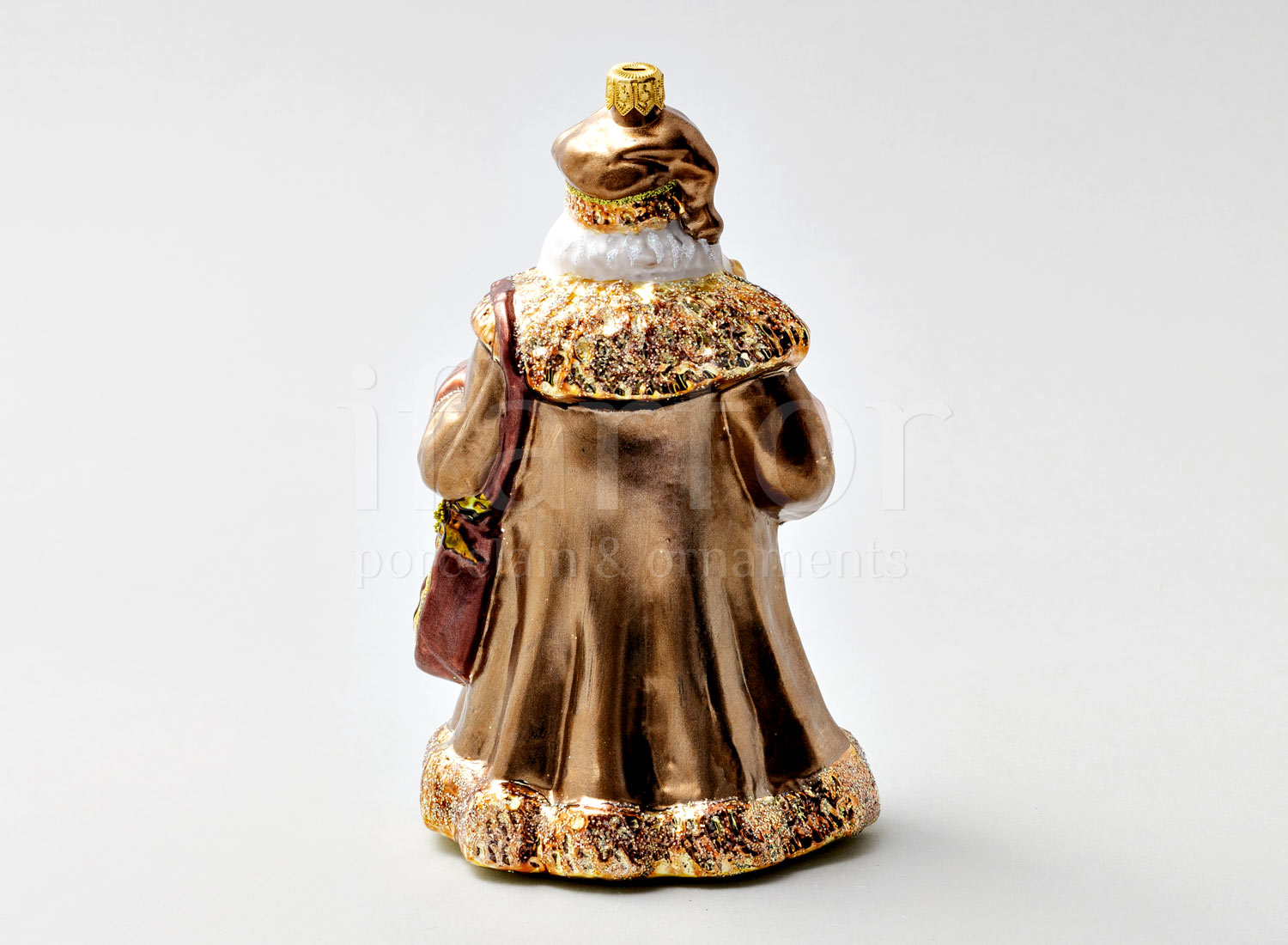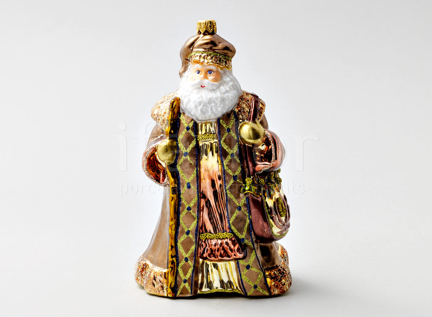 Елочная игрушка в подарочной коробке «Дед Мороз с сумкой в шубе кофейного цвета»
