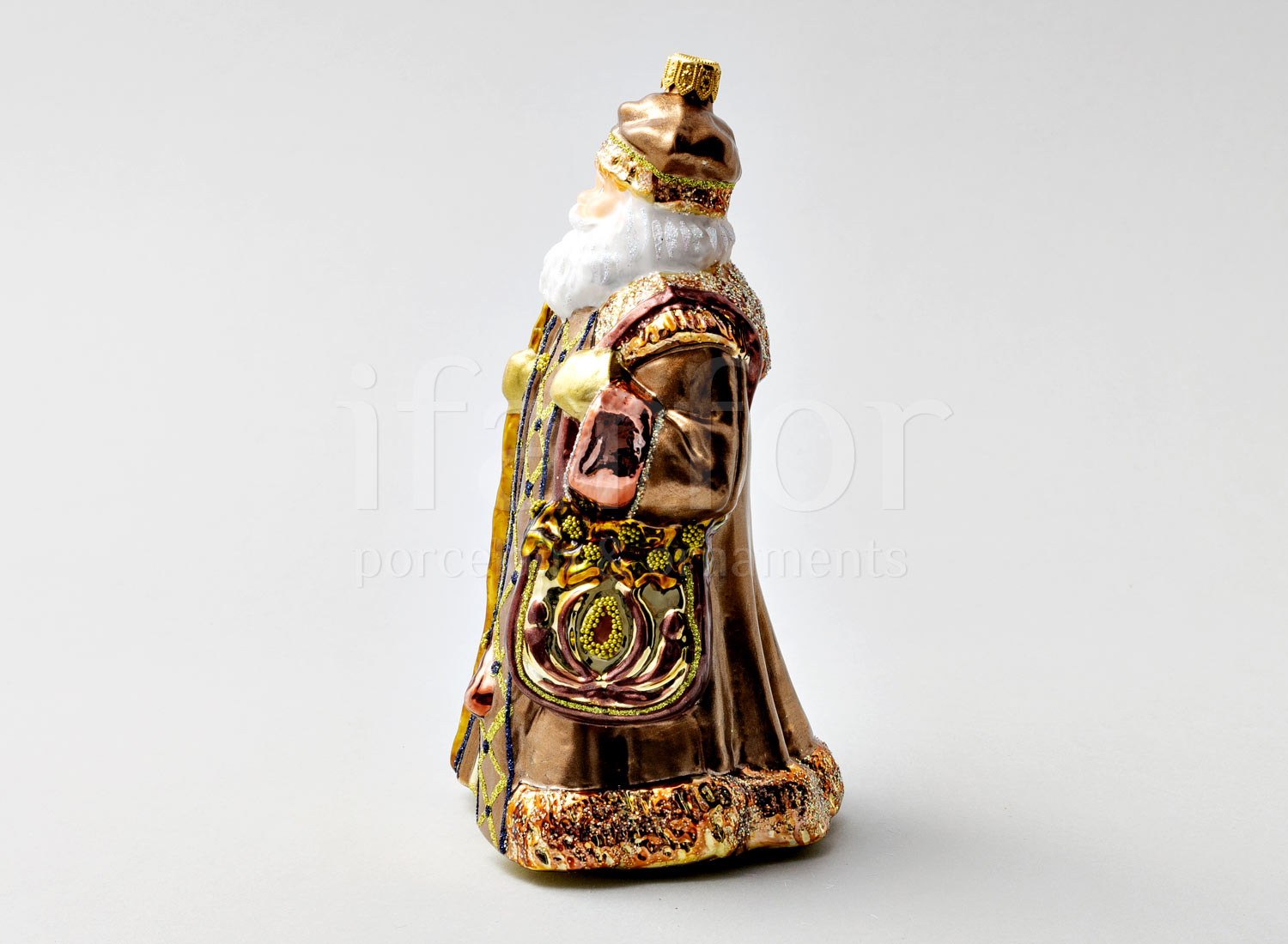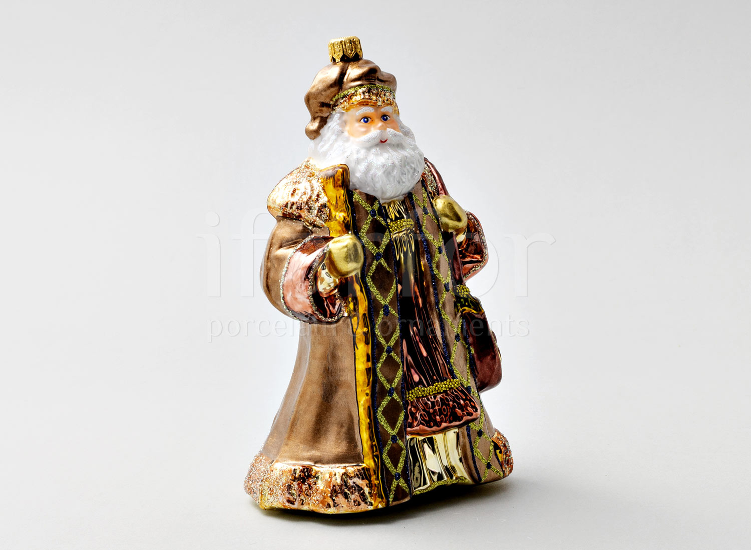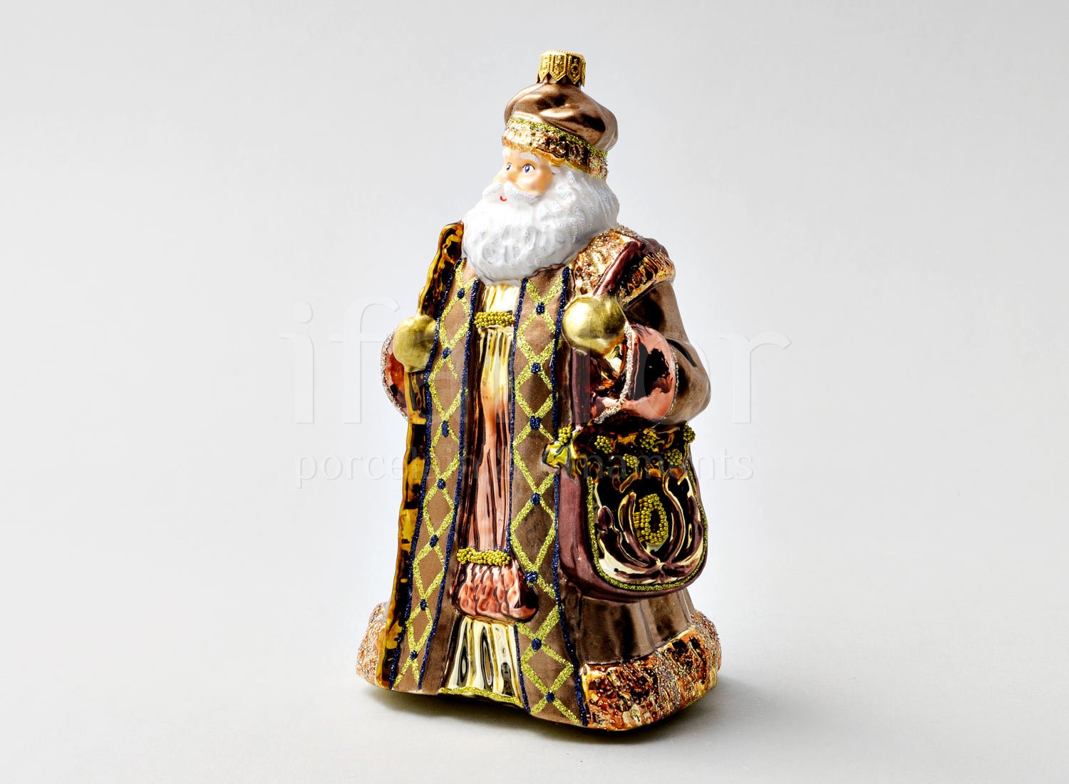 Елочная игрушка в подарочной коробке «Дед Мороз с сумкой в шубе кофейного цвета»