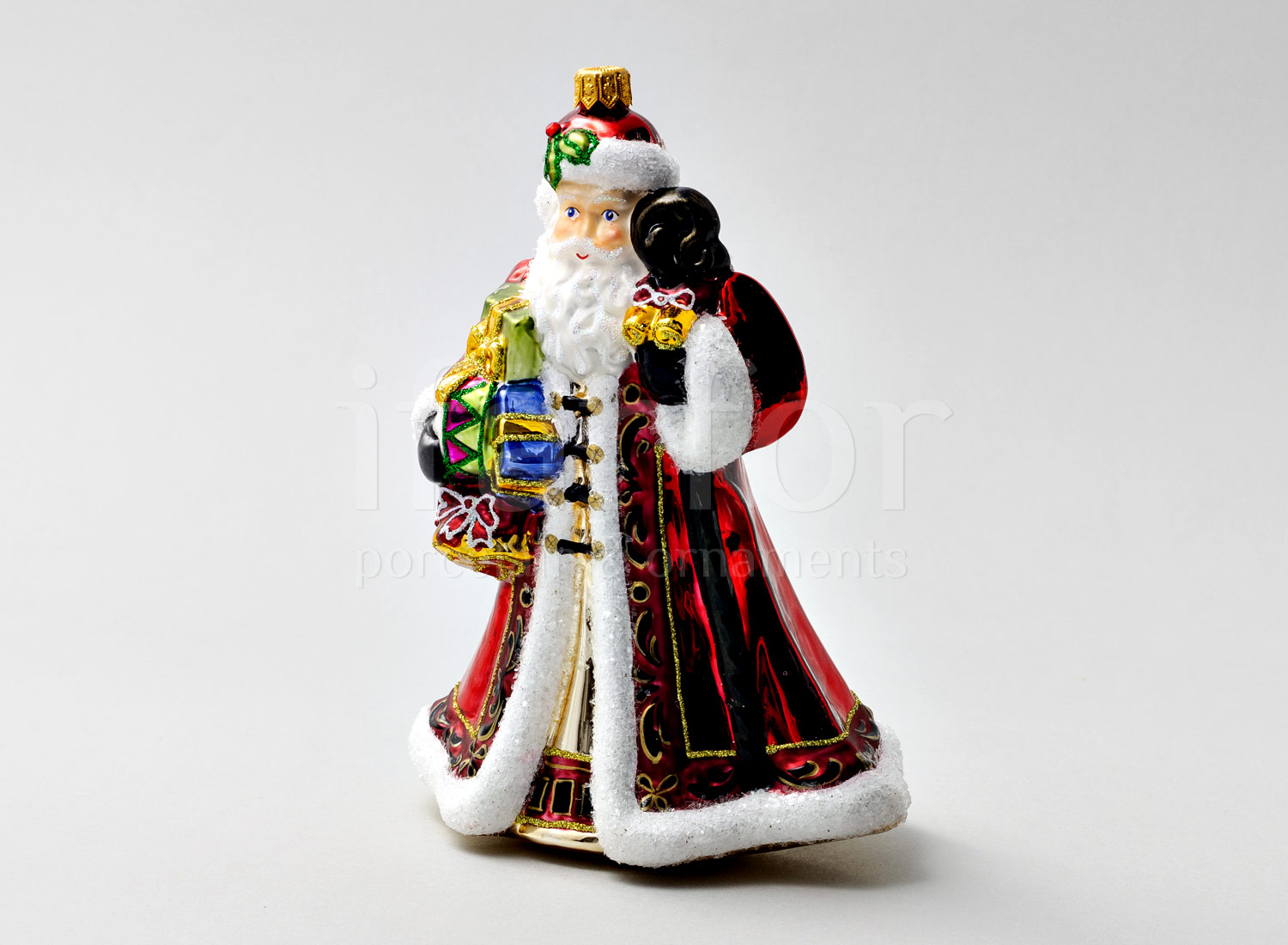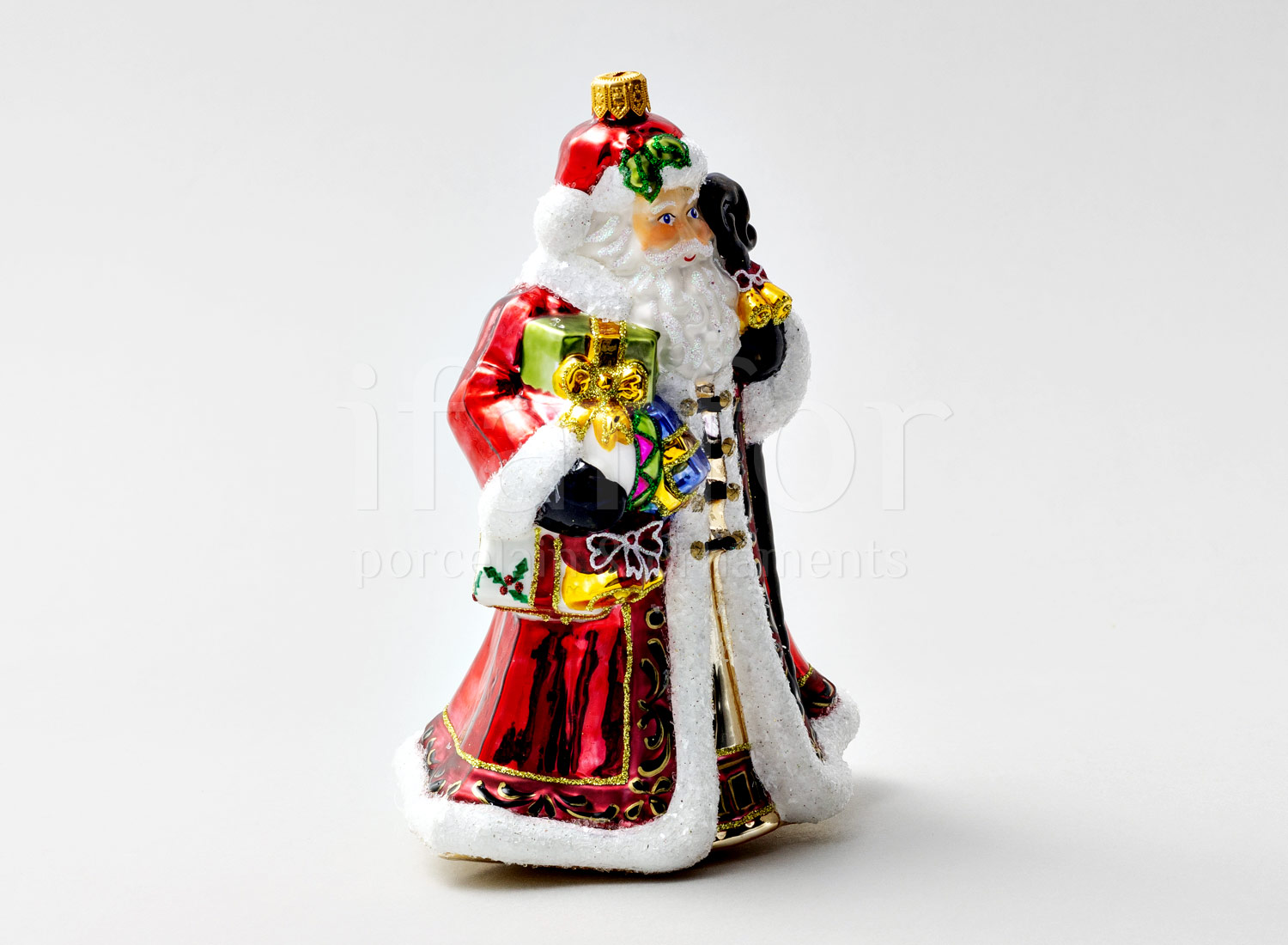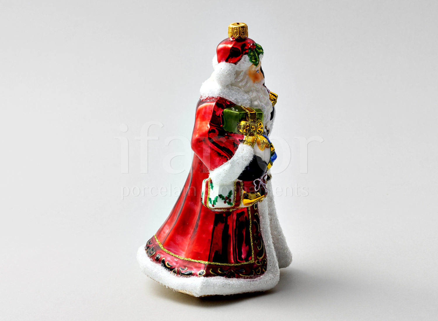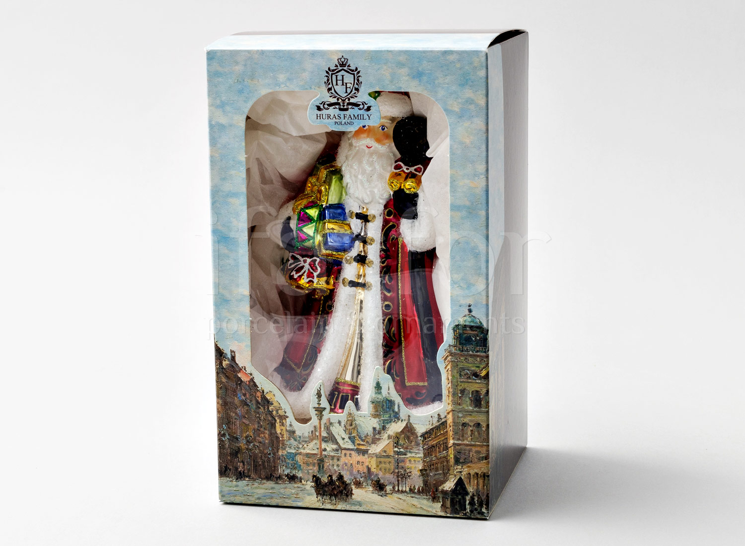 Елочная игрушка в подарочной коробке «Дед Мороз с барабаном и игрушками»