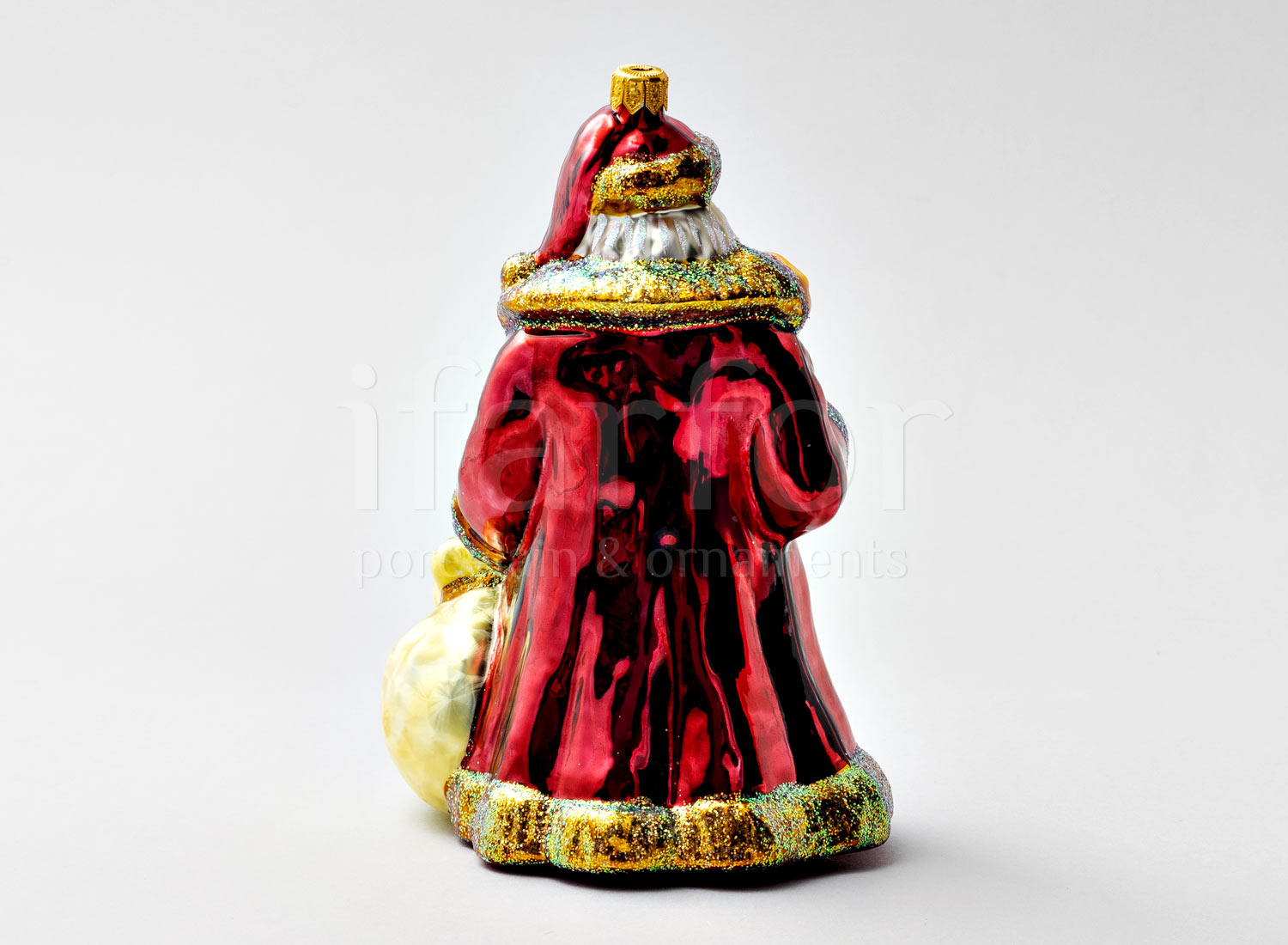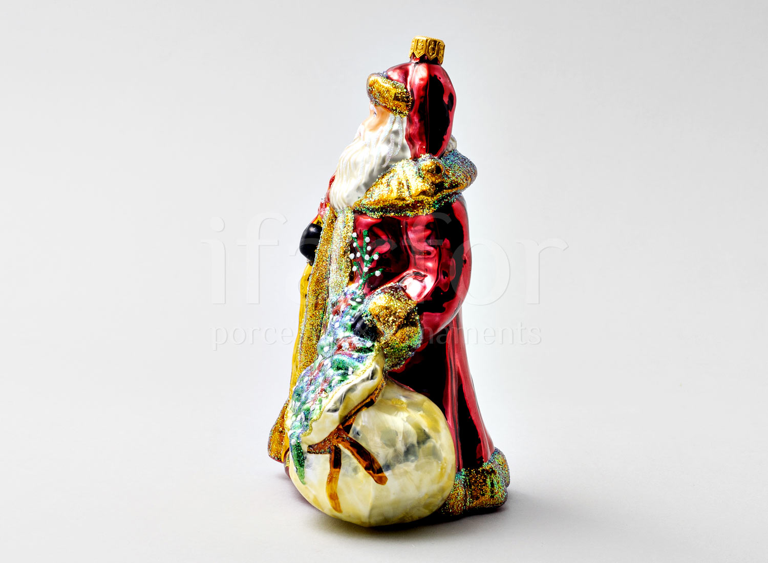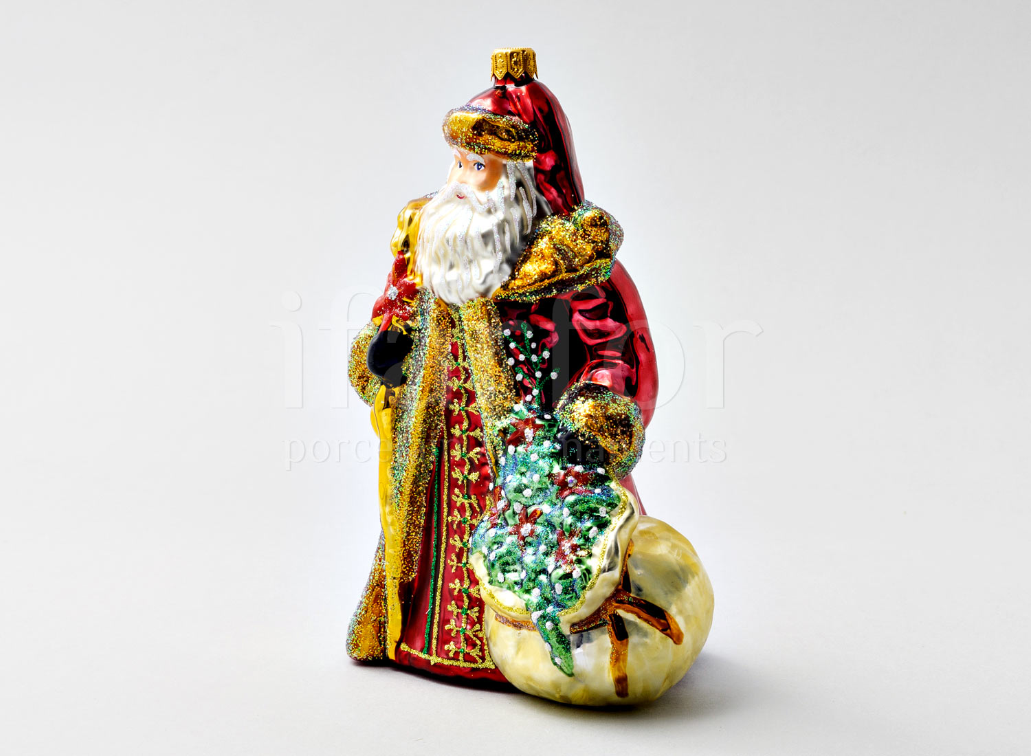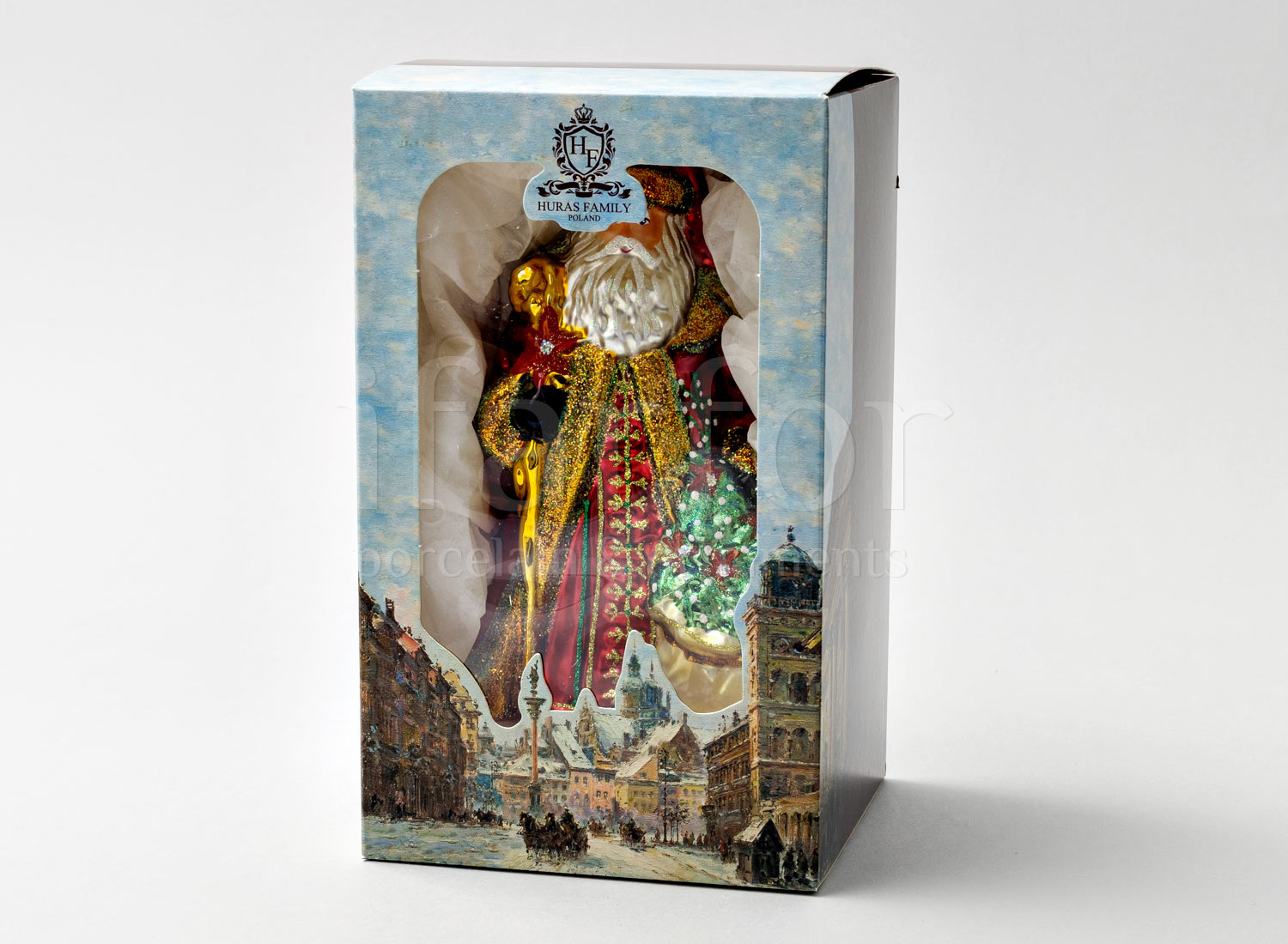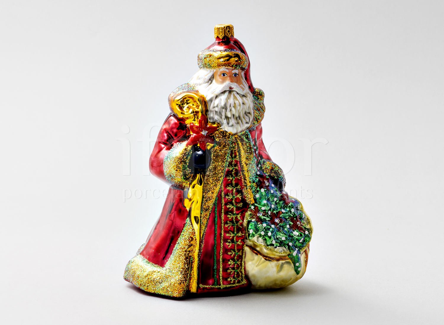 Елочная игрушка в подарочной коробке 210х130мм «Дед Мороз с золотым посохом и венком»
