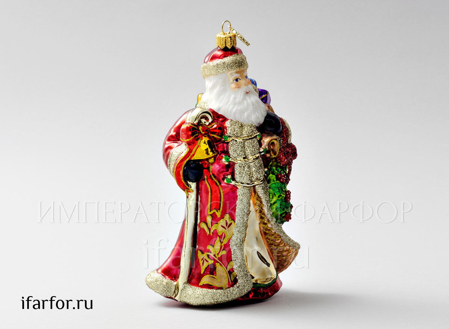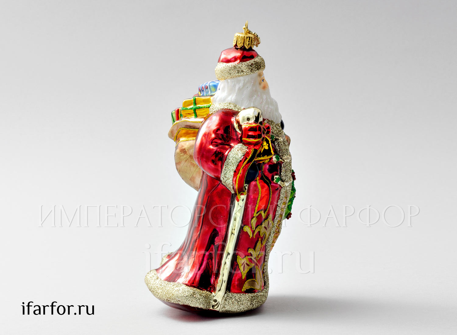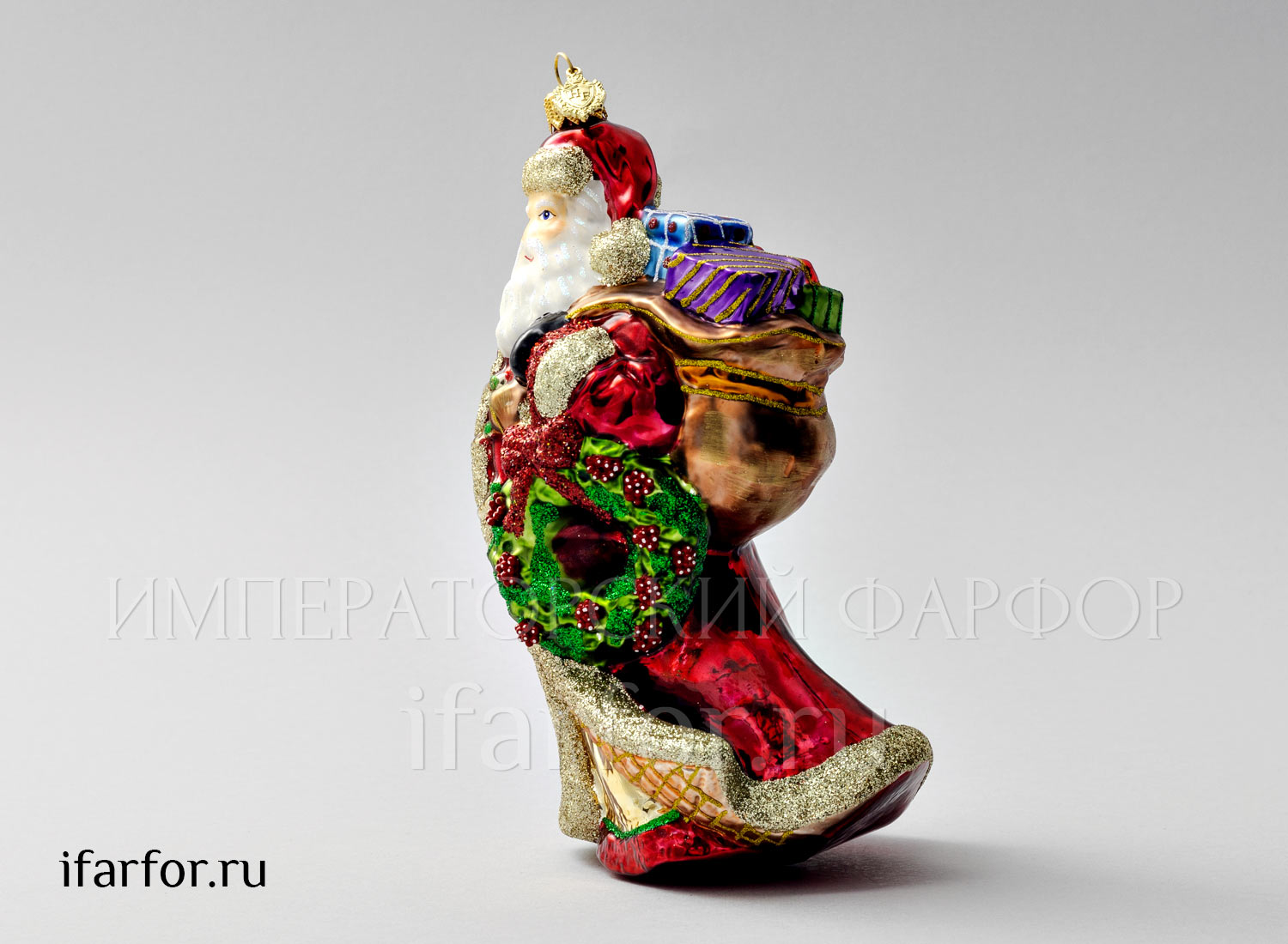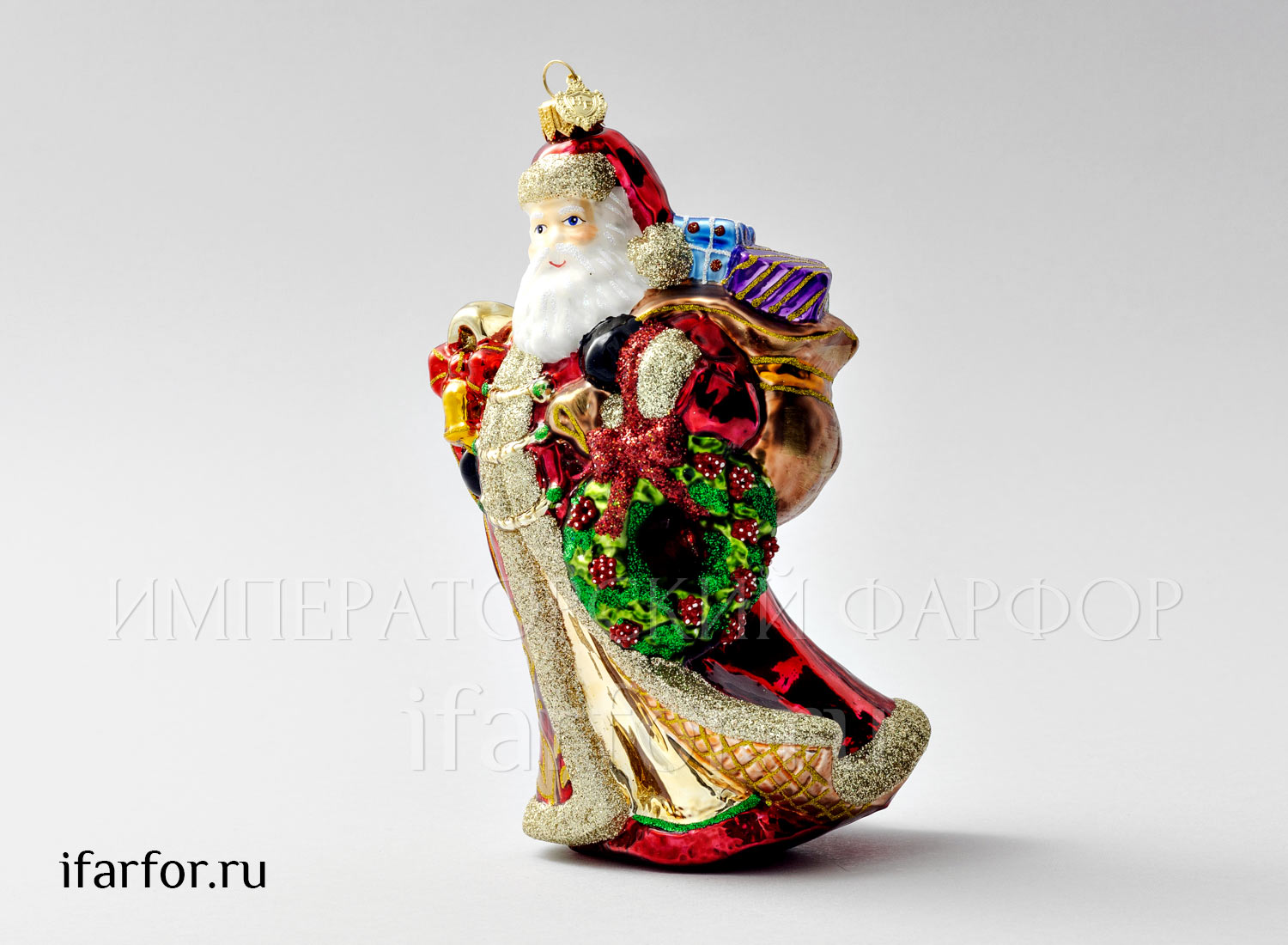 Елочная игрушка в подарочной коробке «Дед Мороз с венком и посохом»