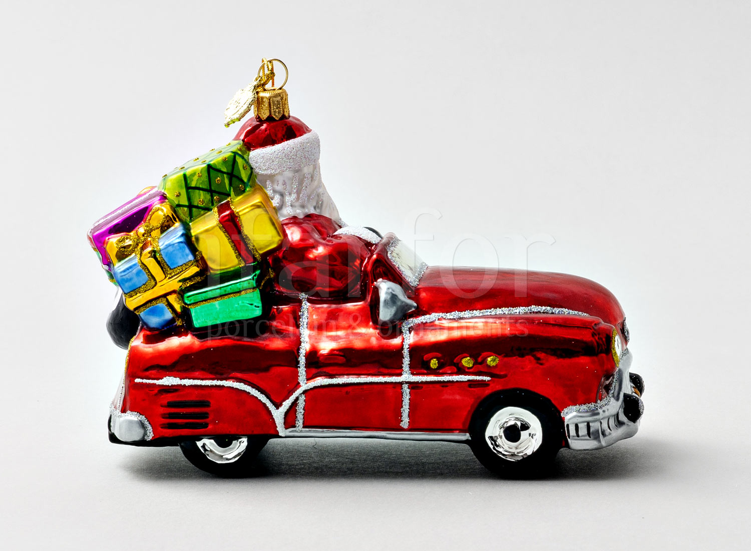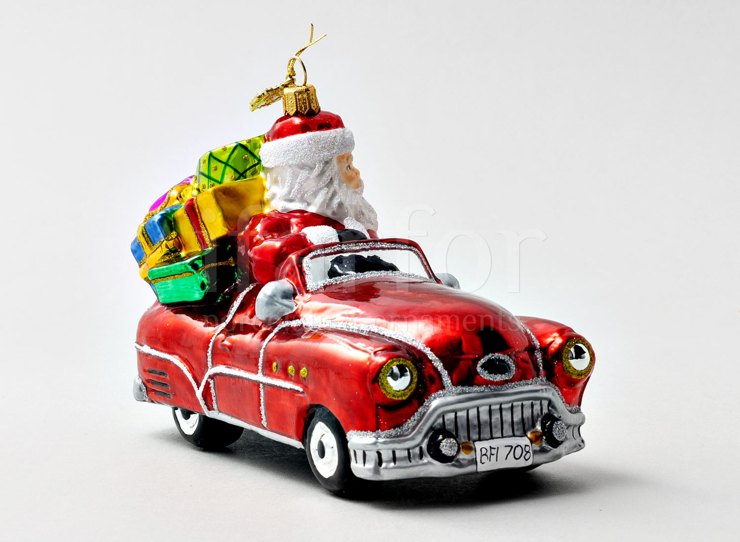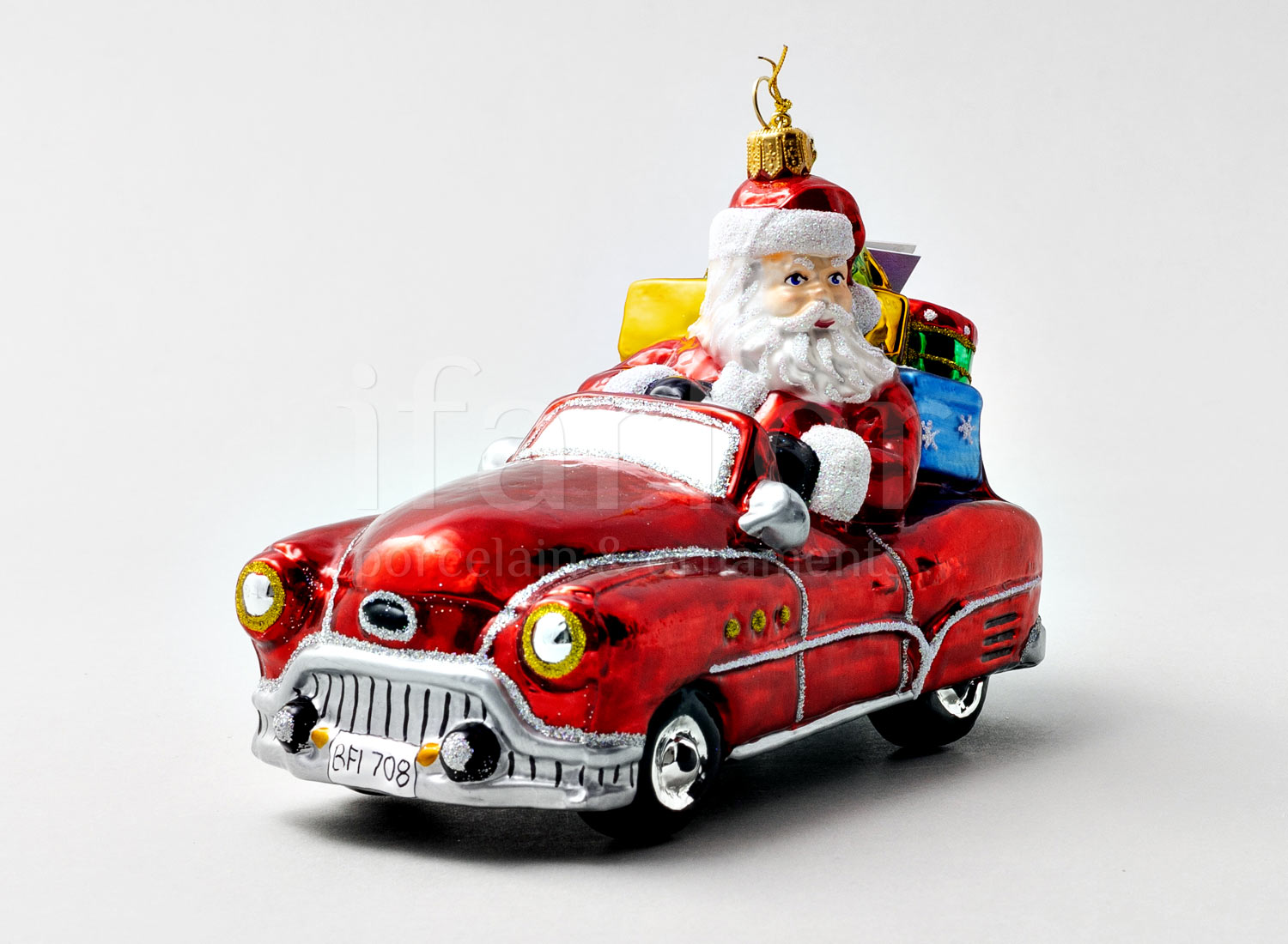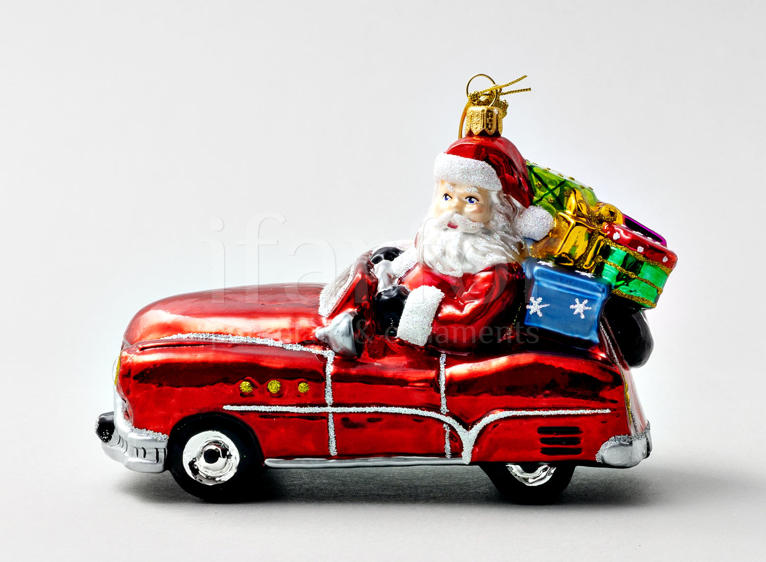 Елочная игрушка в подарочной коробке 210х130мм «Дед Мороз в автомобиле»