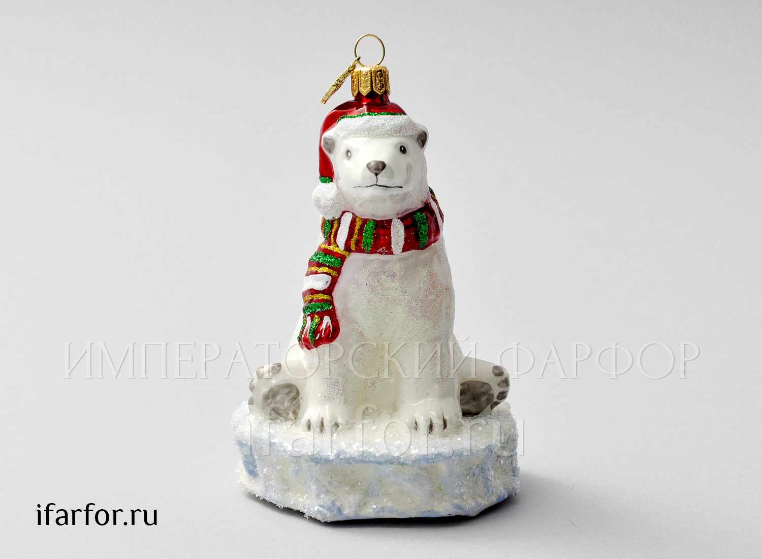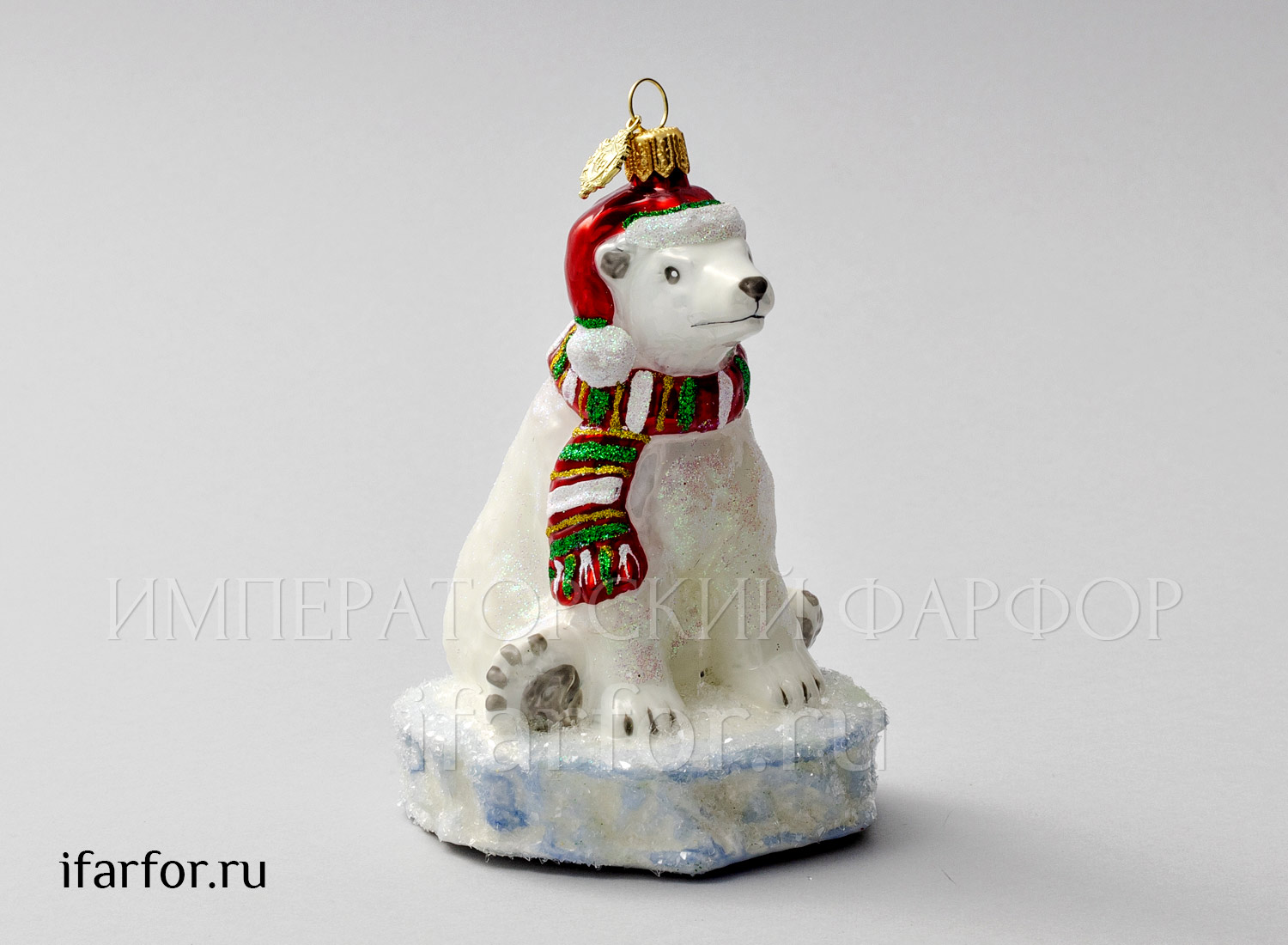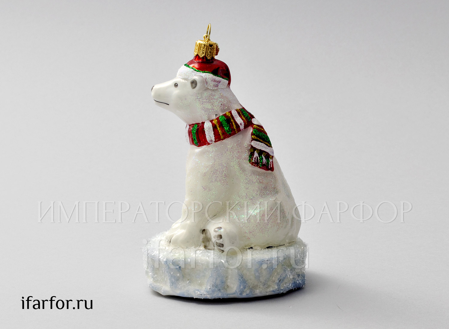 Елочная игрушка в подарочной коробке 210х130мм «Белый медведь на льду»