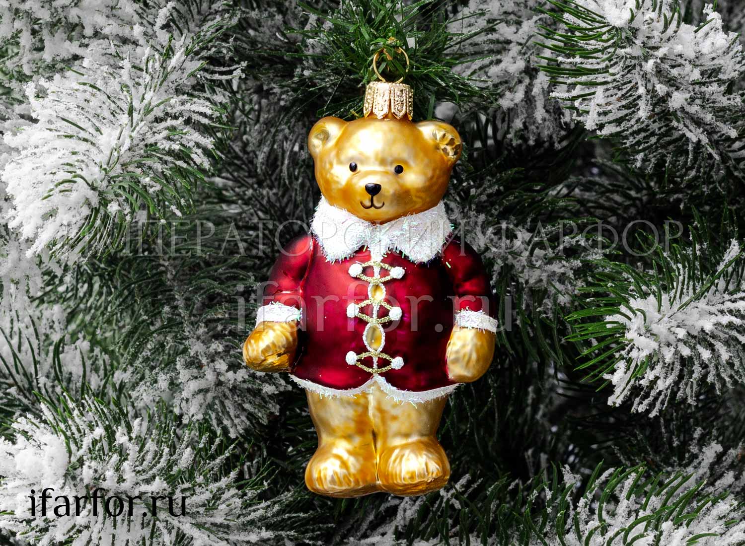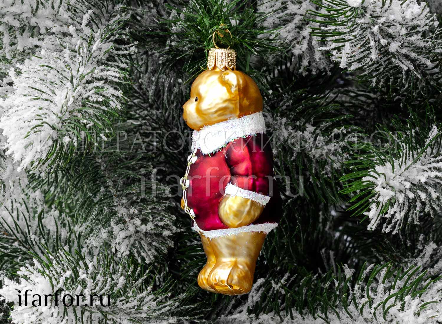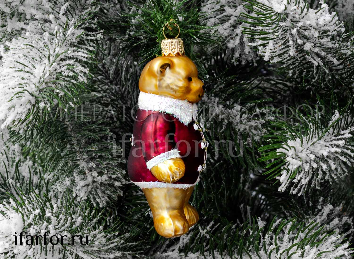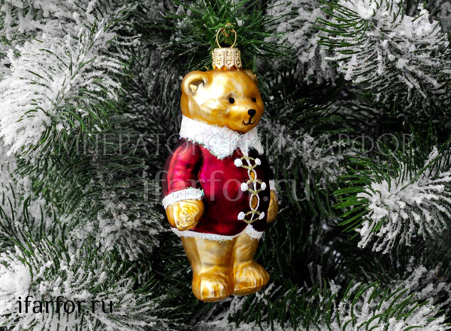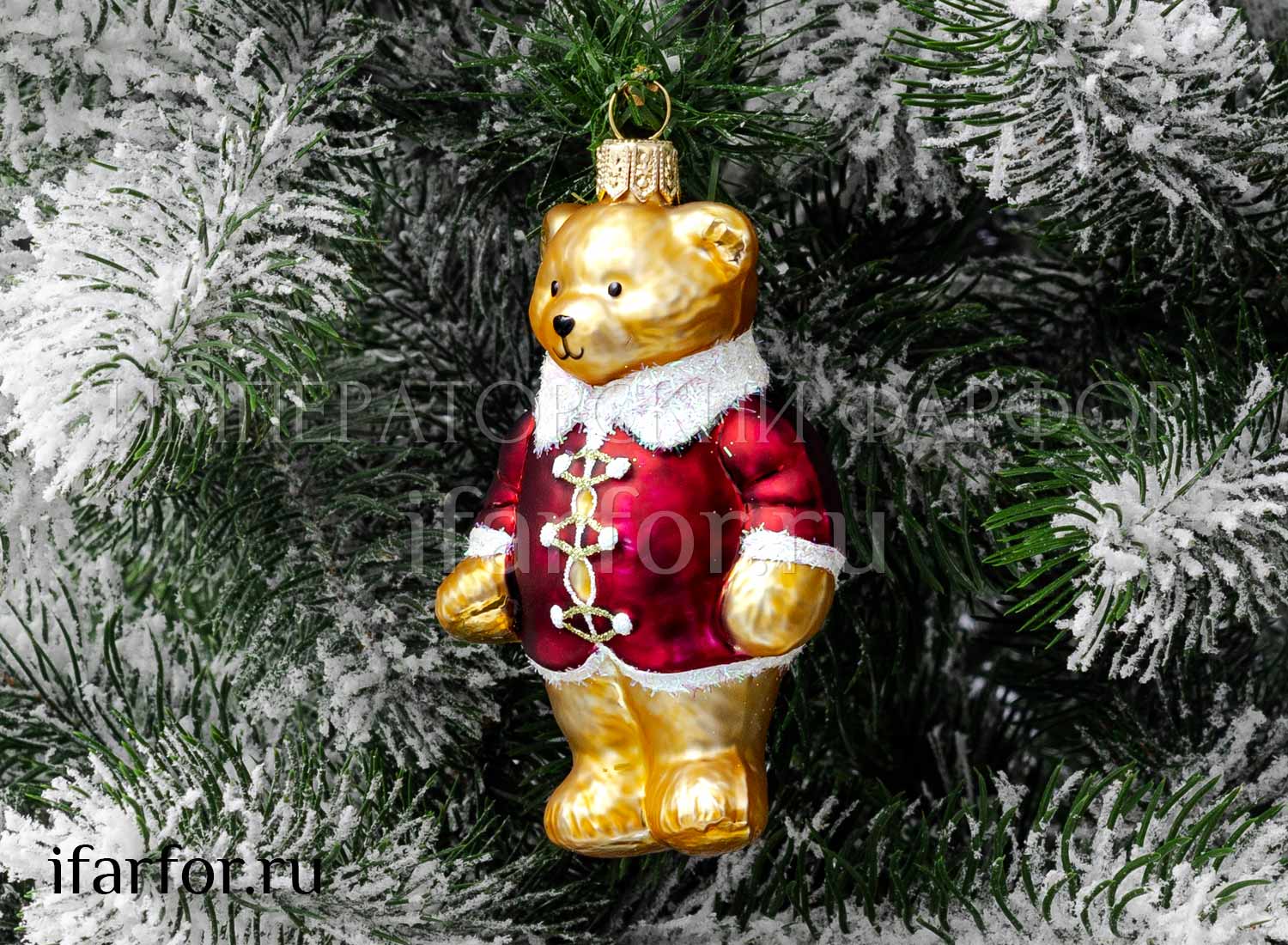 Елочная игрушка «Миша в бордовом кафтане»