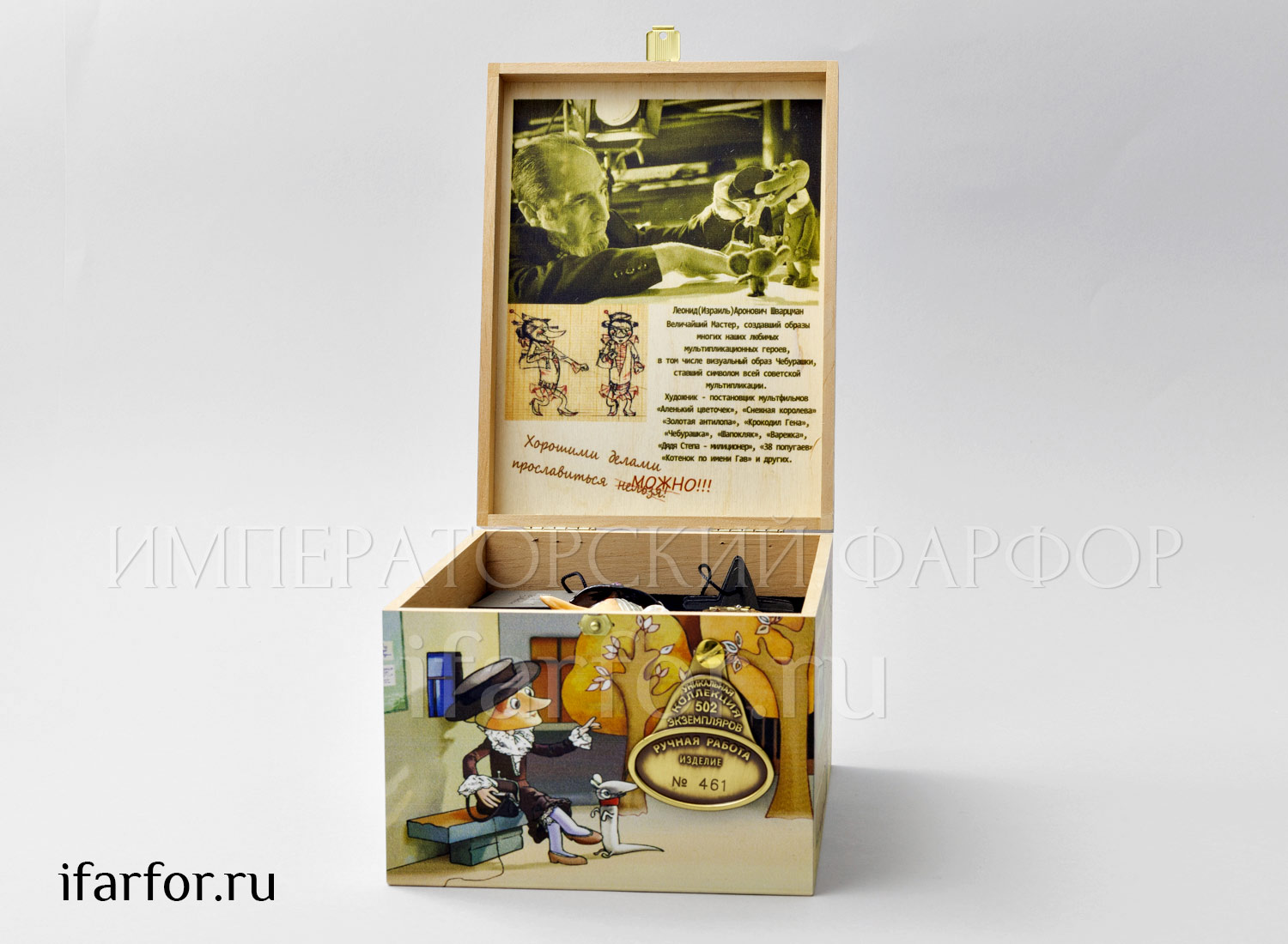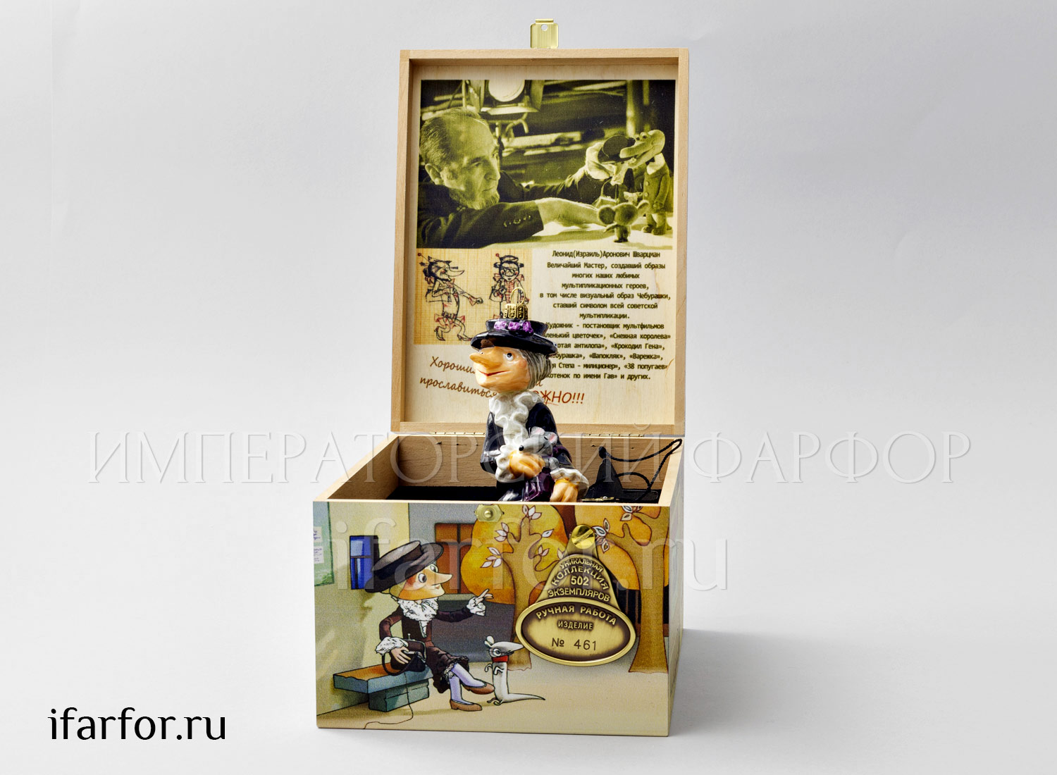 Коллекционная елочная игрушка, из стекла ручной работы. Выполнена по эскизам Леонида Шварцмана и лицензии Союзмультфильма. Выпущена ограниченным тиражом: каждой из игрушек присвоен свой, уникальный номер.
